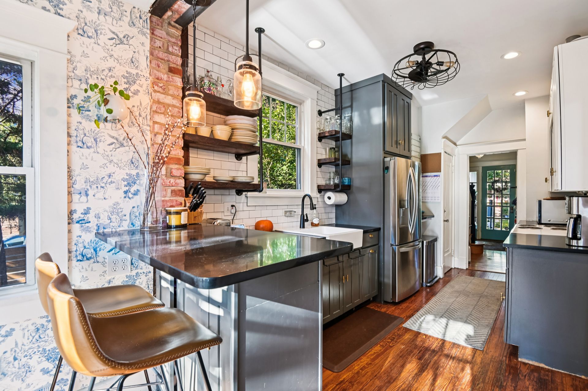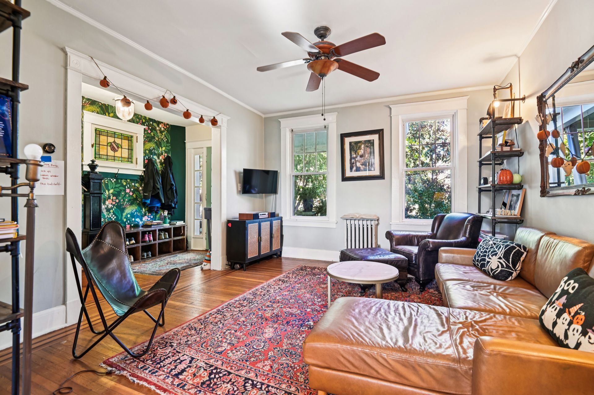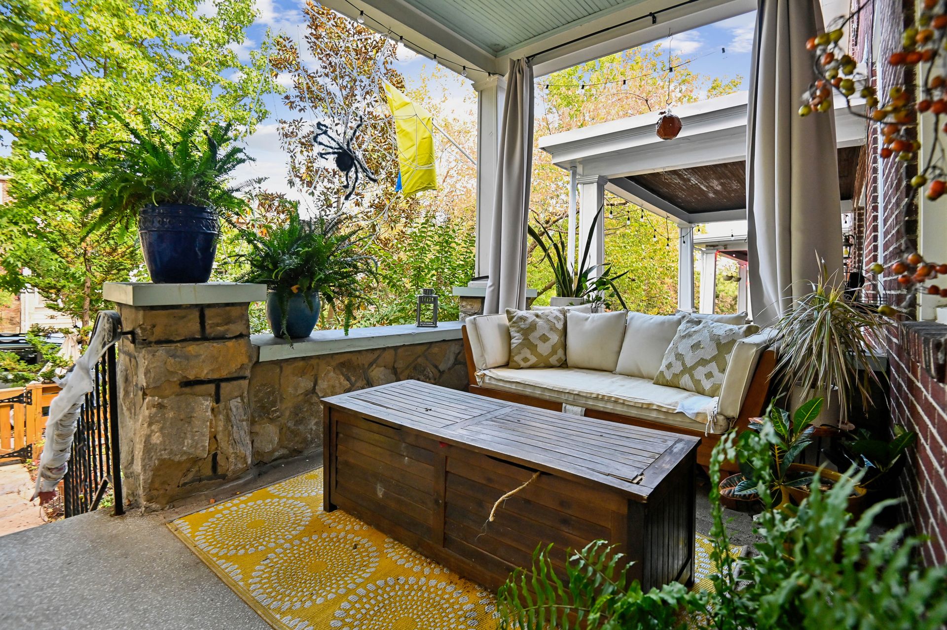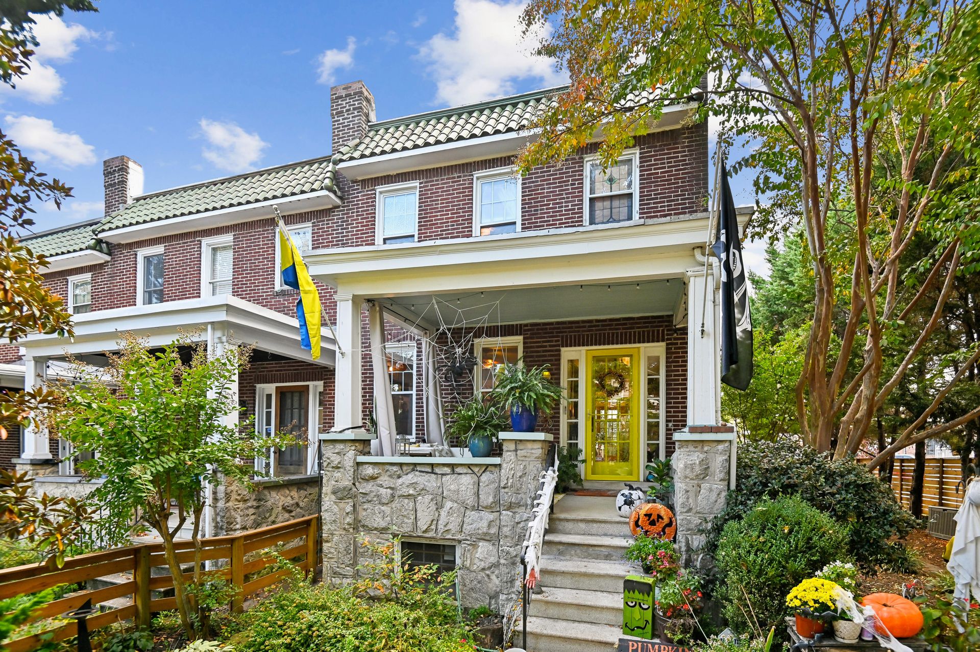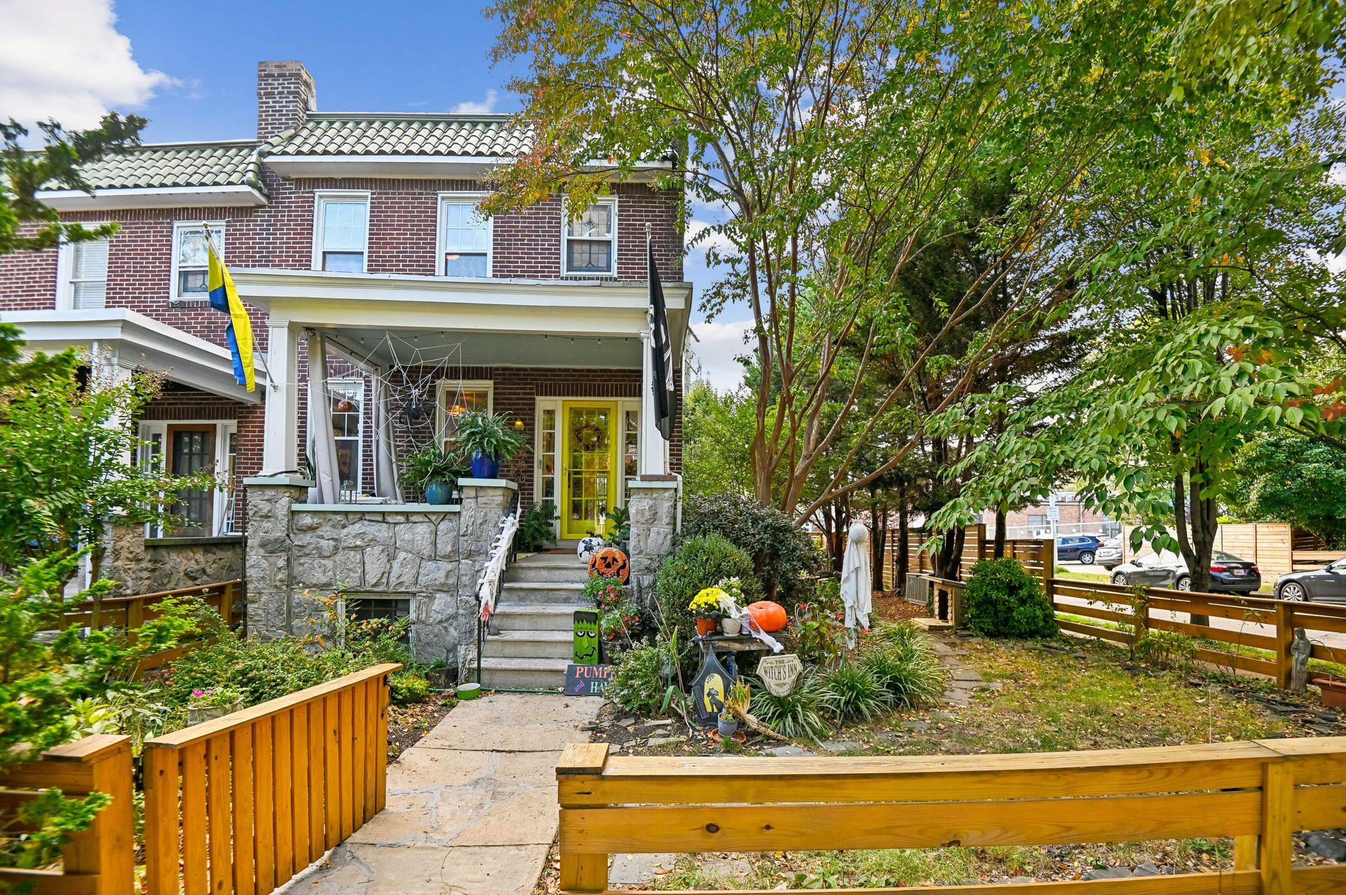 Who says you can’t have it all when it comes to urban living? Off-street parking, a huge yard with room for a future addition, modern amenities and historic charm. For the first time in nearly 20 years, this coveted end unit with double lot is available. Every inch of property has been lovingly updated with intentionality, high standards and quality of life in mind. Enjoy an unheard of amount of yard space, complete with professional landscaping and hardscaped patio, mature tree foliage and privacy screening and an off-street parking pad with a juice box. Connect with neighbors on the front porch, then head inside and find a stunning home that maintains all of the original charm of this 1925 home, alongside a modern kitchen, bathrooms and ample closet space. From the front hall, which features an original stained glass window, watch the sun bursting through french doors at the back of the home. An addition that features a custom pantry and breakfast island makes for a supersized galley kitchen. A newer dishwasher and refrigerator and custom floating shelves offer a modern contrast to the kitchen’s statement piece, a 1950s GE double oven (fully refurbished). The upstairs features two larger bedrooms with double-wide closets, as well as a hallway coat closet. A third bedroom can flex from office or nursery space, with a second-floor porch to take the unobstructed sunset.