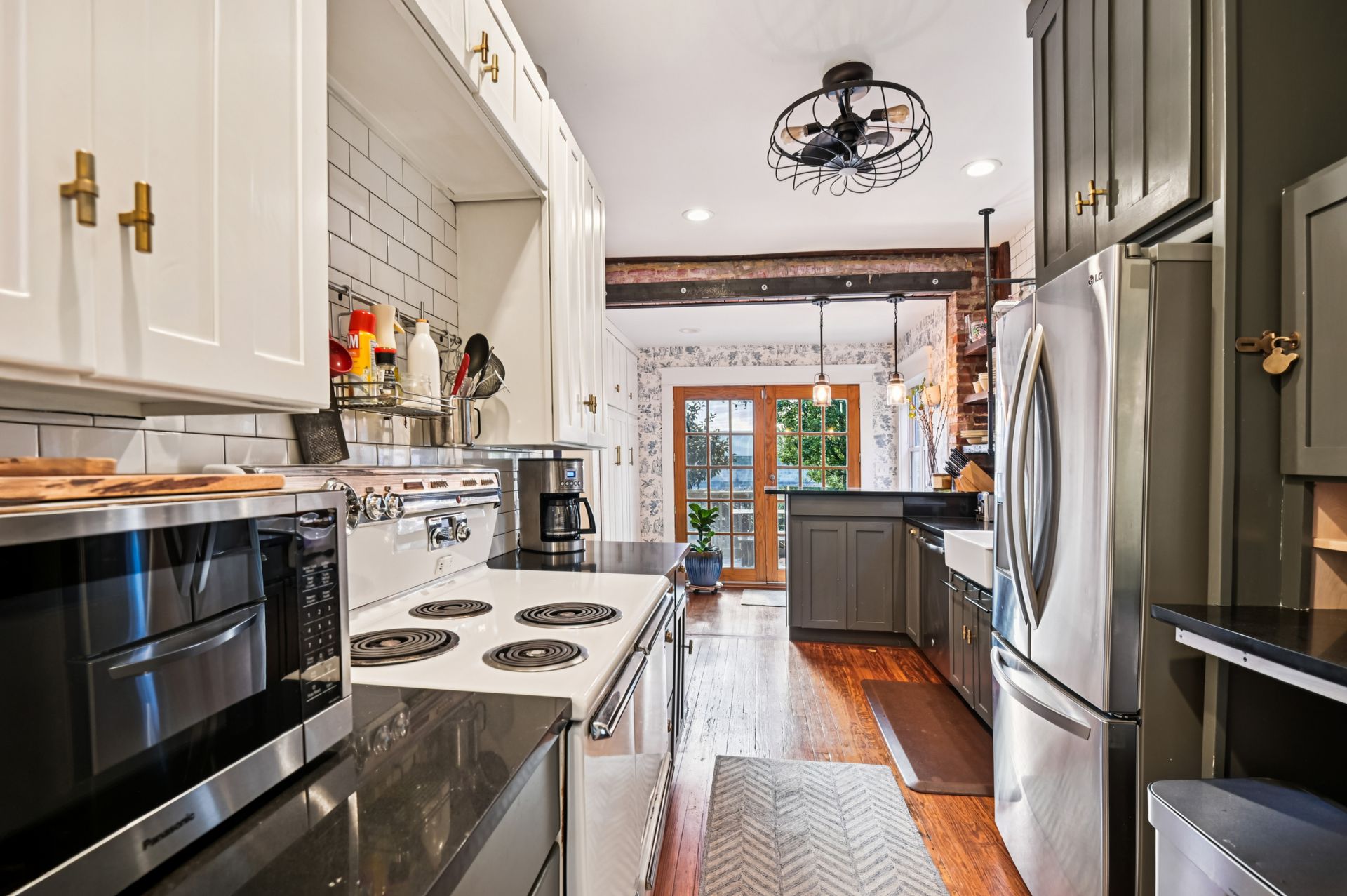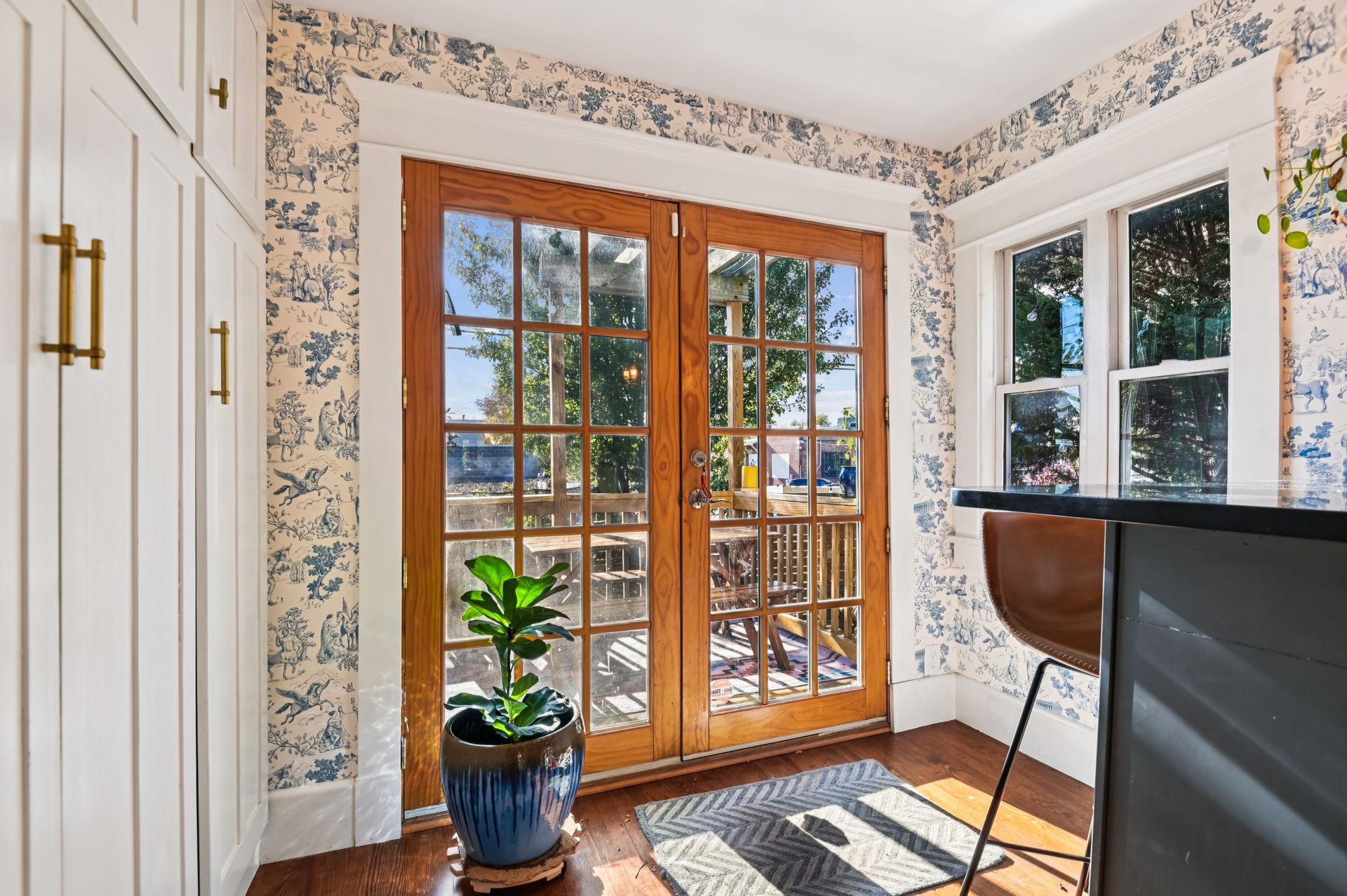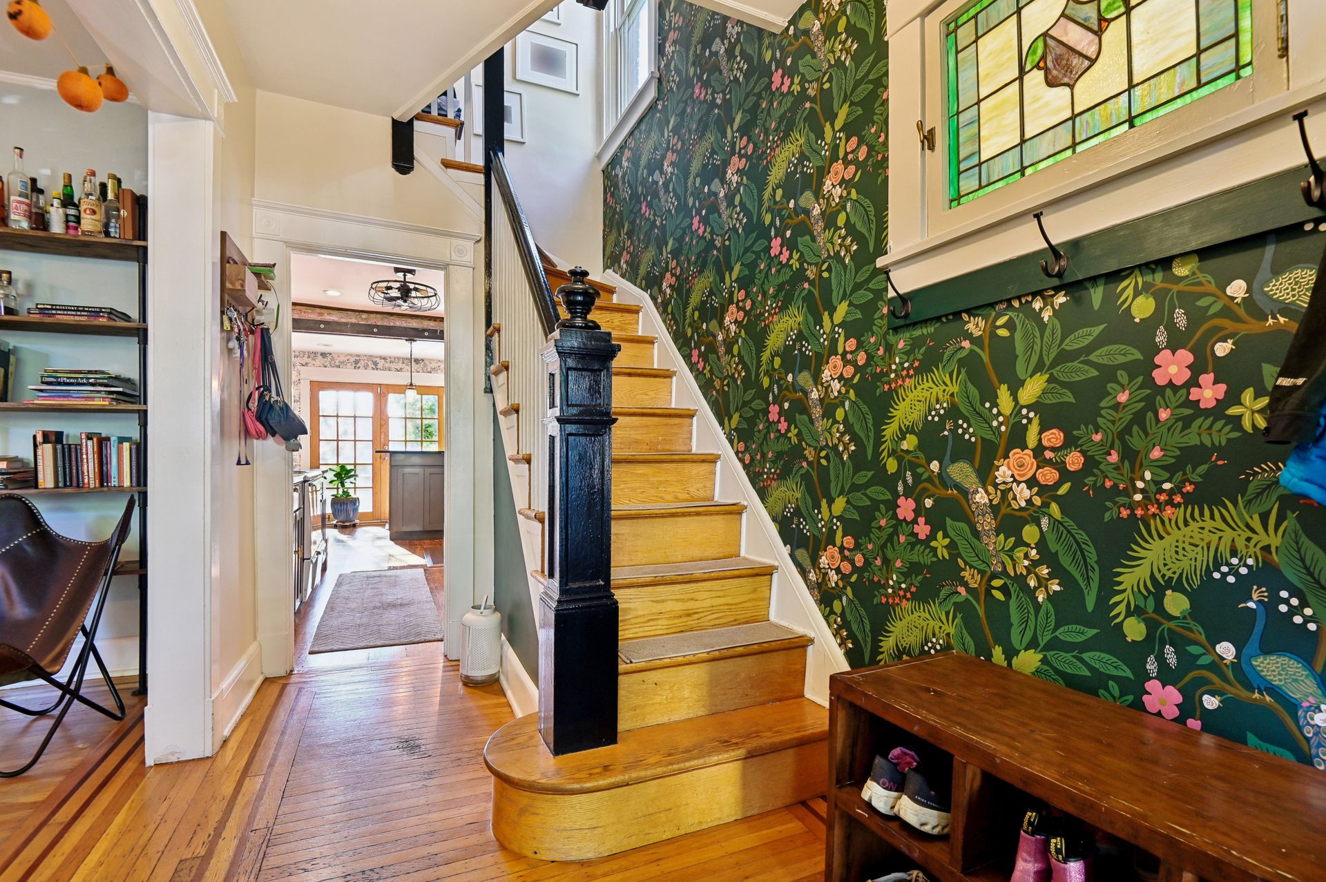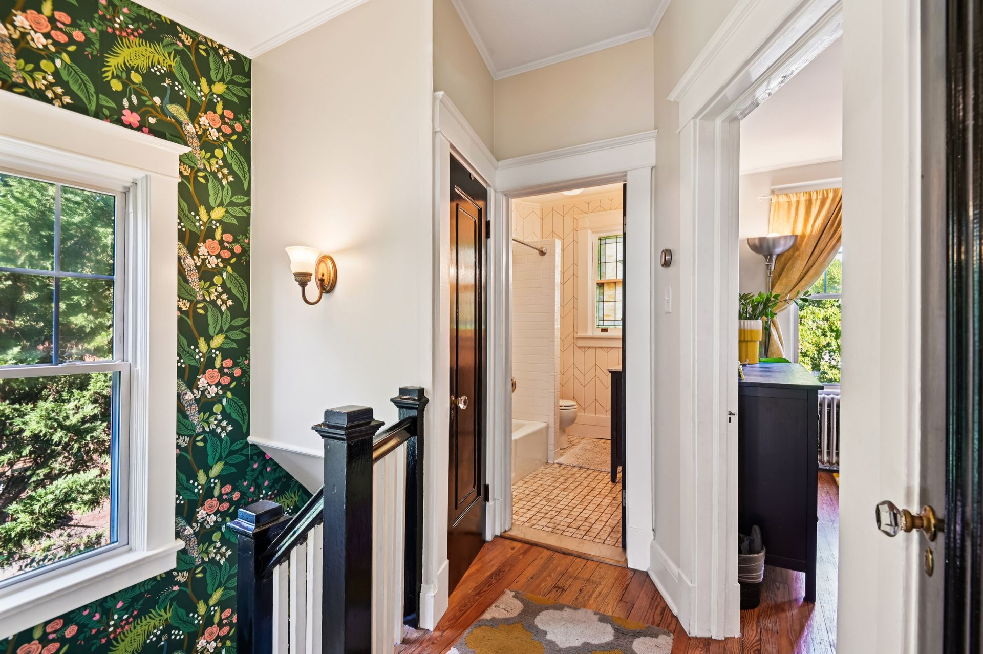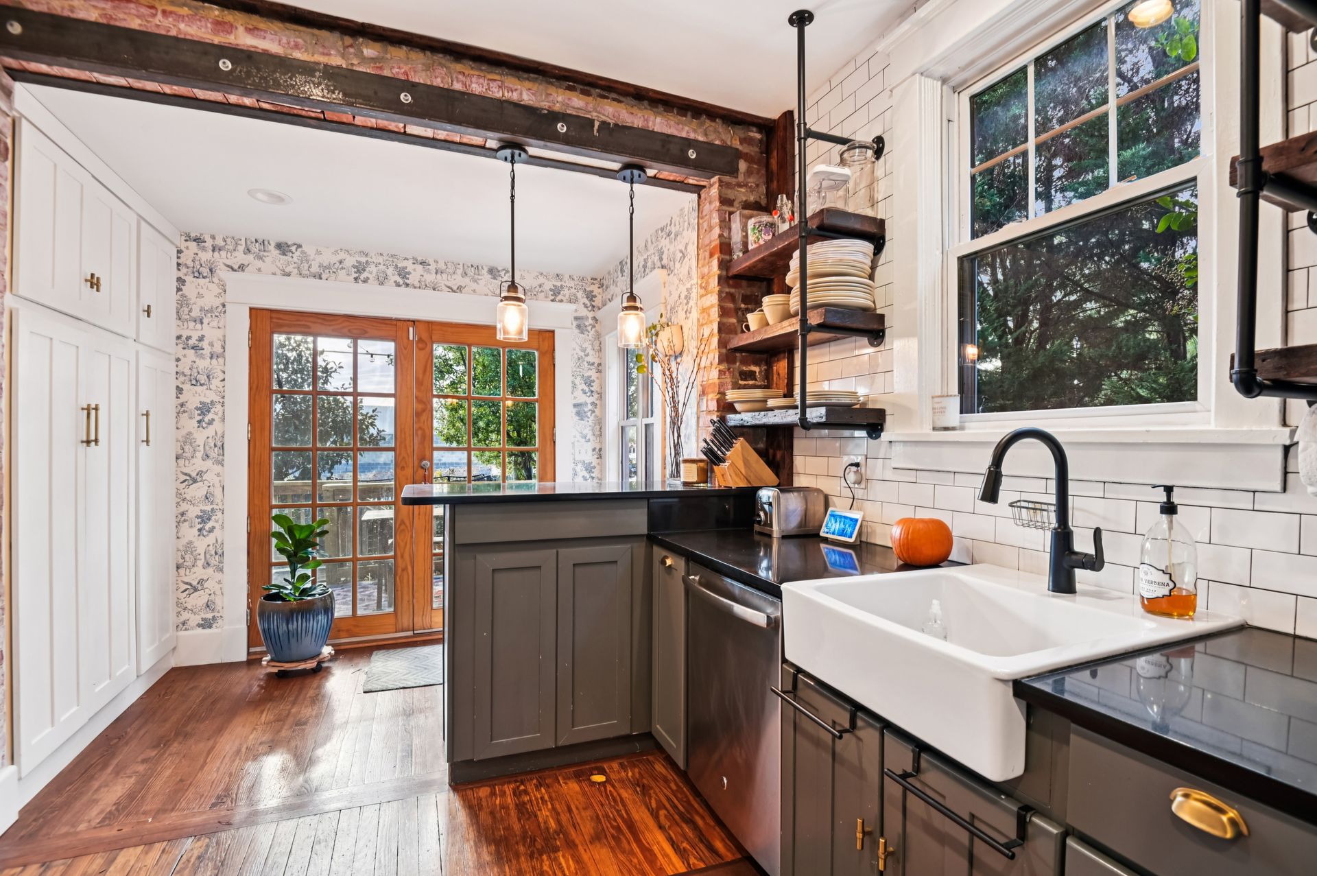 Who says you can’t have it all when it comes to urban living? Off-street parking, a huge yard with room for a future addition, modern amenities and historic charm. For the first time in nearly 20 years, this coveted end unit with double lot is available. Every inch of property has been lovingly updated with intentionality, high standards and quality of life in mind. Enjoy an unheard of amount of yard space, complete with professional landscaping and hardscaped patio, mature tree foliage and privacy screening and an off-street parking pad with a juice box. Connect with neighbors on the front porch, then head inside and find a stunning home that maintains all of the original charm of this 1925 home, alongside a modern kitchen, bathrooms and ample closet space. From the front hall, which features an original stained glass window, watch the sun bursting through french doors at the back of the home. An addition that features a custom pantry and breakfast island makes for a supersized galley kitchen. A newer dishwasher and refrigerator and custom floating shelves offer a modern contrast to the kitchen’s statement piece, a 1950s GE double oven (fully refurbished). The upstairs features two larger bedrooms with double-wide closets, as well as a hallway coat closet. A third bedroom can flex from office or nursery space, with a second-floor porch to take the unobstructed sunset.