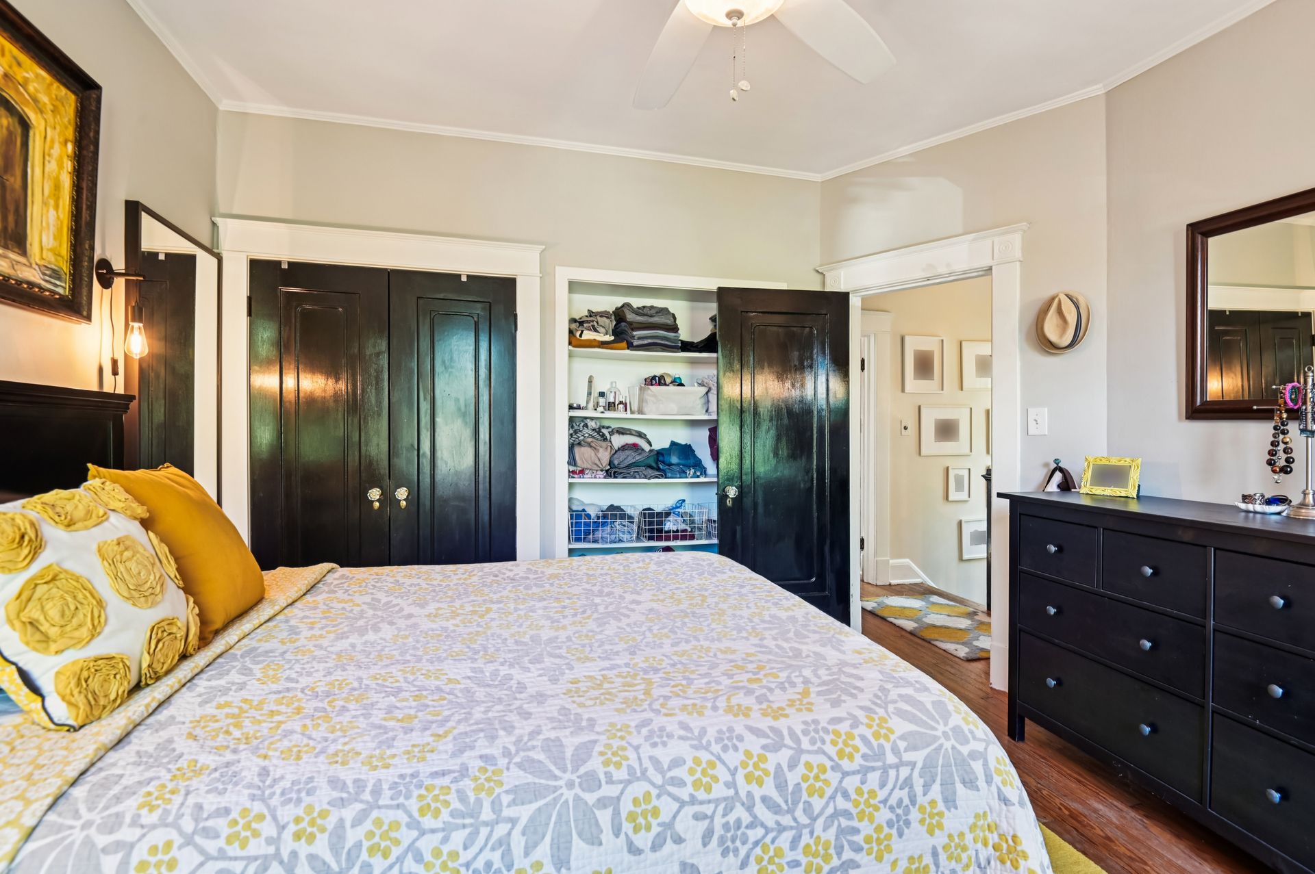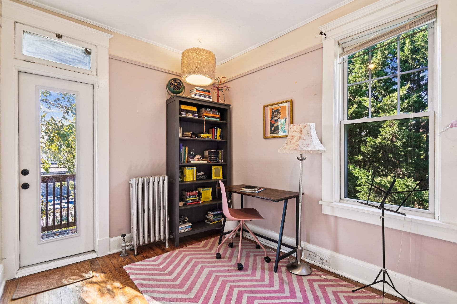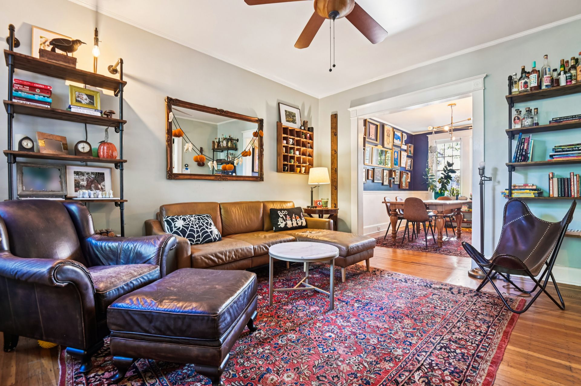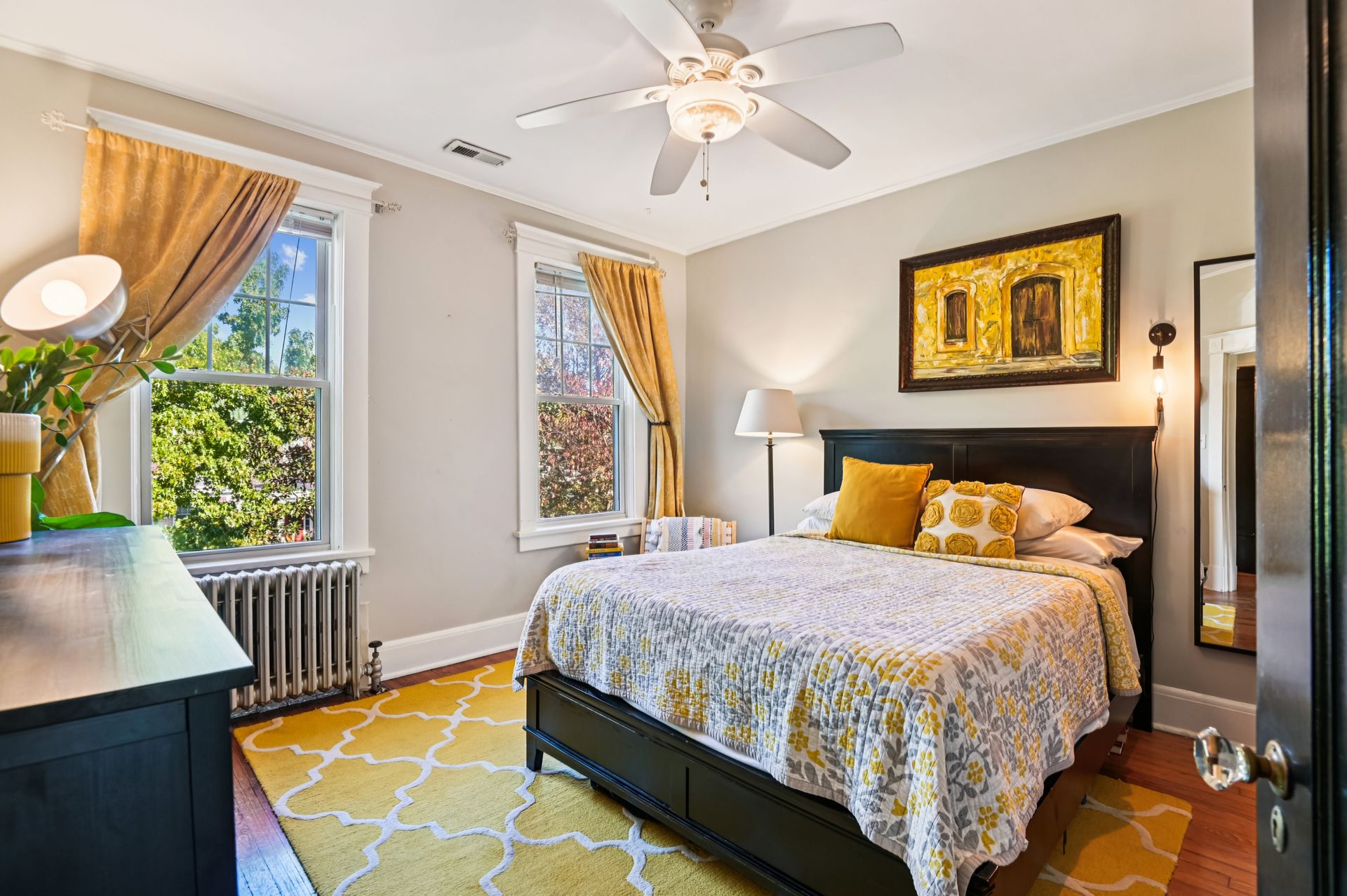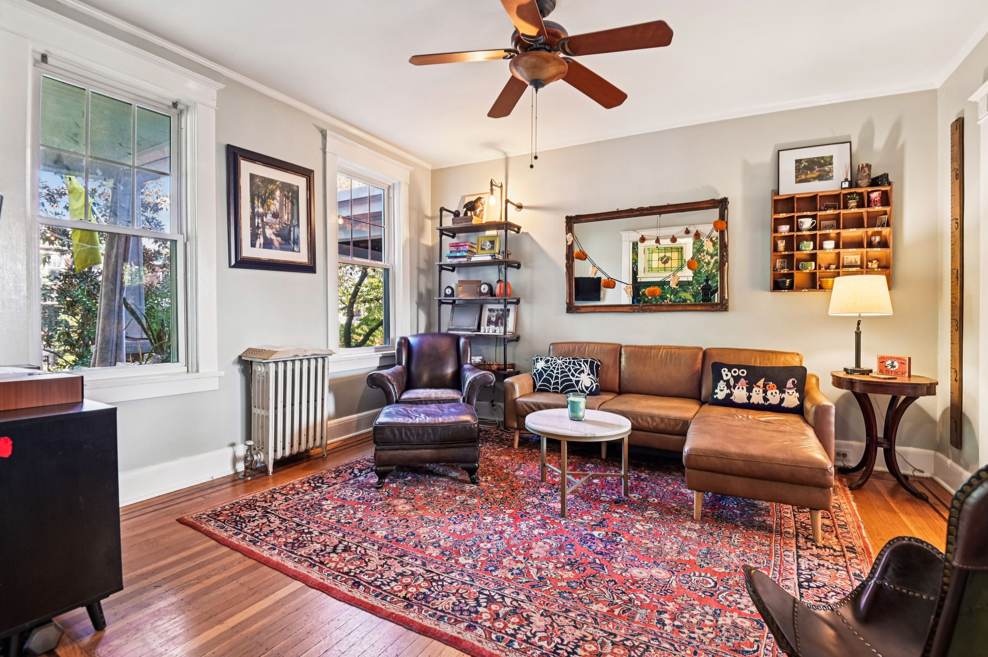 Who says you can’t have it all when it comes to urban living? Off-street parking, a huge yard with room for a future addition, modern amenities and historic charm. For the first time in nearly 20 years, this coveted end unit with double lot is available. Every inch of property has been lovingly updated with intentionality, high standards and quality of life in mind. Enjoy an unheard of amount of yard space, complete with professional landscaping and hardscaped patio, mature tree foliage and privacy screening and an off-street parking pad with a juice box. Connect with neighbors on the front porch, then head inside and find a stunning home that maintains all of the original charm of this 1925 home, alongside a modern kitchen, bathrooms and ample closet space. From the front hall, which features an original stained glass window, watch the sun bursting through french doors at the back of the home. An addition that features a custom pantry and breakfast island makes for a supersized galley kitchen. A newer dishwasher and refrigerator and custom floating shelves offer a modern contrast to the kitchen’s statement piece, a 1950s GE double oven (fully refurbished). The upstairs features two larger bedrooms with double-wide closets, as well as a hallway coat closet. A third bedroom can flex from office or nursery space, with a second-floor porch to take the unobstructed sunset.