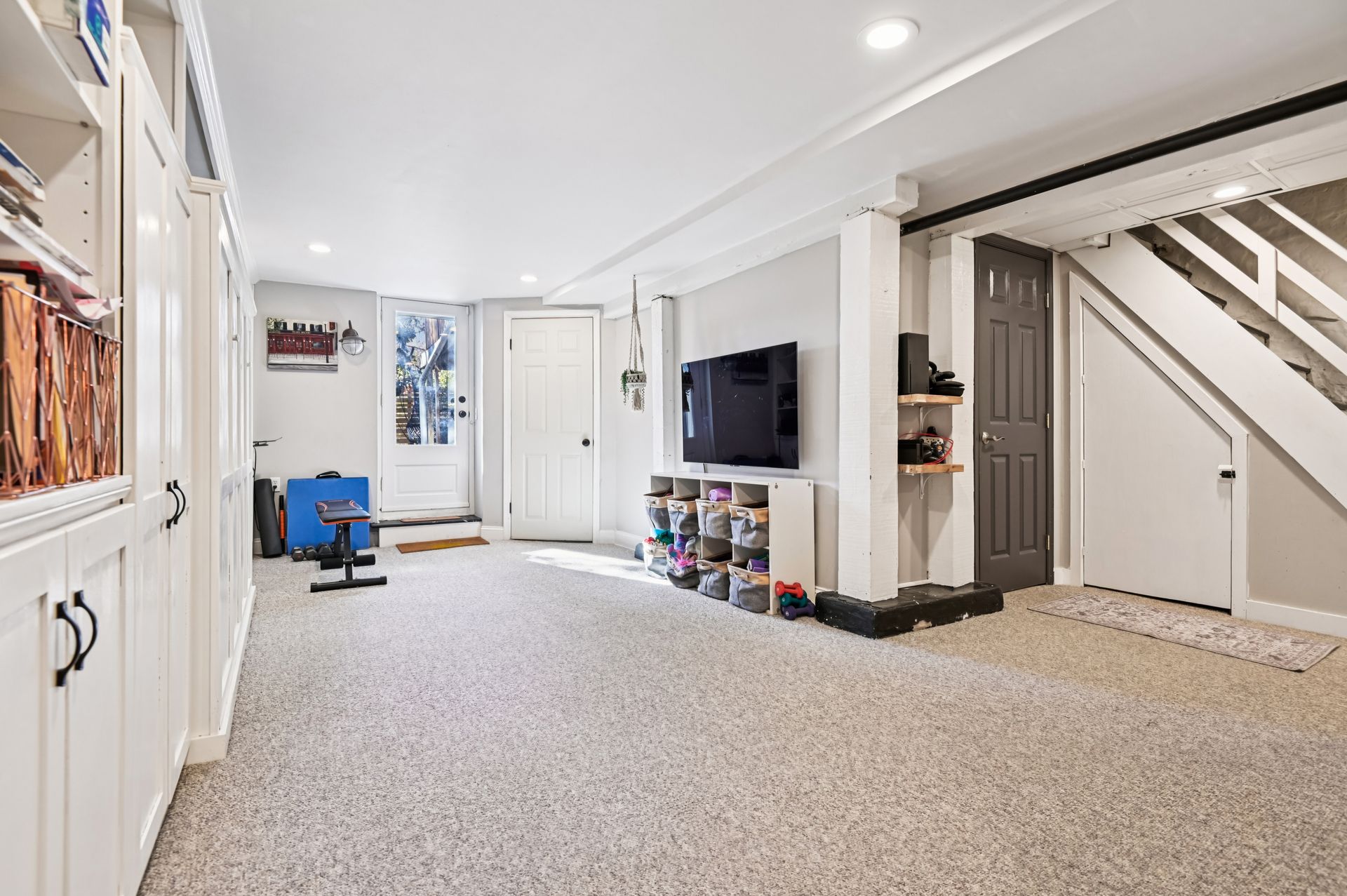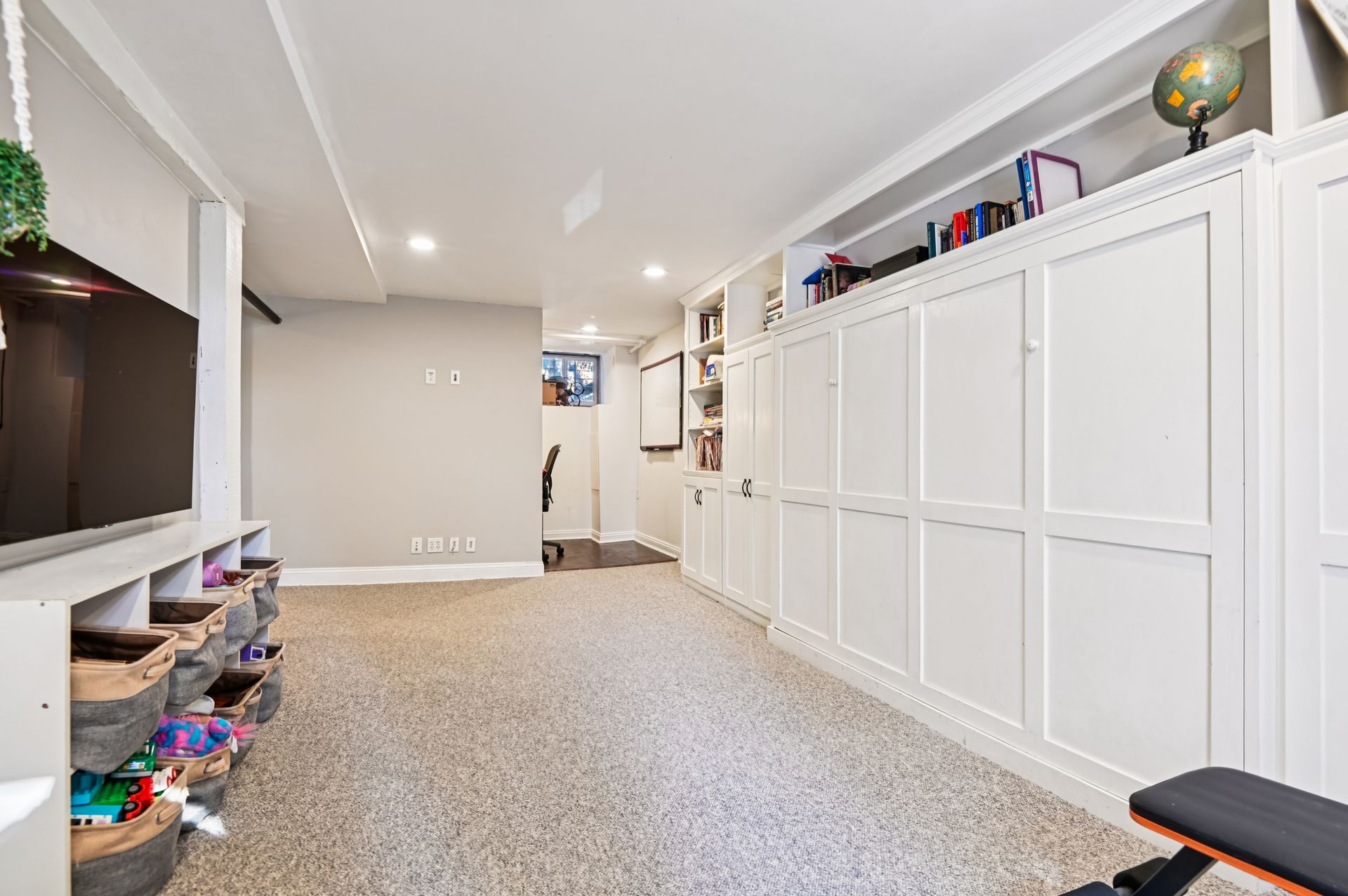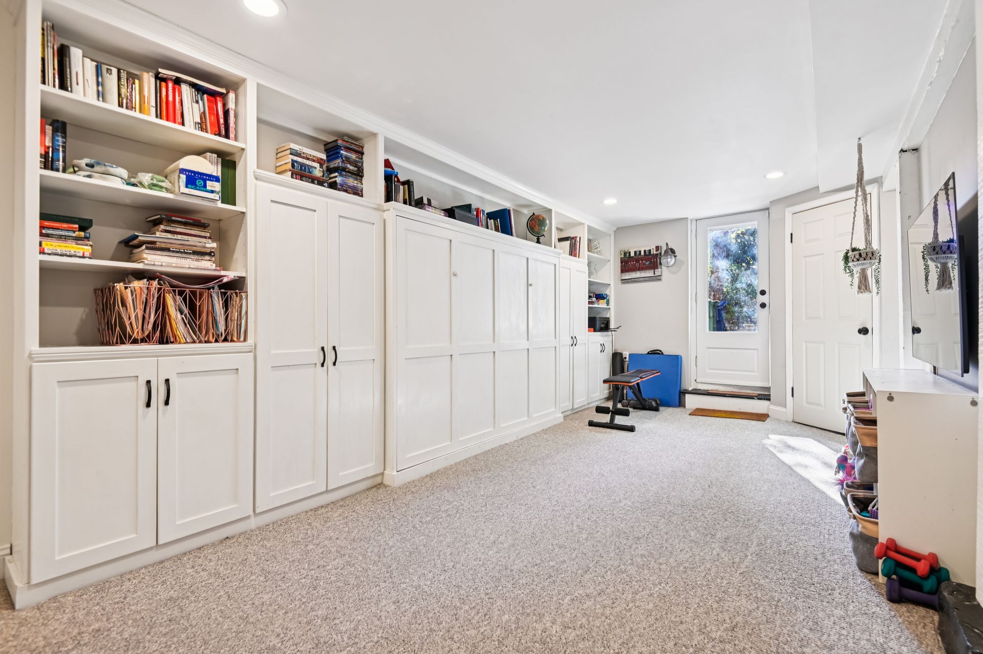 The lower level has been fully renovated and features an additional office, storage space, laundry room and a large common area that doubles as an additional living room by day and guest bedroom by night, with custom-built-in Murphy bed. Lower level also boasts a newer full basement bathroom and walkout entrance to the rear yard.