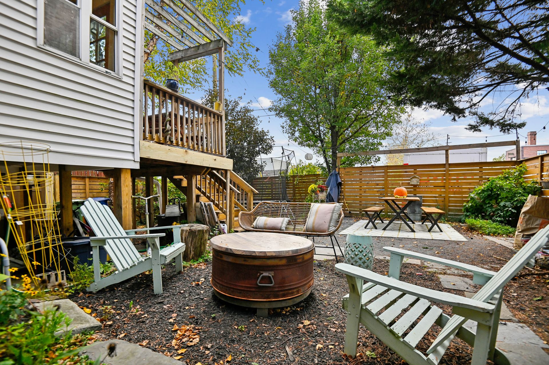 The incomparable asset of this property lies in the deep backyard and side yard. Adult trees offer an oasis in an otherwise urban setting, along with a firepit area and patio.