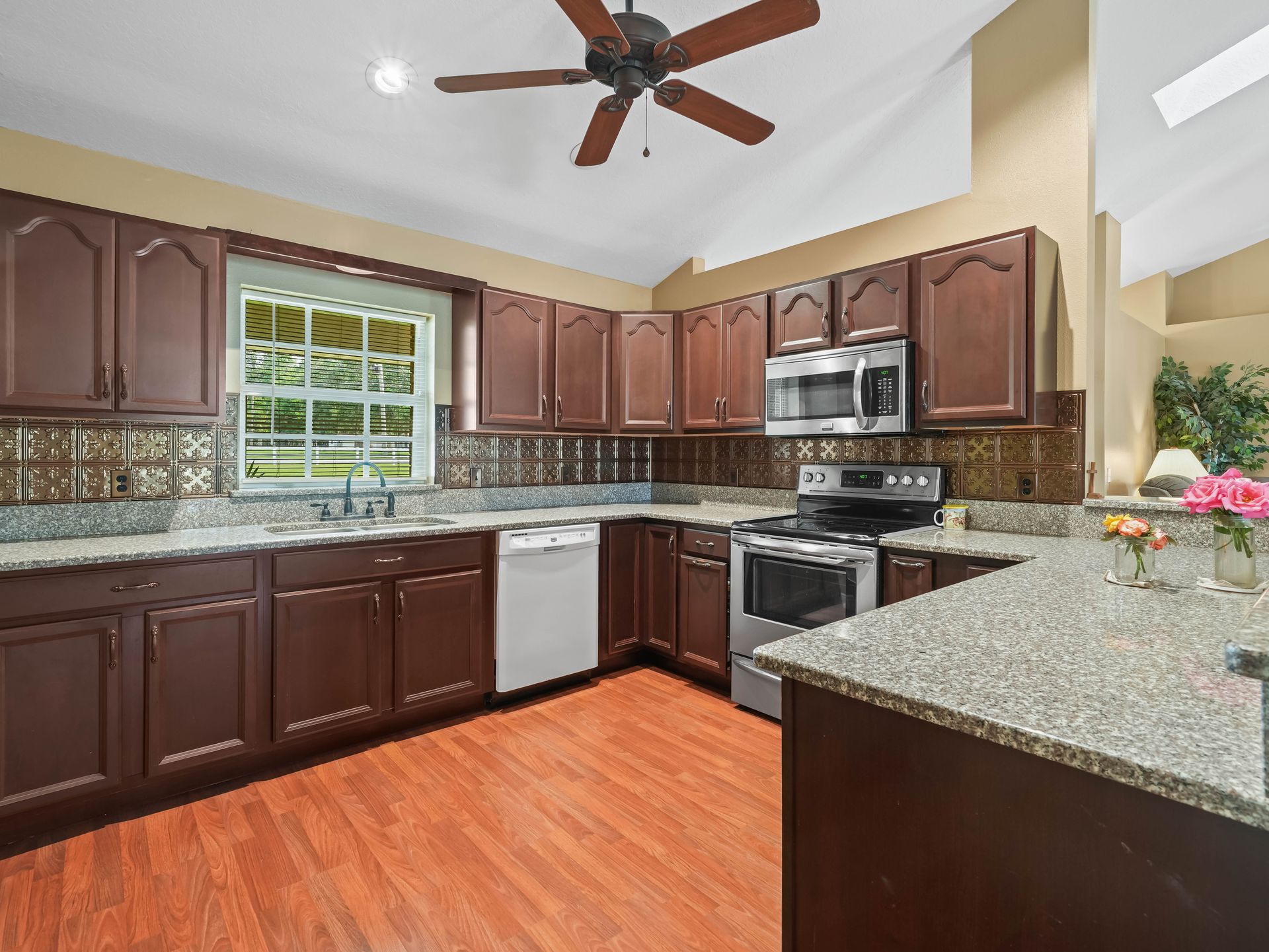 Step inside to a spacious, open layout featuring a well-equipped kitchen with all appliances included and a walk-in pantry for ample storage. The laundry room is generously sized, with room for a freezer and additional shelving.