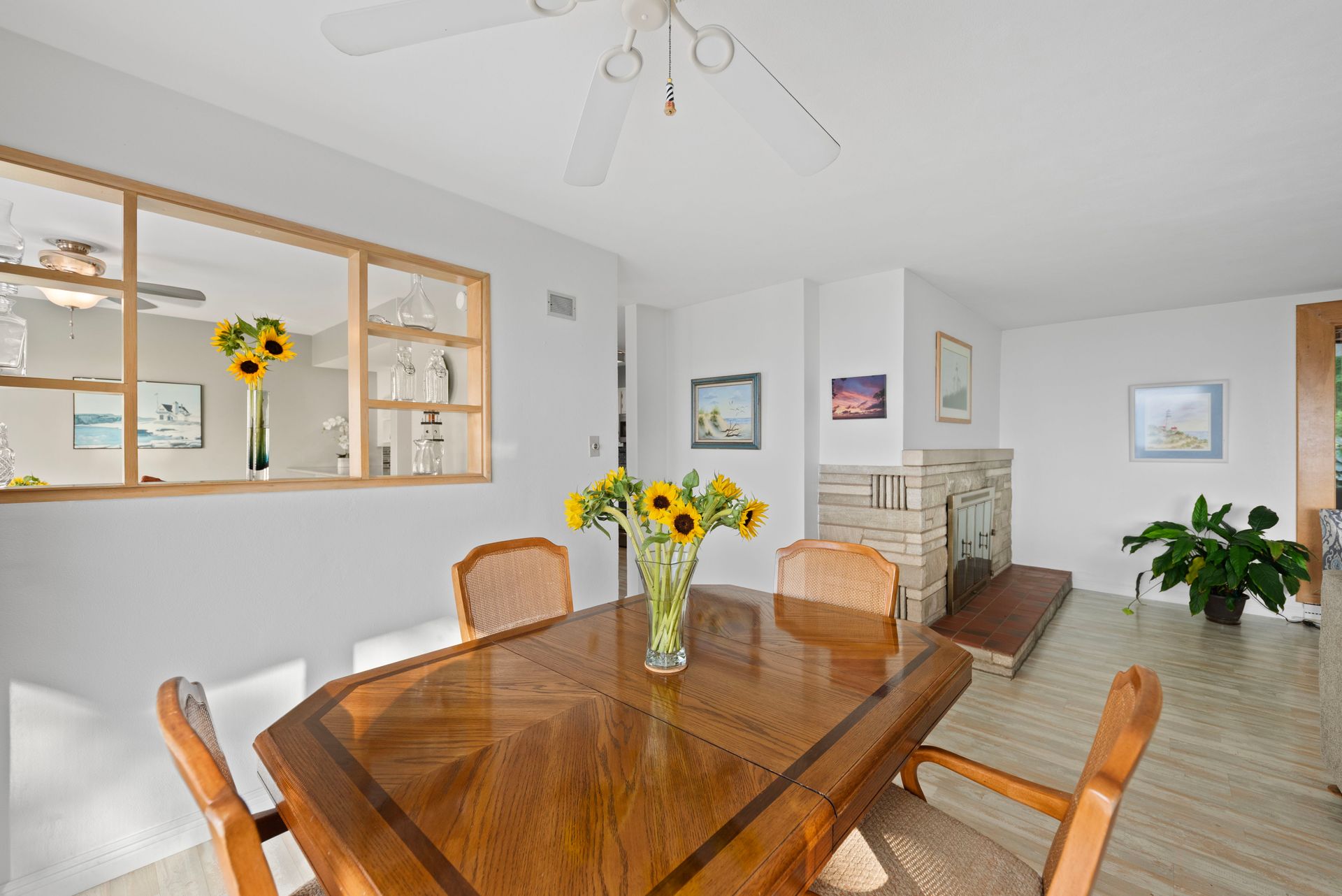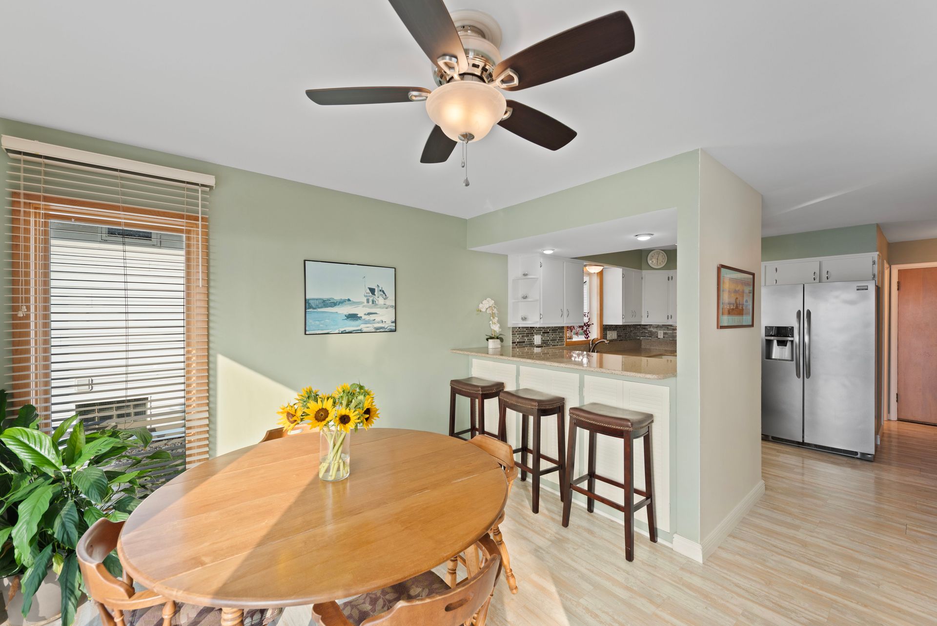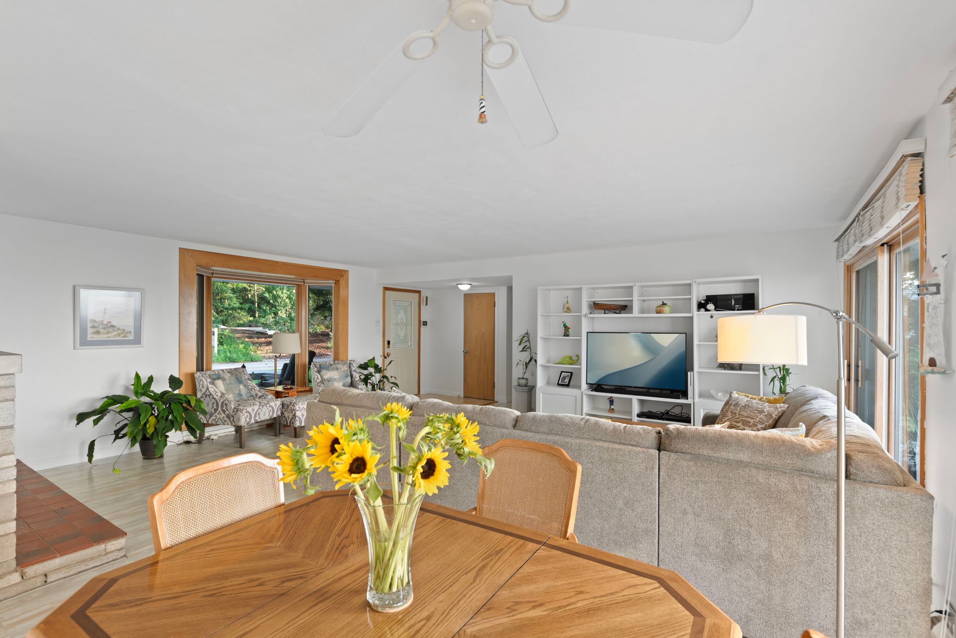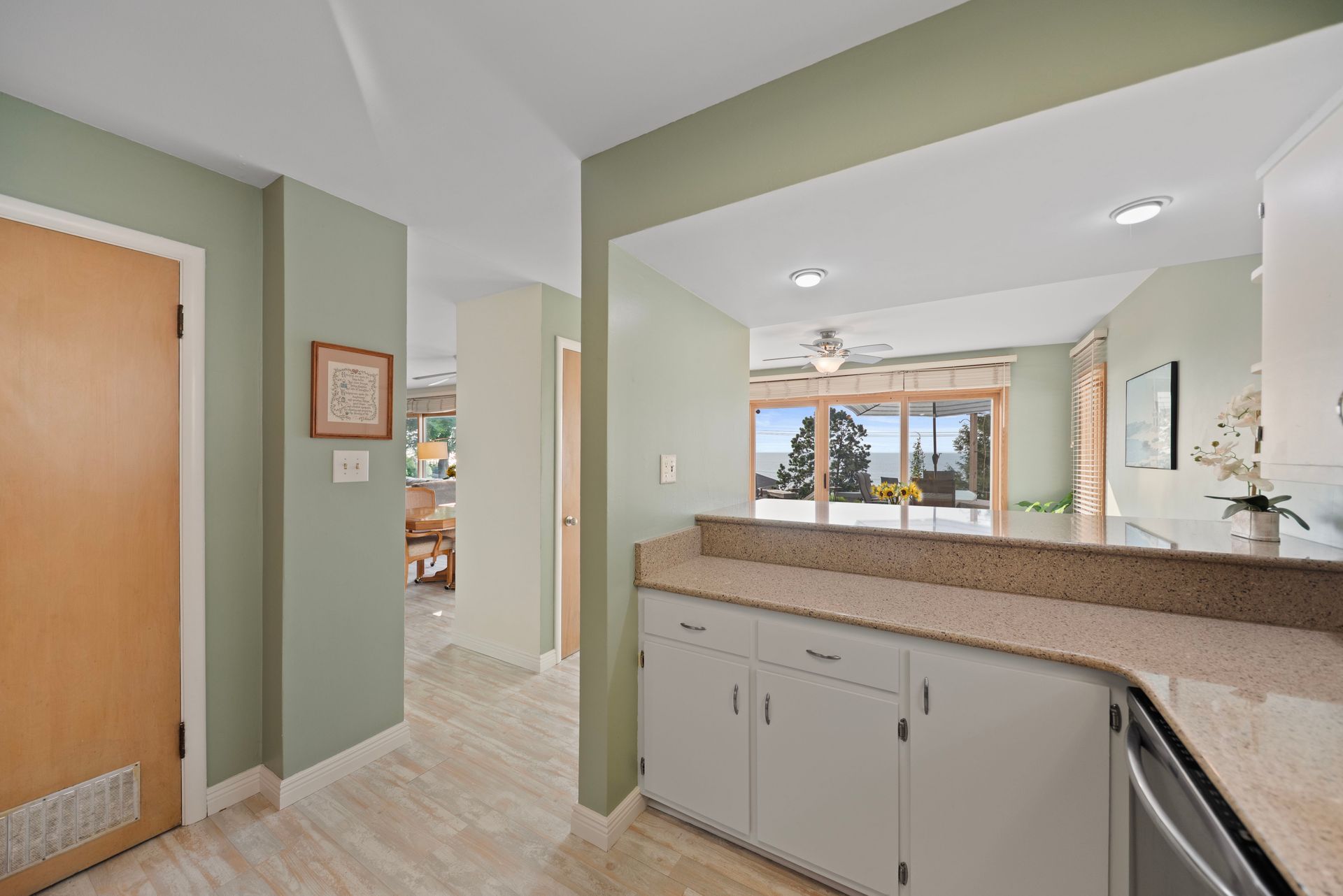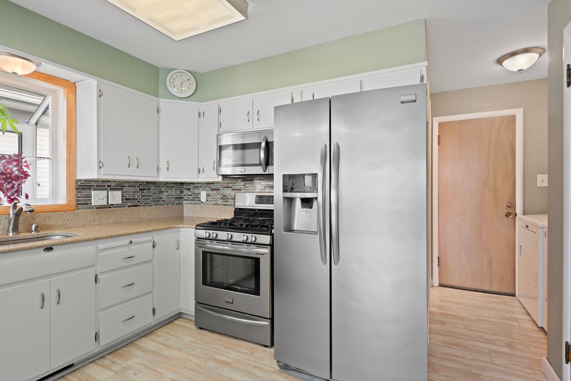 Inside, you'll find easy maintenance laminate floors, a cozy fireplace, and a spacious kitchen with stainless steel appliances and ample cabinetry. The open floor plan enhances natural light and flow throughout. Set on a beautifully landscaped lot in a sought-after Lake Michigan Community, this home blends indoor comfort with exceptional outdoor living.