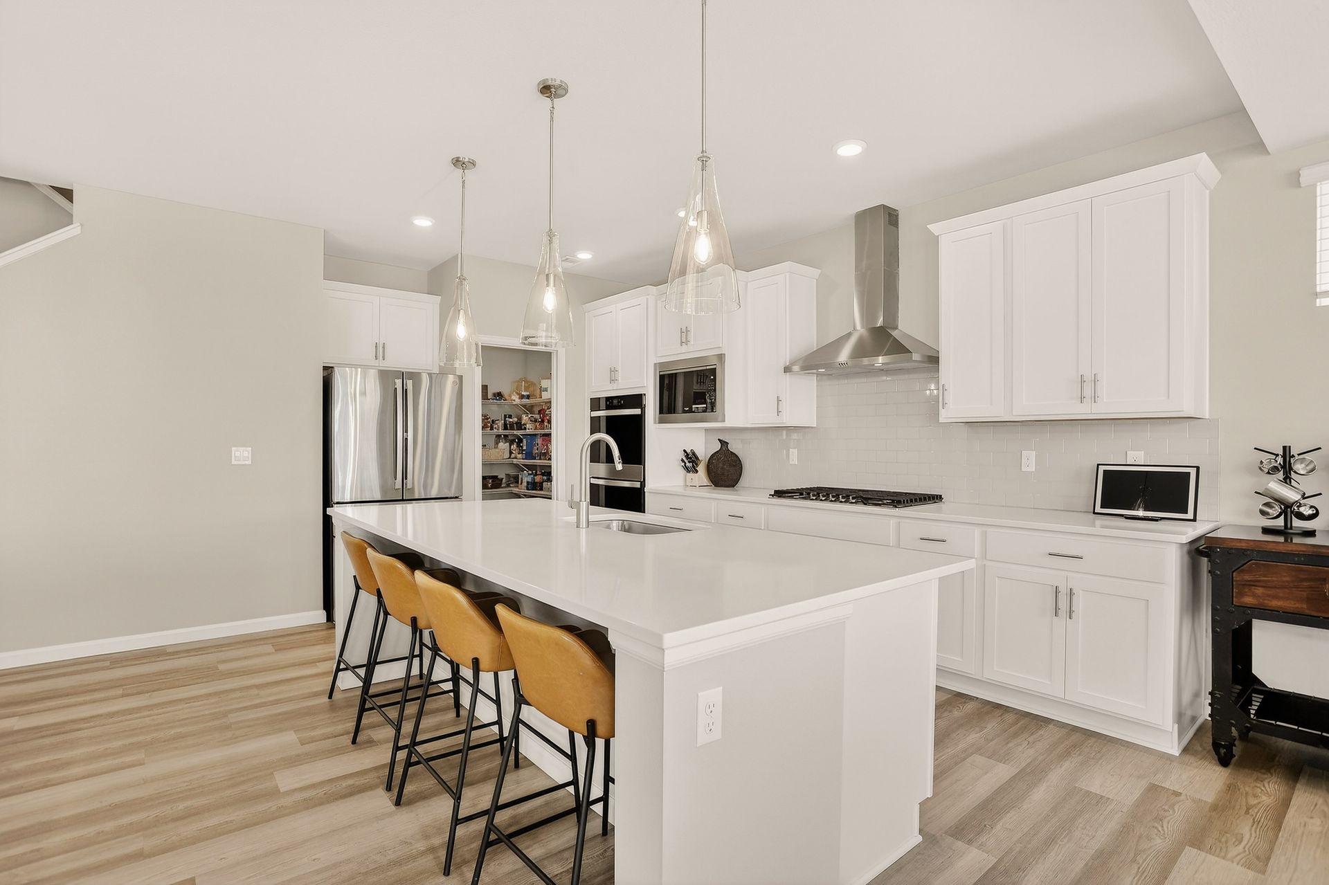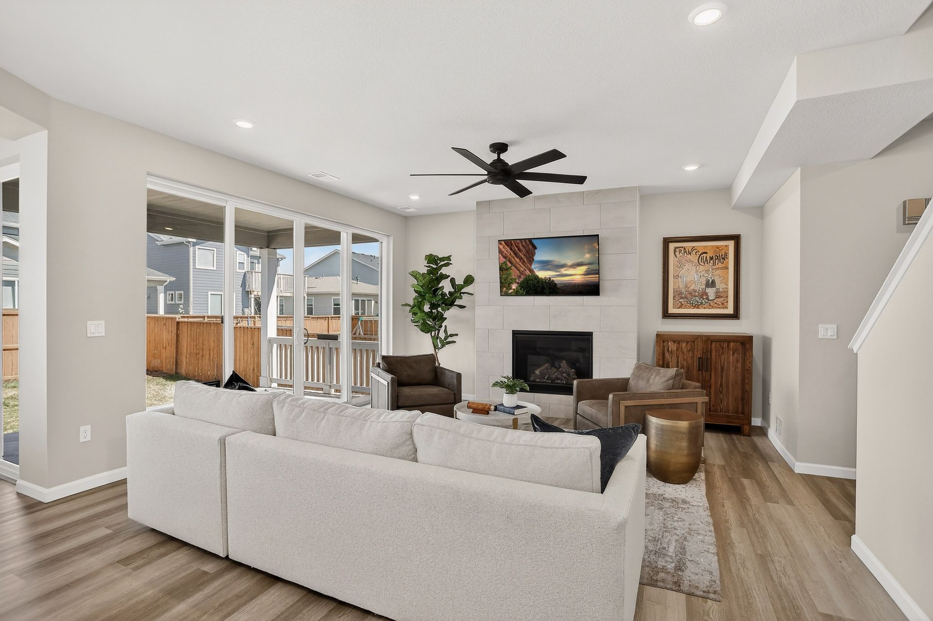 Welcome to 2960 S Flat Circle, a thoughtfully designed home that blends comfort, style, and functionality in one of Longmont’s most desirable communities. The kitchen truly serves as the heart of the home, featuring a large center island, stainless steel appliances, and an upgraded chimney hood that creates a clean, modern aesthetic ideal for both daily living and entertaining. Beautiful flooring throughout the main level enhances the open, inviting feel of the space, while the fireplace with designer tile surround adds warmth and character to the main living area.