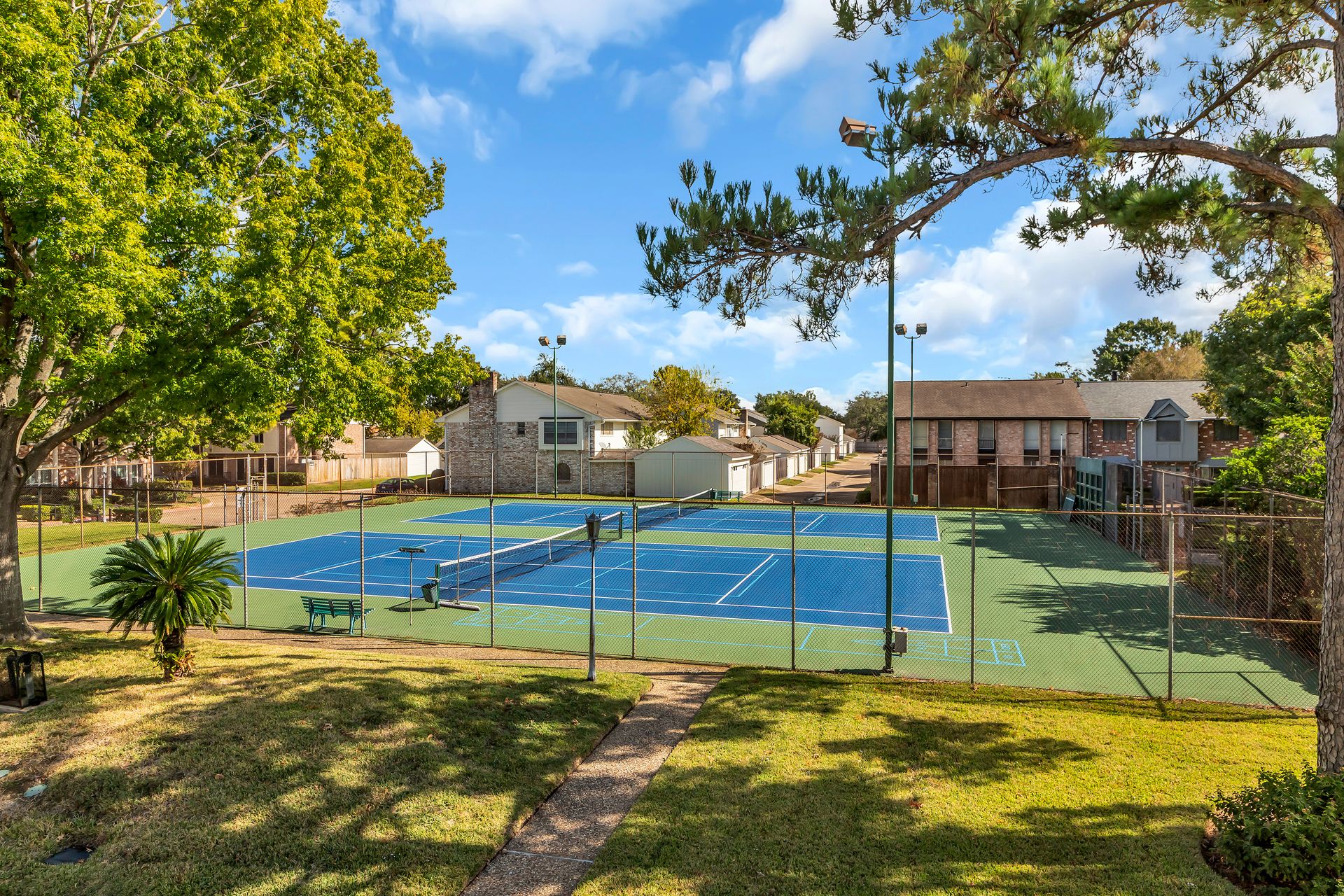 The attached/detached garage offers convenient access via the covered patio, making entry and exit seamless in any weather with additional wood decking, providing an ideal space to relax or host a gathering. Residents of Spring Shadows Townhomes enjoy amenities managed by the Homeowners Association (HOA). These include a swimming pool, grounds maintenance, courtesy patrol, a clubhouse, garbage service, sewer and water utilities, and lawn care. These services contribute to a comfortable and well-maintained living environment.