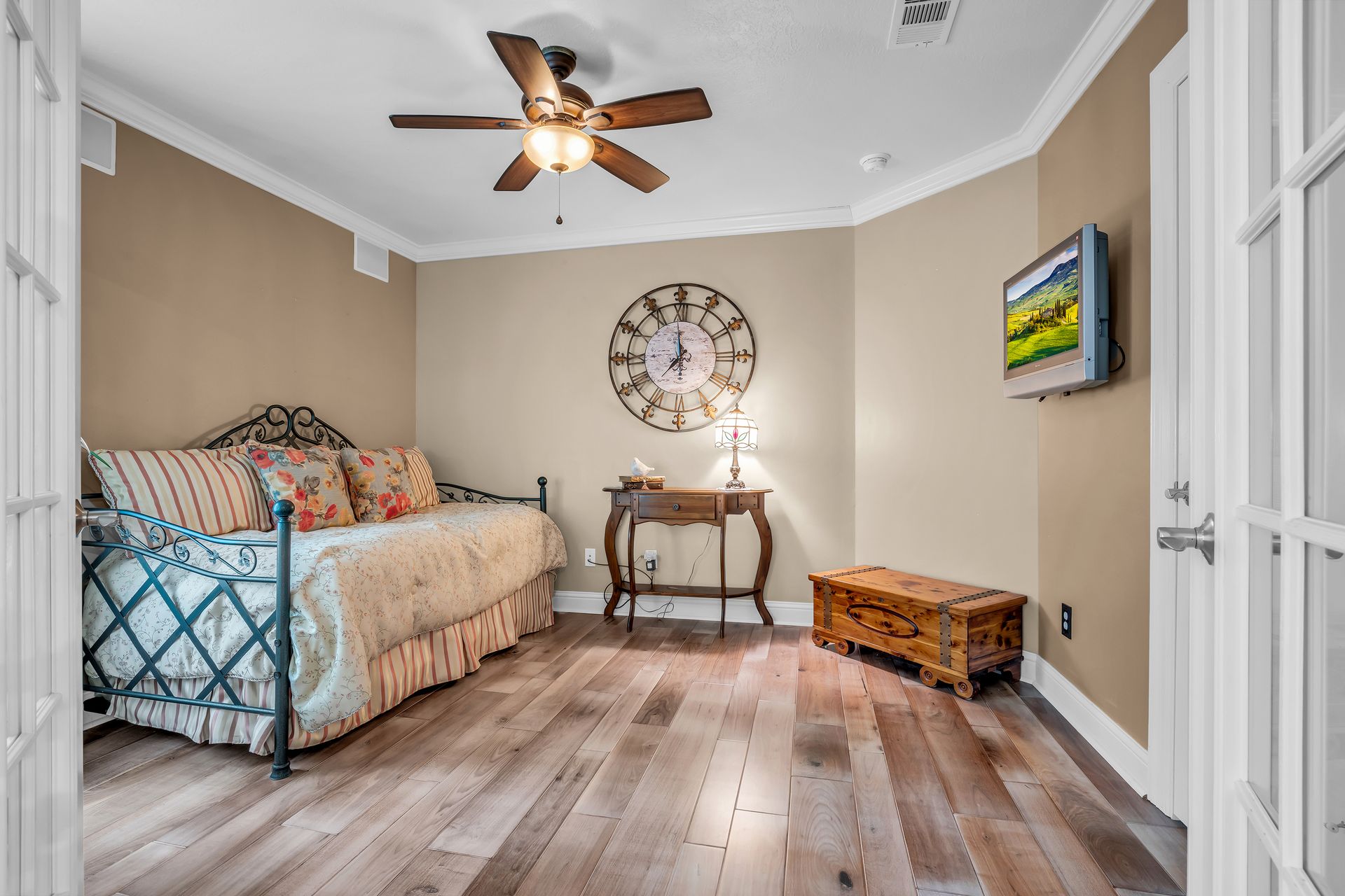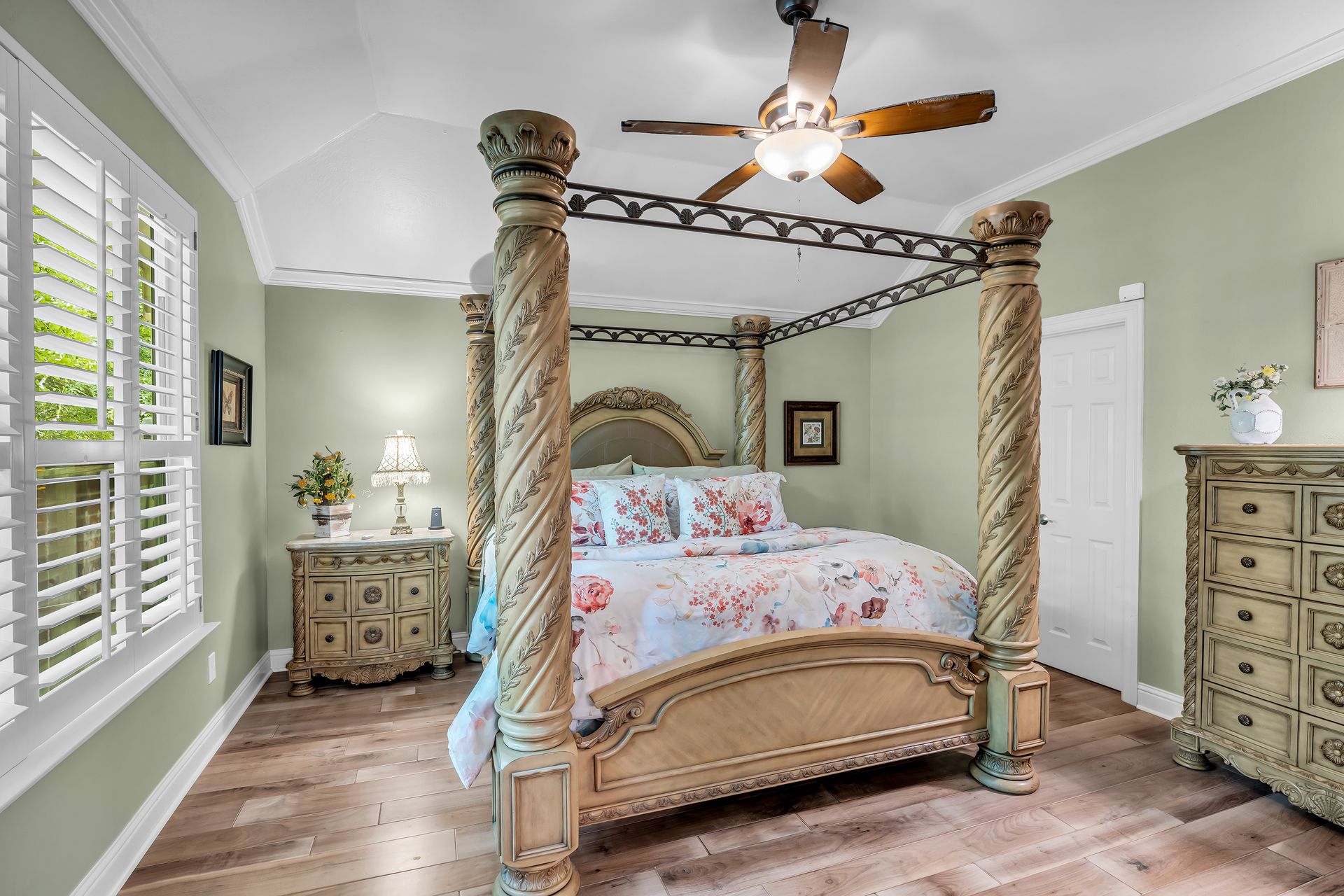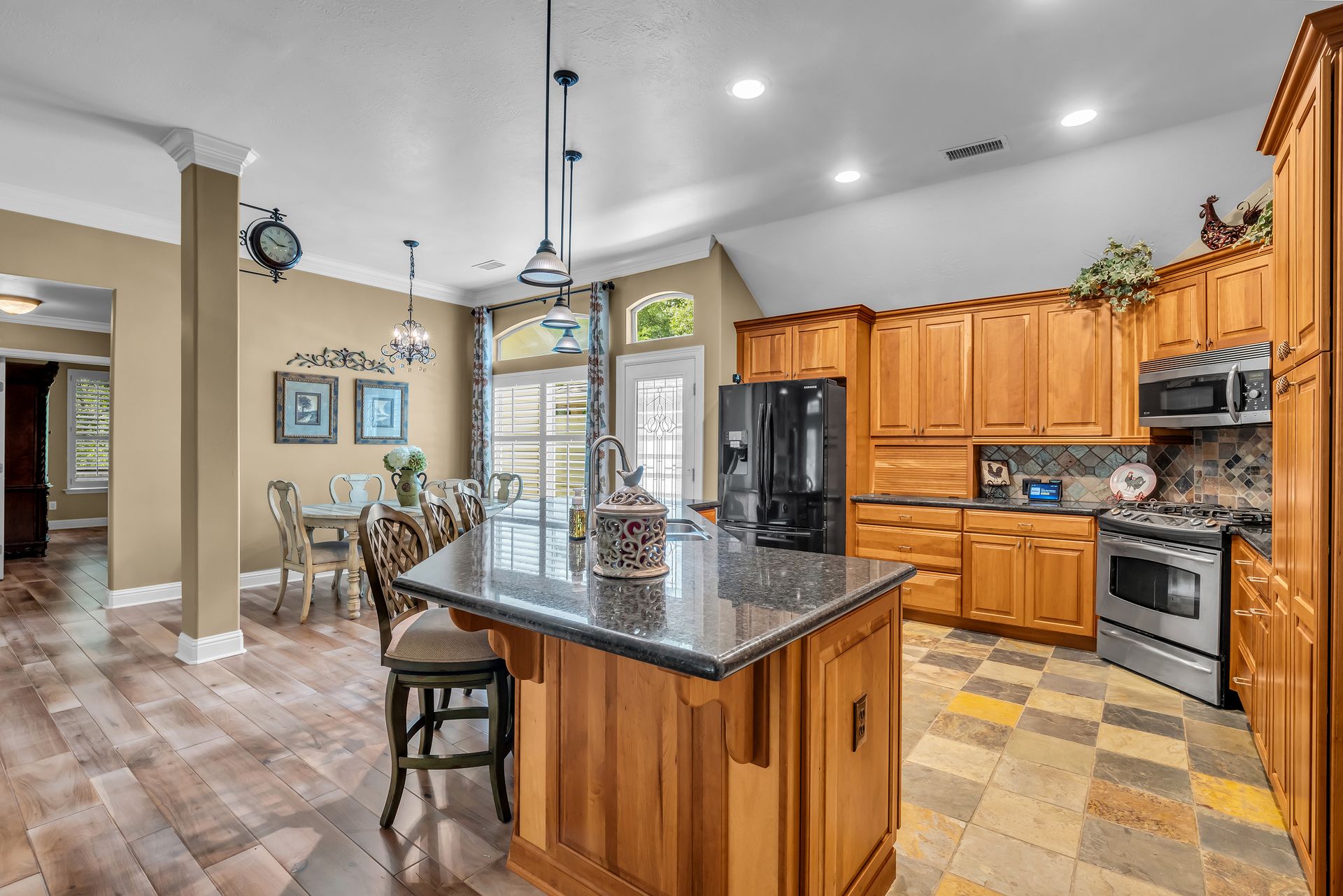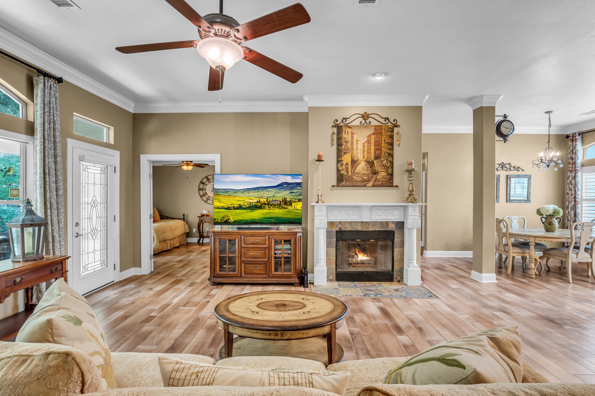 Exceptional former model patio home beautifully positioned with reserves along the side and back, creating a rare, wooded backdrop and remarkable privacy. Lush landscaping, winding stone pathways, and extensive upgrades deliver standout curb appeal and a true garden retreat. Custom wood fence panels open to capture peaceful reserve and greenbelt views, ideal for birdwatching and outdoor enjoyment. Inside, refined finishes include quality wood flooring, rich cherry cabinetry with pull outs, crown molding, pendant lighting, and a detailed fireplace mantel. The designer kitchen opens seamlessly to the family and dining room for easy entertaining. A private study with built-in desk offers an ideal home office. Spacious primary suite with elegant double vanity, two walk-in closets, separate shower, and soaking tub. Two secondary bedrooms and hall bath, with one being a flex space. Covered patio with nice views complete this beautifully appointed home.