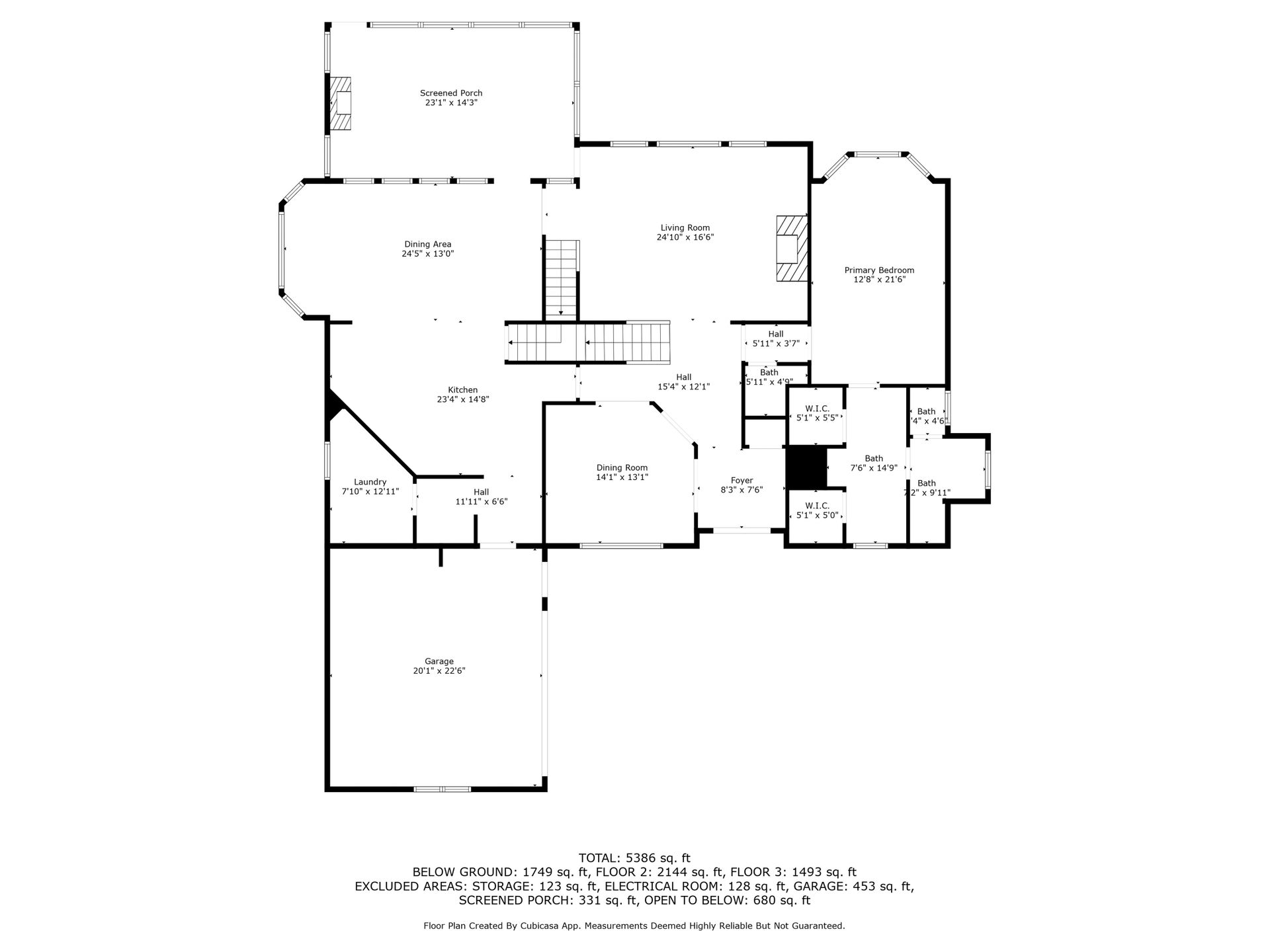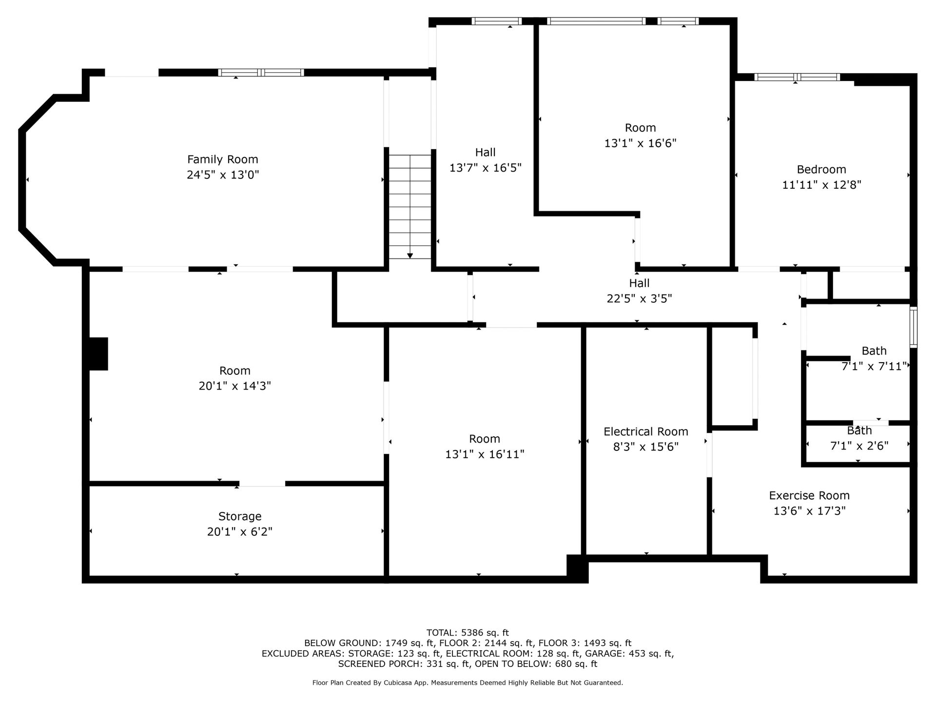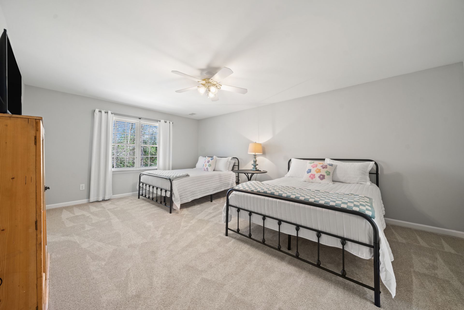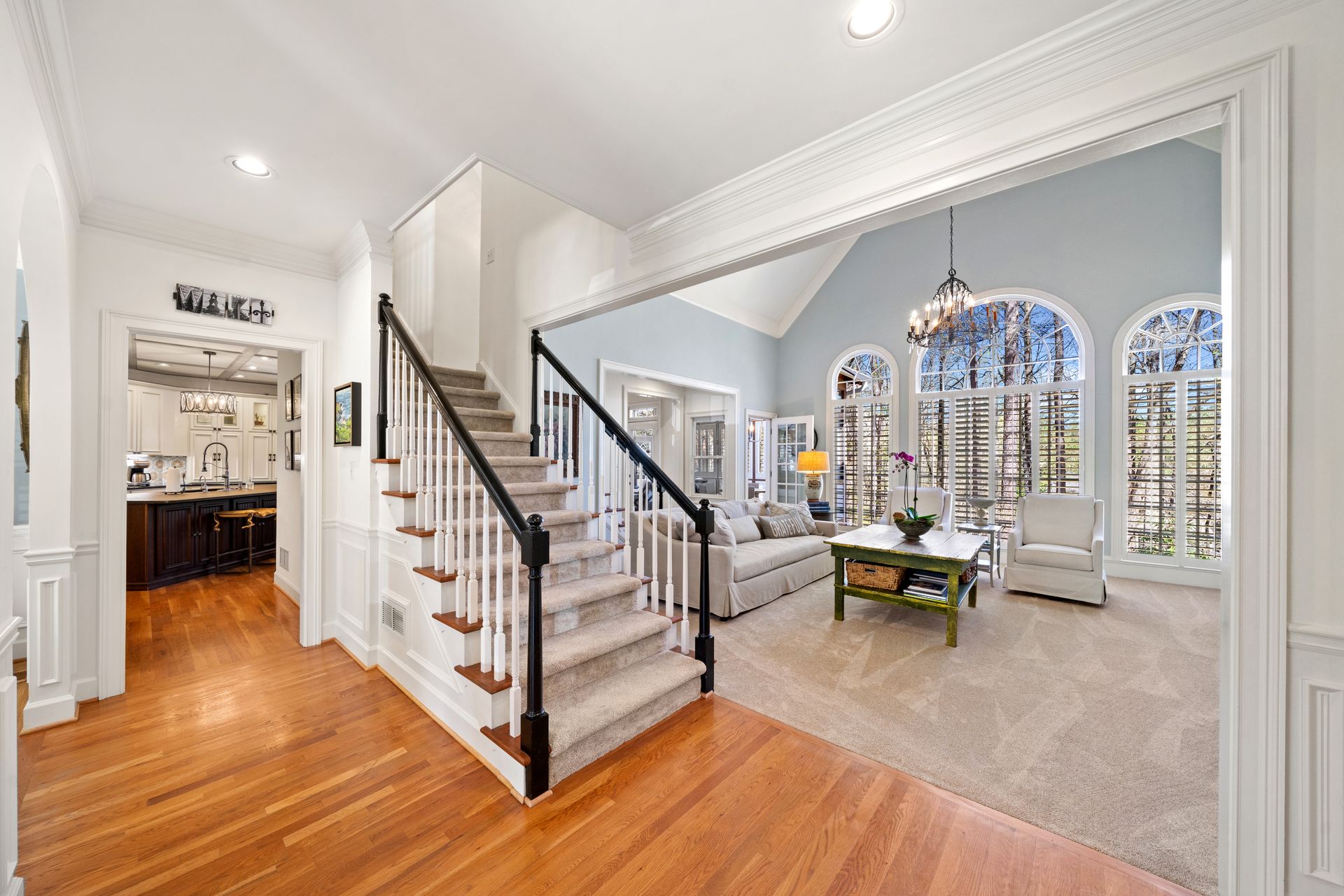 This approximately 6,355 square foot home offers five bedrooms and four and a half bathrooms. The main level features a spacious outdoor living space with a fireplace and soaring beamed ceiling, as well as a stone patio and a private backyard. The interior boasts hardwood floors and new carpeting throughout.