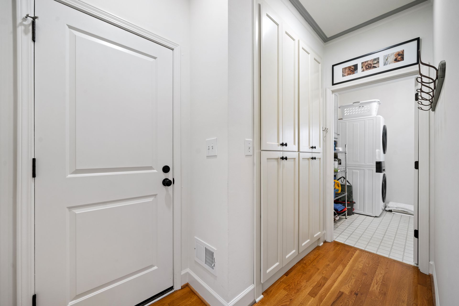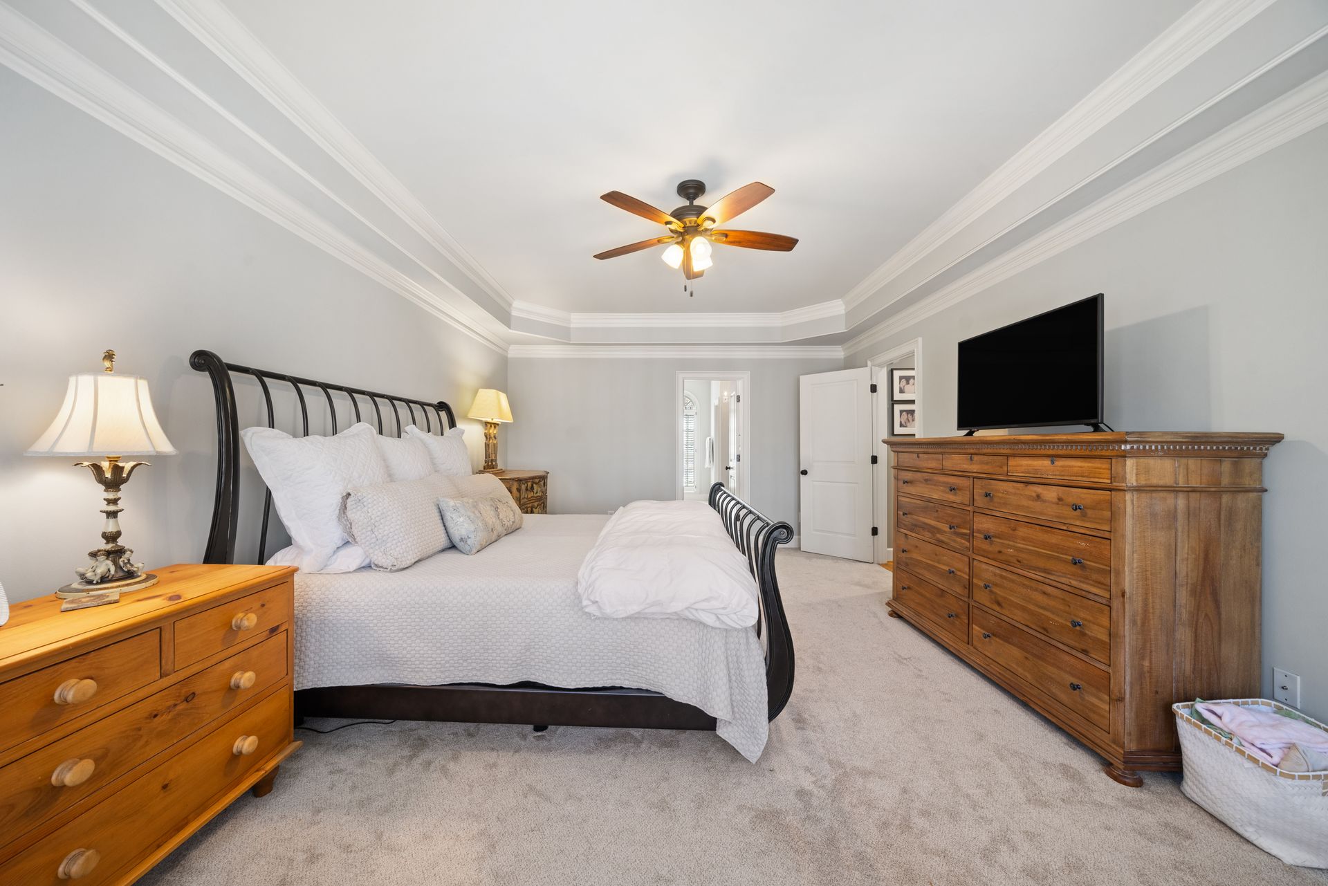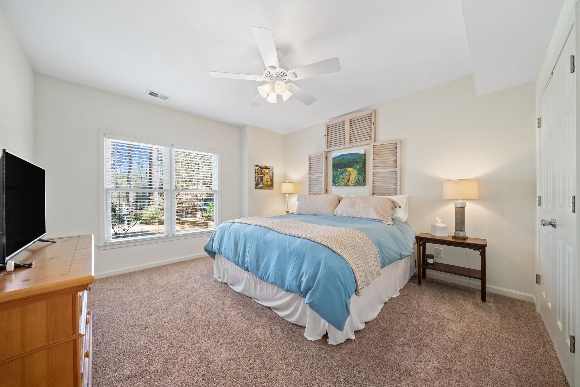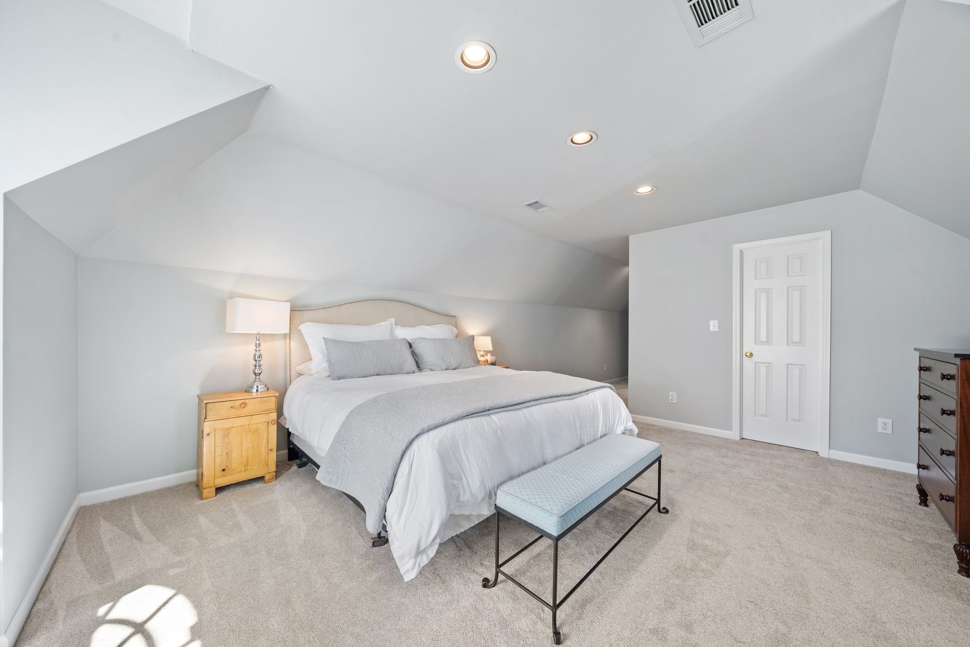 The primary bedroom is located on the main level and has been recently renovated, as has the kitchen. The kitchen is equipped with new stainless steel appliances, including a six-burner Dacor range. There is also a large formal dining room and a spacious living room with a fireplace and built-in bookcases.