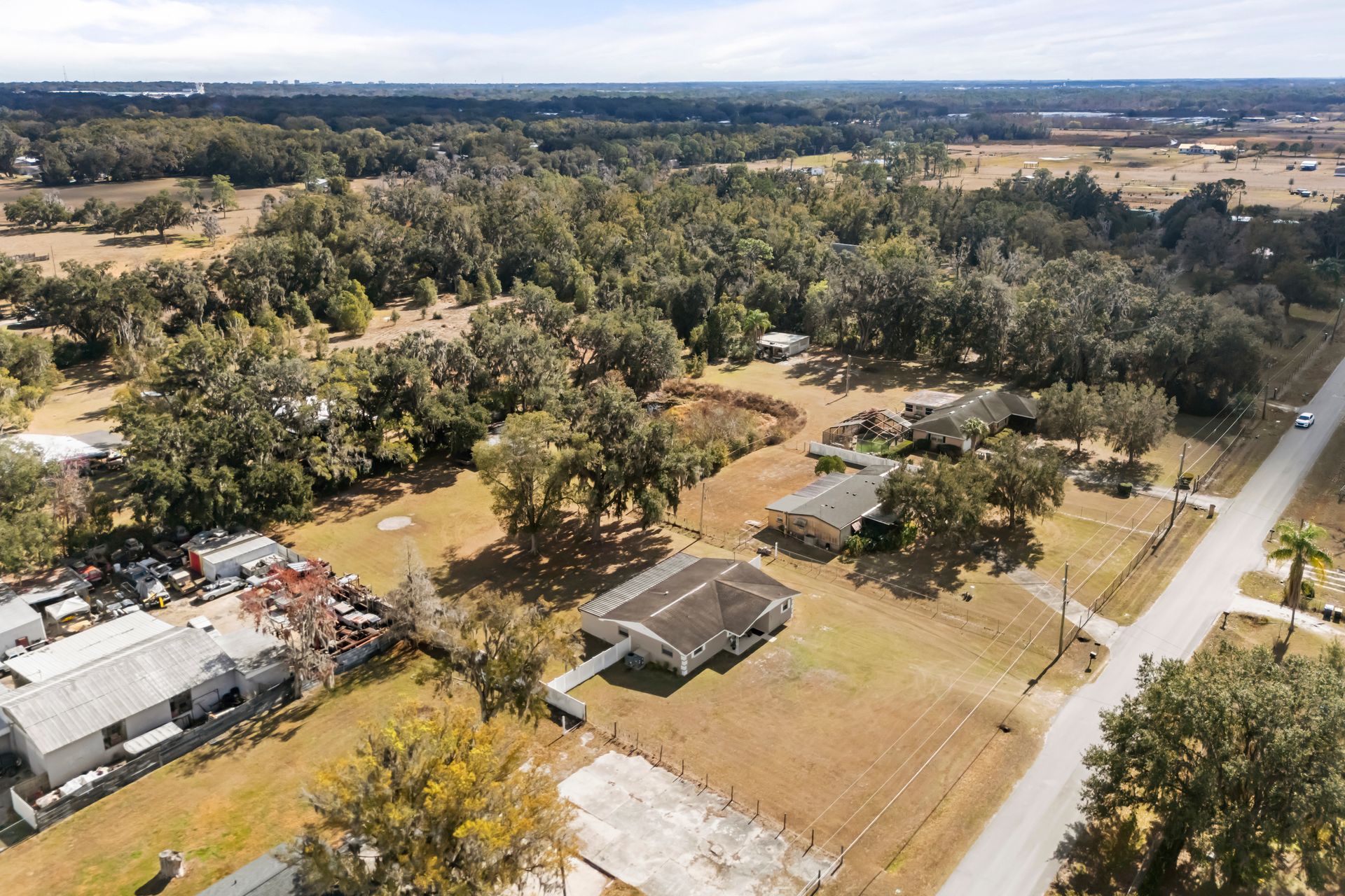 Warm and inviting 3 bedroom, 3 bath home nestled on over 1 acre in Lakeland, where space, privacy and comfort come together perfectly—with no HOA restrictions and USDA eligible. The home features an open‑concept floor plan that seamlessly connects the living room, family room, dining area and kitchen, creating a warm and functional heart of the home. This layout is ideal for everyday life and entertaining, allowing everyone to stay connected while enjoying their own space. The thoughtfully designed Florida split floor plan offers comfort and privacy as well as separation of space. Two of the bedrooms serve as true primary suites, each with its own en-suite full bath and walk‑in closet. One suite even includes a private exterior entrance, great for long‑term guests or a potential rental opportunity. This home offers exceptional storage throughout, including an oversized interior laundry room with generous space for organization, crafting, homesteading projects or additional household storage. Step outside to enjoy the oversized 30' x 15' screened‑in lanai, an extension of the living space. Additional storage in the lanai area adds even more convenience. The fully fenced yard provides a safe, private environment for pets, along with plenty of room for gardening, outdoor activities or future expansion. With its charming curb appeal, flexible layout and expansive lot, this home offers a rare opportunity to enjoy peaceful acreage living while remaining close to schools, shopping, dining and major roadways. This is a place where lasting memories can be made.