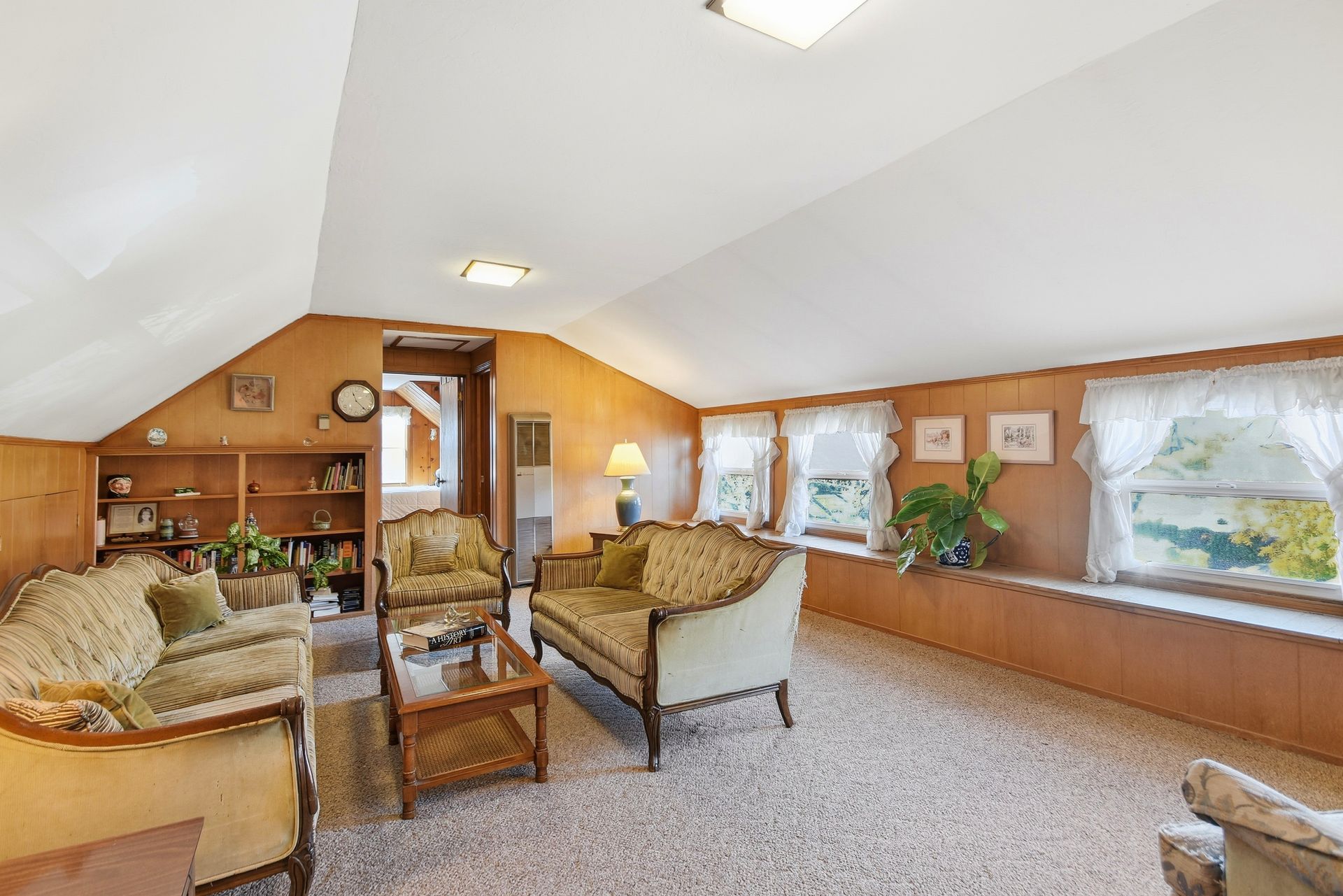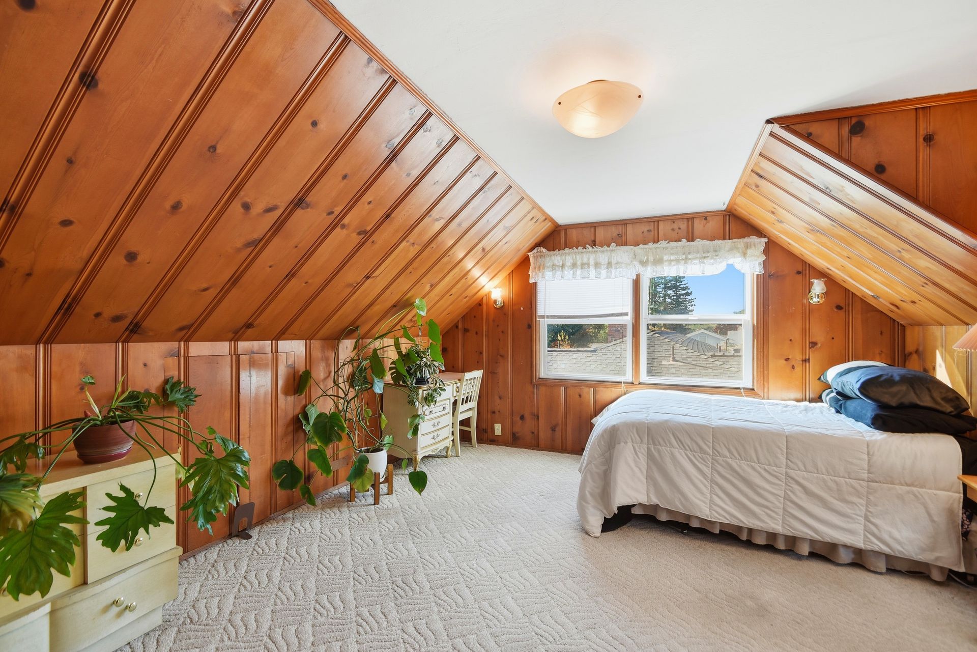 The home offers the perfect foundation for a growing family, with warm and inviting spaces throughout. The upstairs bonus room features original knotty-pine paneling and cozy window seats, creating an ideal family room, playroom or game room.
