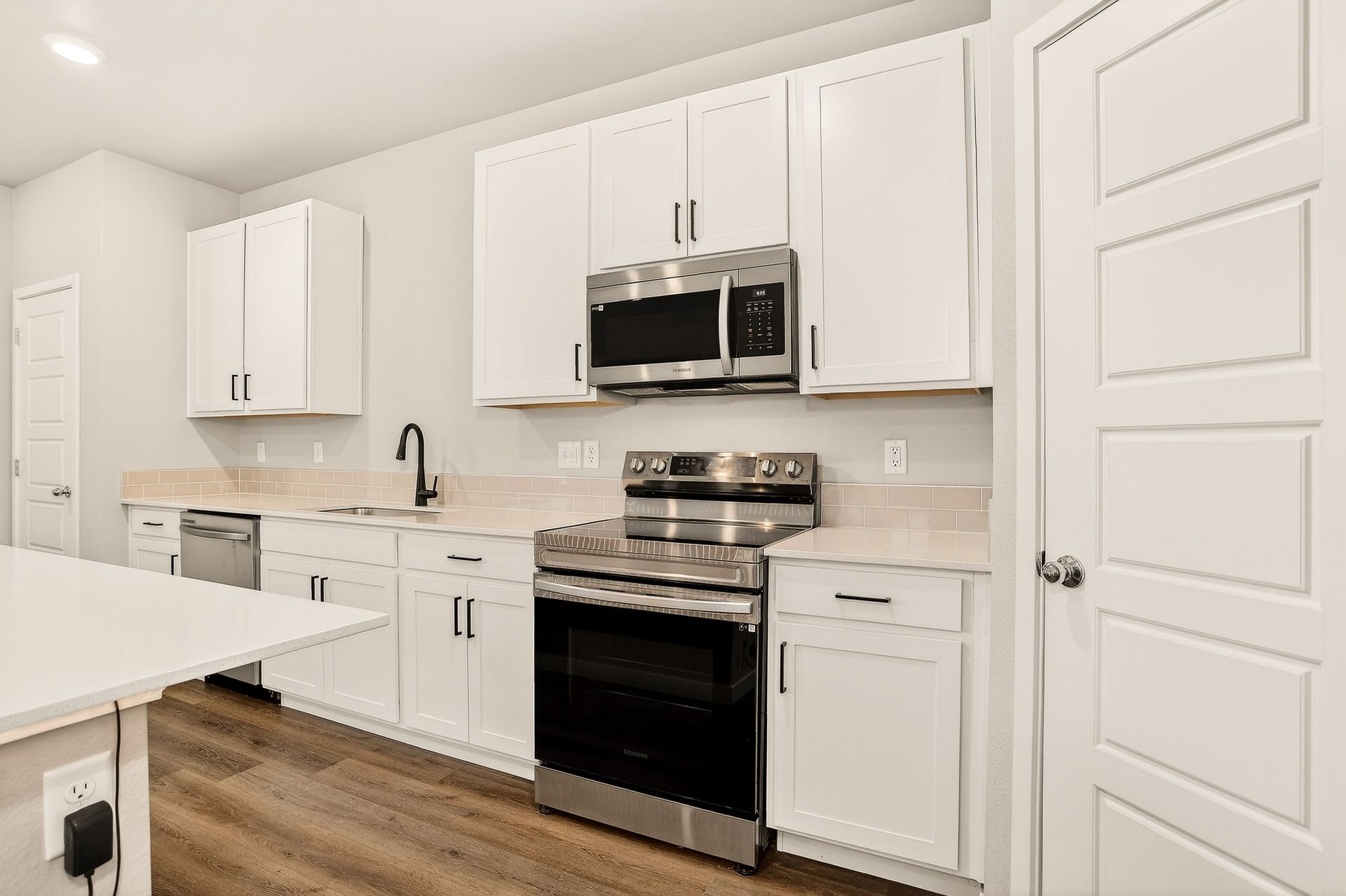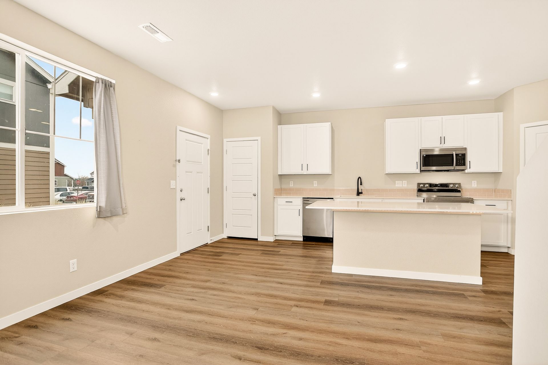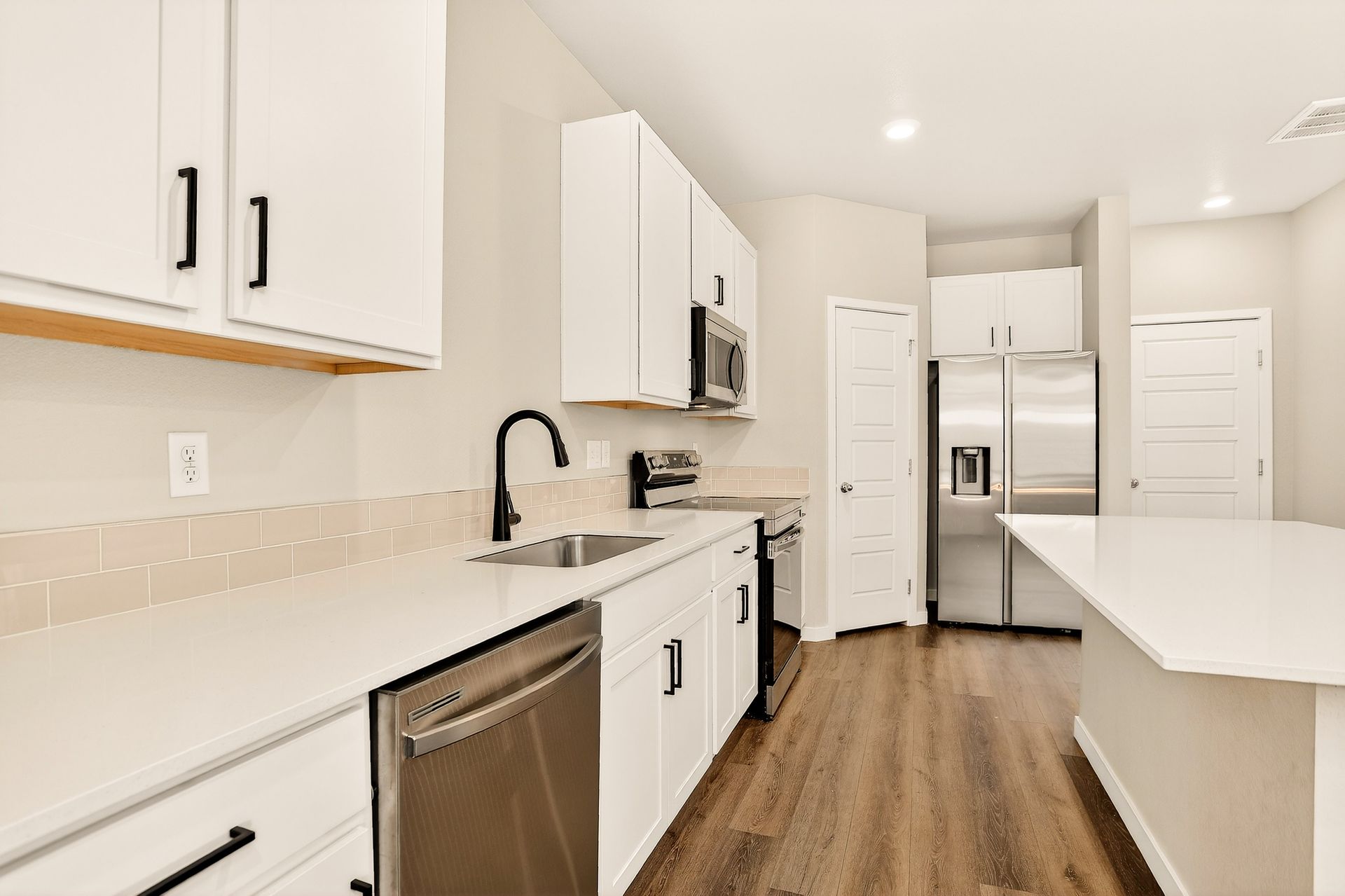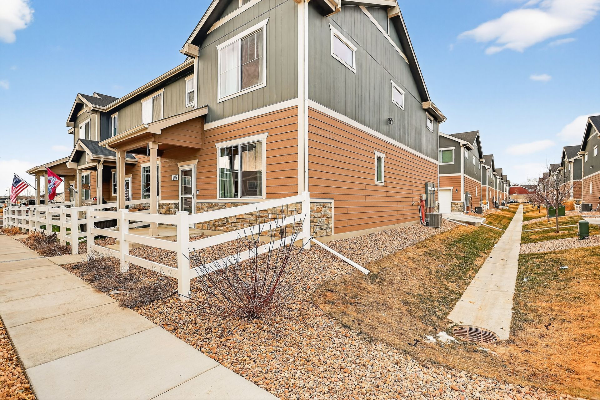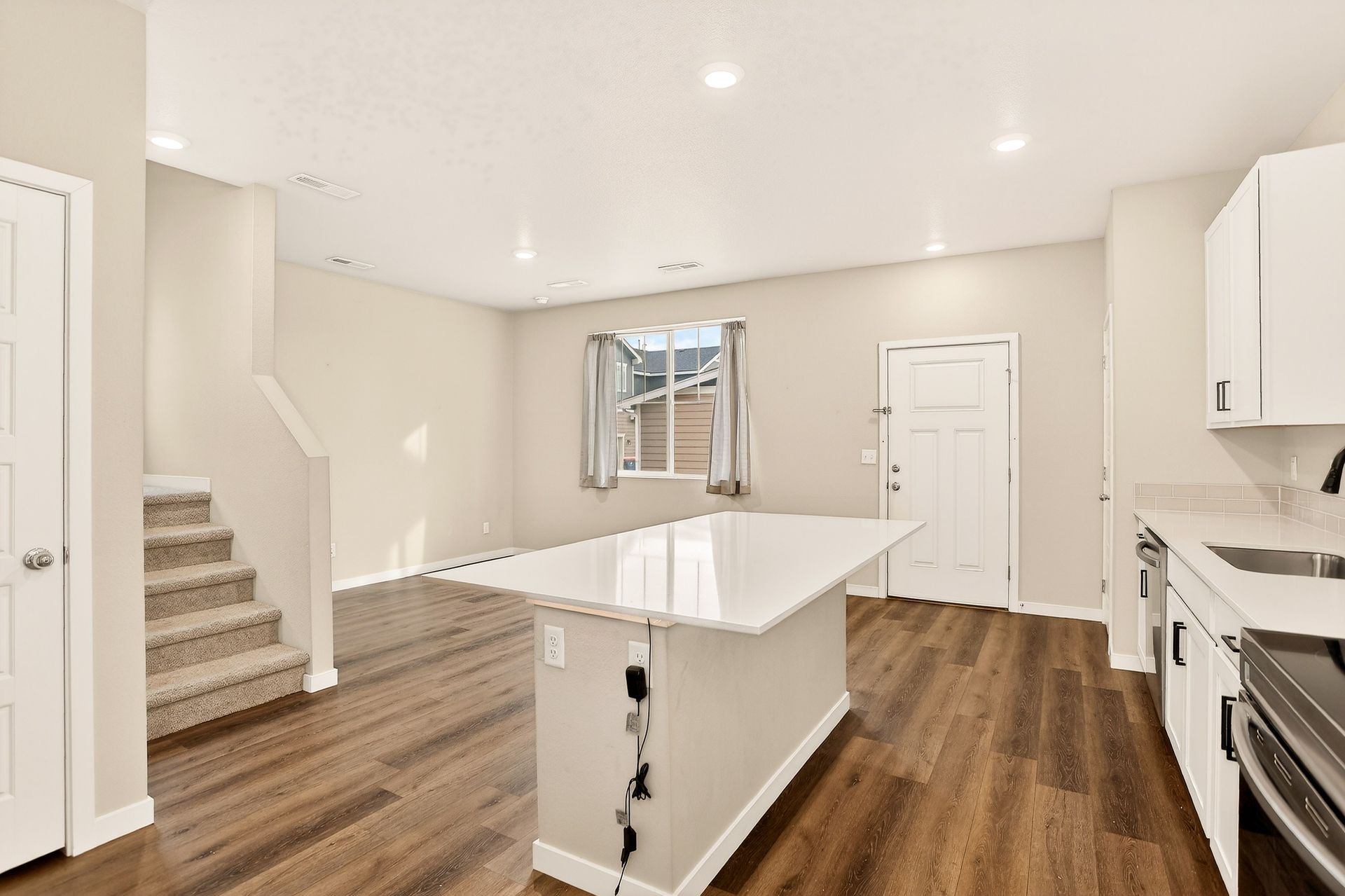 Welcome to this meticulously kept end-unit townhome that perfectly balances modern comfort with everyday convenience. Built in 2022, this well-designed, approximately 1,440-square-foot residence showcases an open-concept floor plan that brings the home together. The main level welcomes you with an open-concept kitchen showcasing sleek quartz countertops, stainless steel appliances, and a spacious island-perfect for meal prep and casual dining. A convenient half bath on this level ensures your guests never have to venture upstairs, while the two-car attached garage provides ample parking and storage space.