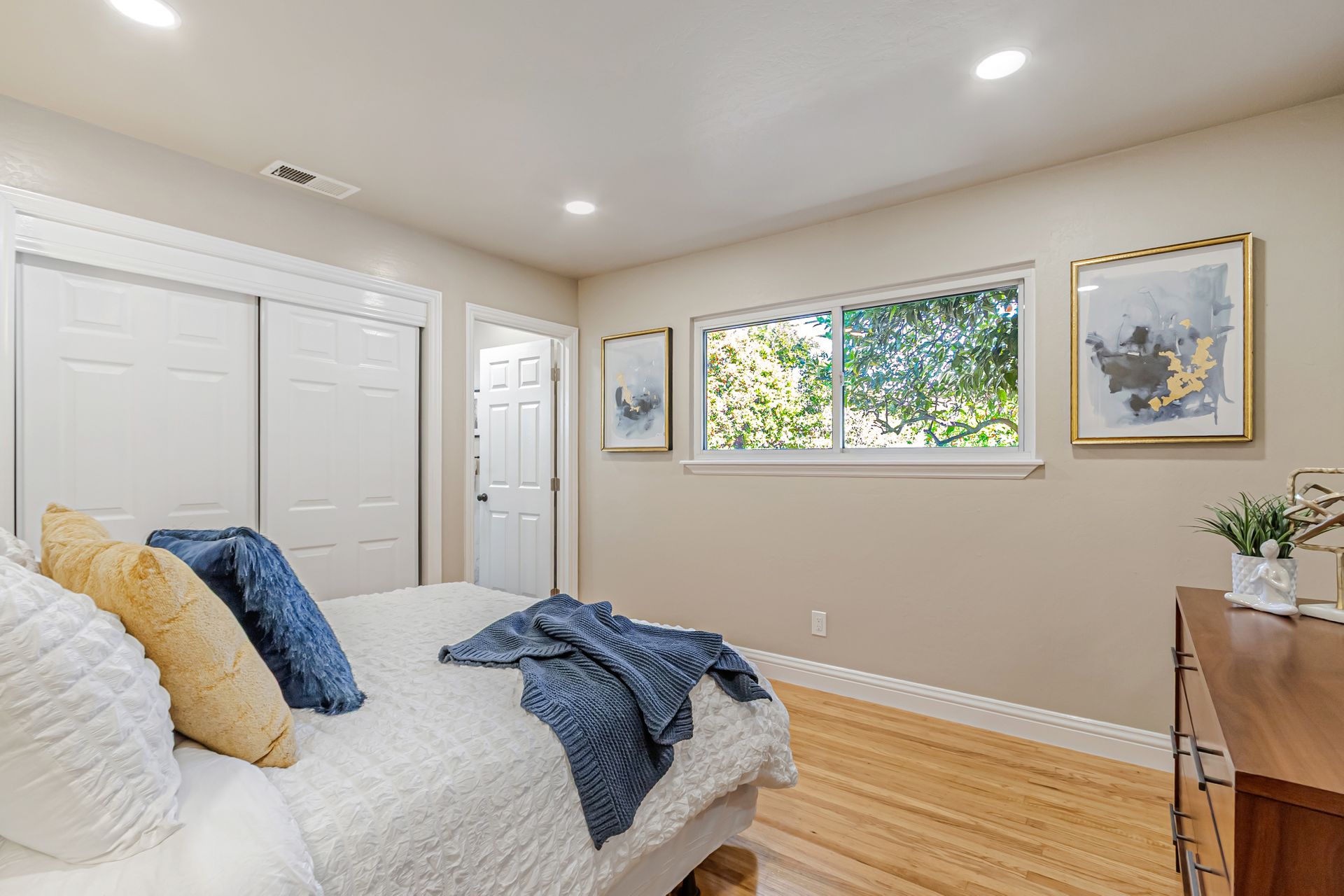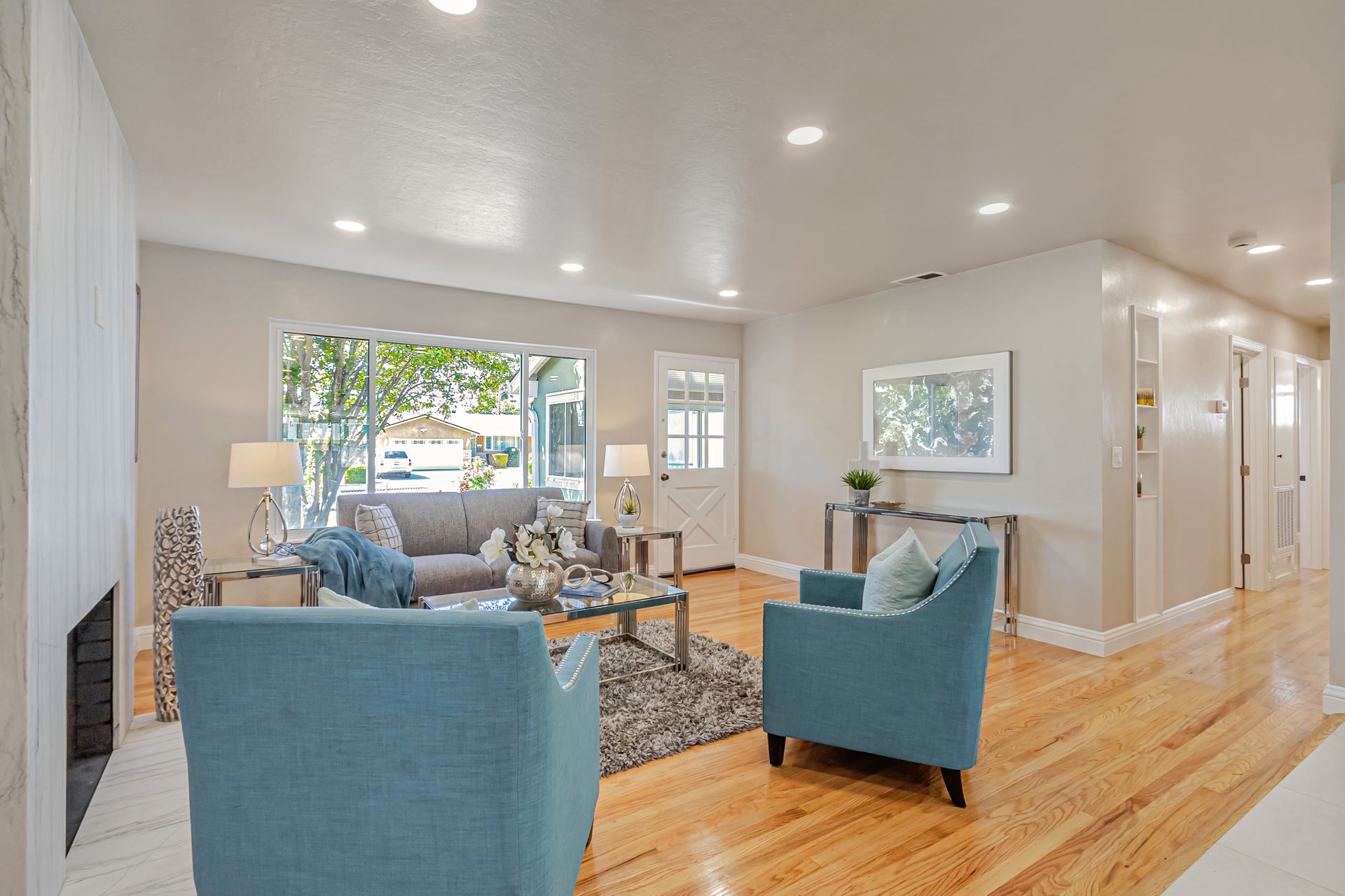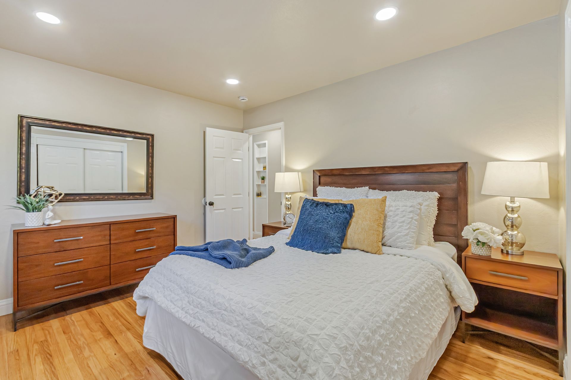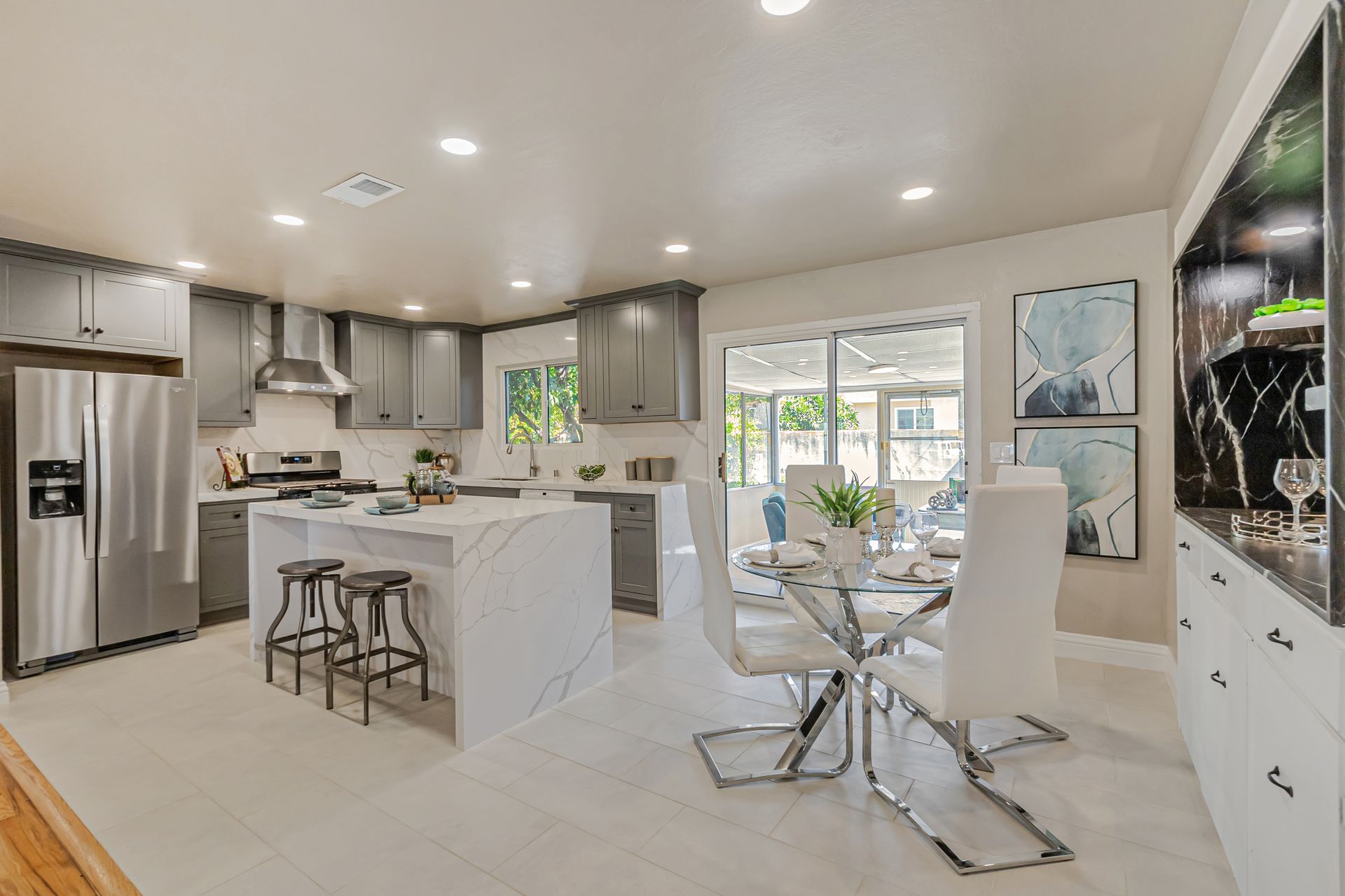 Welcome to your future home at the base of the foothills in San Joses Berryessa District complete with blooming front yard rose garden. The household on the go is going to love the open kitchen concept featuring new cabinets, new free-standing stainless steel Whirlpool gas range and oven, Bosch dishwasher, all set in a custom designed Quartz island counter, breakfast bar withbacksplash. Cabinets have flush mounted doors with hidden hinges. Central to the kitchen are the living and dining area areas with hardwood floors, attractive stone encased fireplace mantle and built in with recessed lighting. Through a sliding glass door is a separate family room, providing ample space for relaxation and entertainment. Year-round comfort is assured with dual paned windows central air conditioning and heat. The newly remodeled hall bathroom features new vanity Kohler fixtures and immaculate new stone enclosure with shower over tub. The primary suite has a newly remodeled bathroom with spacious shower enclosure, quartz walls and mosaic tile floor. New vanity and Kohler fixture complete the look. A sunny private backyard is perfect for the gardener and allows for all day sun. Fully finished 2 car garage with epoxy floor and storage cabinets. Easy access to shopping and schools.