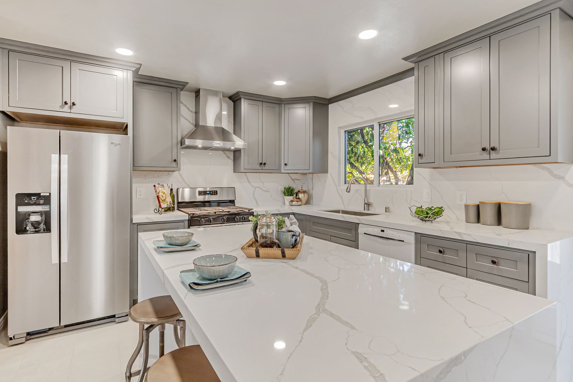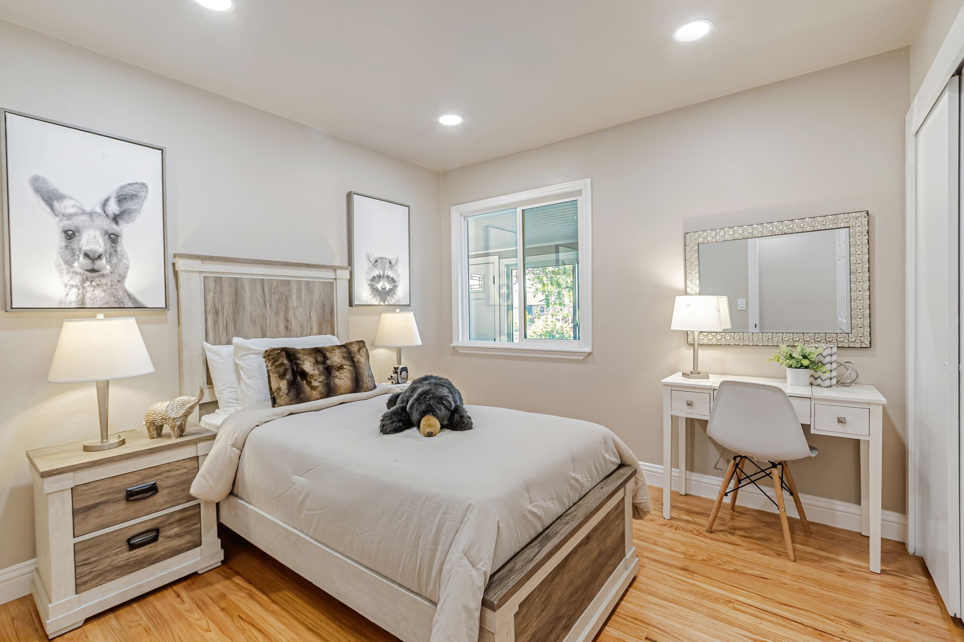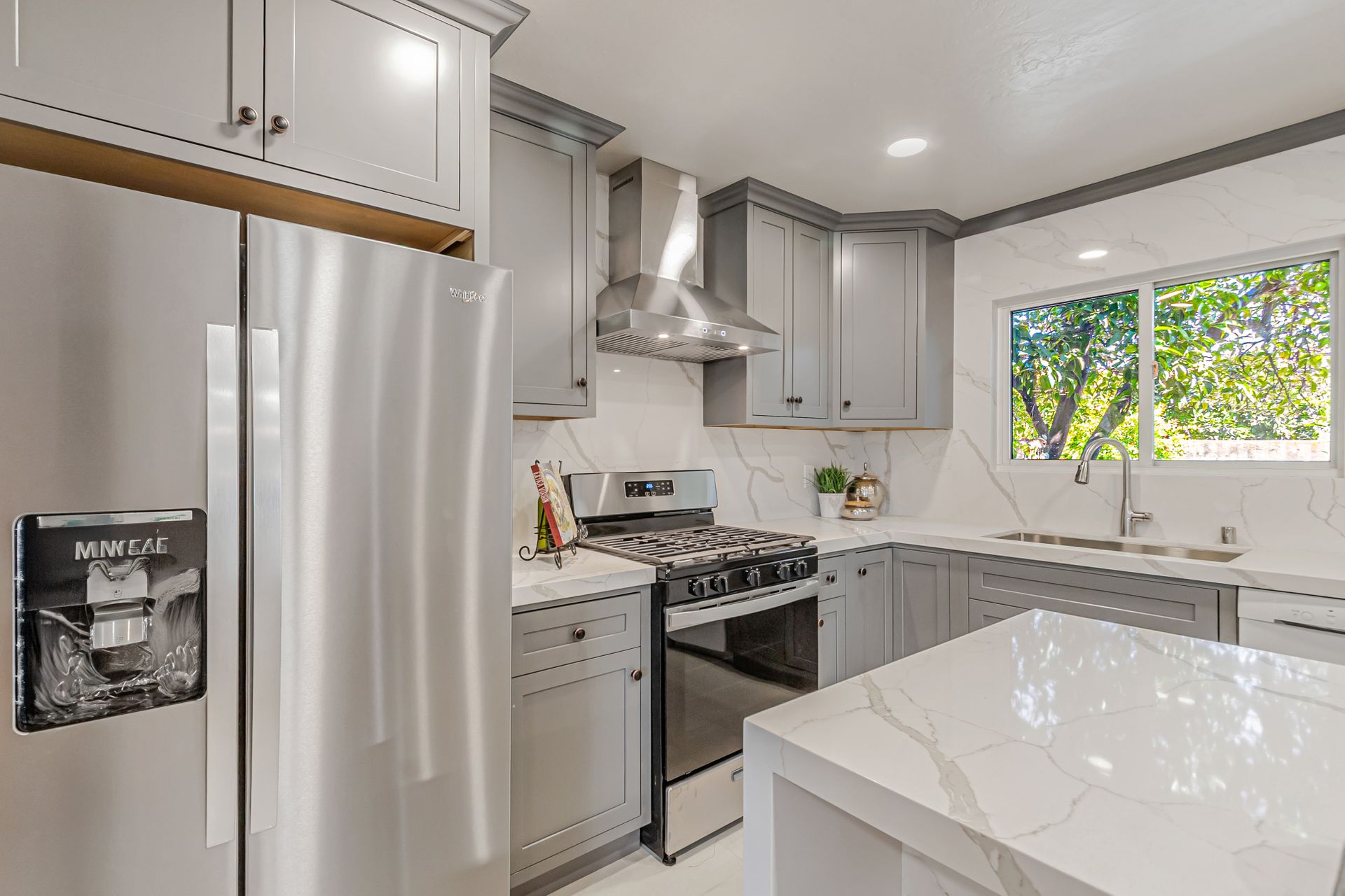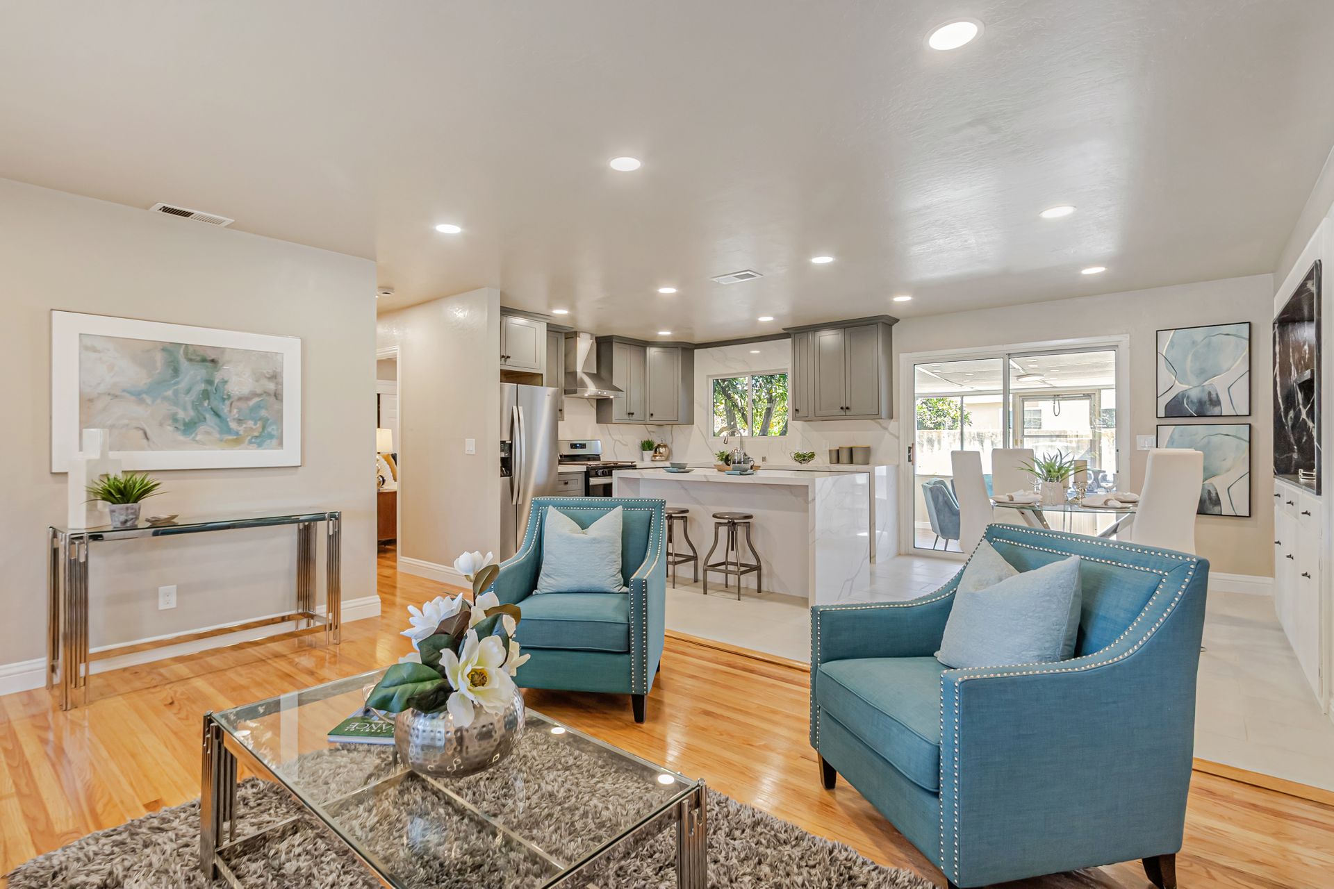 Welcome to your future home at the base of the foothills in San Joses Berryessa District complete with blooming front yard rose garden. The household on the go is going to love the open kitchen concept featuring new cabinets, new free-standing stainless steel Whirlpool gas range and oven, Bosch dishwasher, all set in a custom designed Quartz island counter, breakfast bar withbacksplash. Cabinets have flush mounted doors with hidden hinges. Central to the kitchen are the living and dining area areas with hardwood floors, attractive stone encased fireplace mantle and built in with recessed lighting. Through a sliding glass door is a separate family room, providing ample space for relaxation and entertainment. Year-round comfort is assured with dual paned windows central air conditioning and heat. The newly remodeled hall bathroom features new vanity Kohler fixtures and immaculate new stone enclosure with shower over tub. The primary suite has a newly remodeled bathroom with spacious shower enclosure, quartz walls and mosaic tile floor. New vanity and Kohler fixture complete the look. A sunny private backyard is perfect for the gardener and allows for all day sun. Fully finished 2 car garage with epoxy floor and storage cabinets. Easy access to shopping and schools.