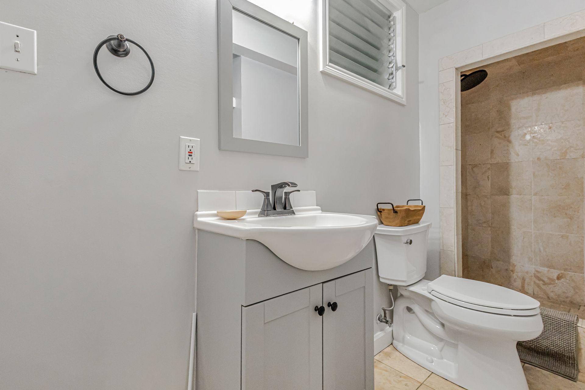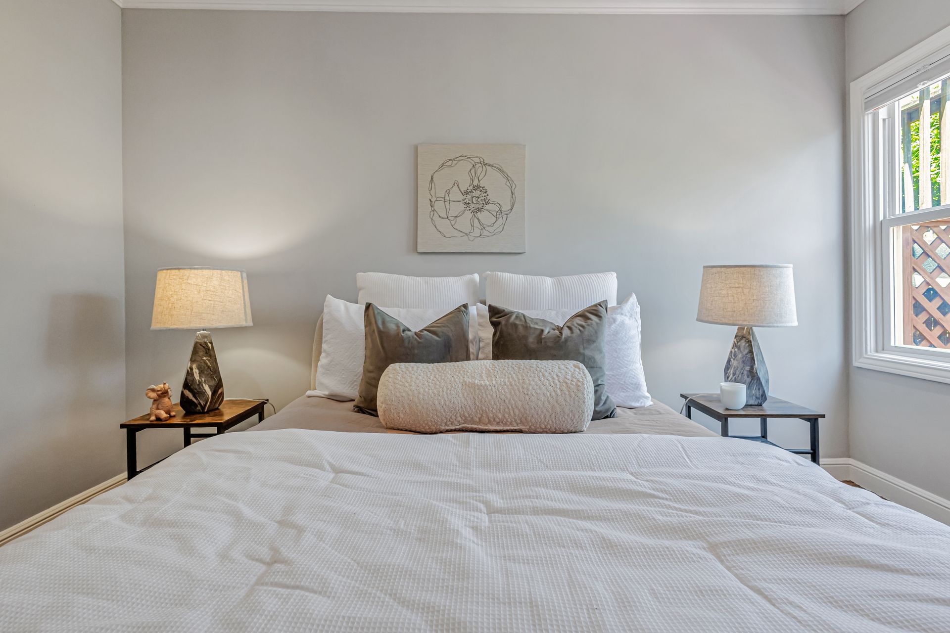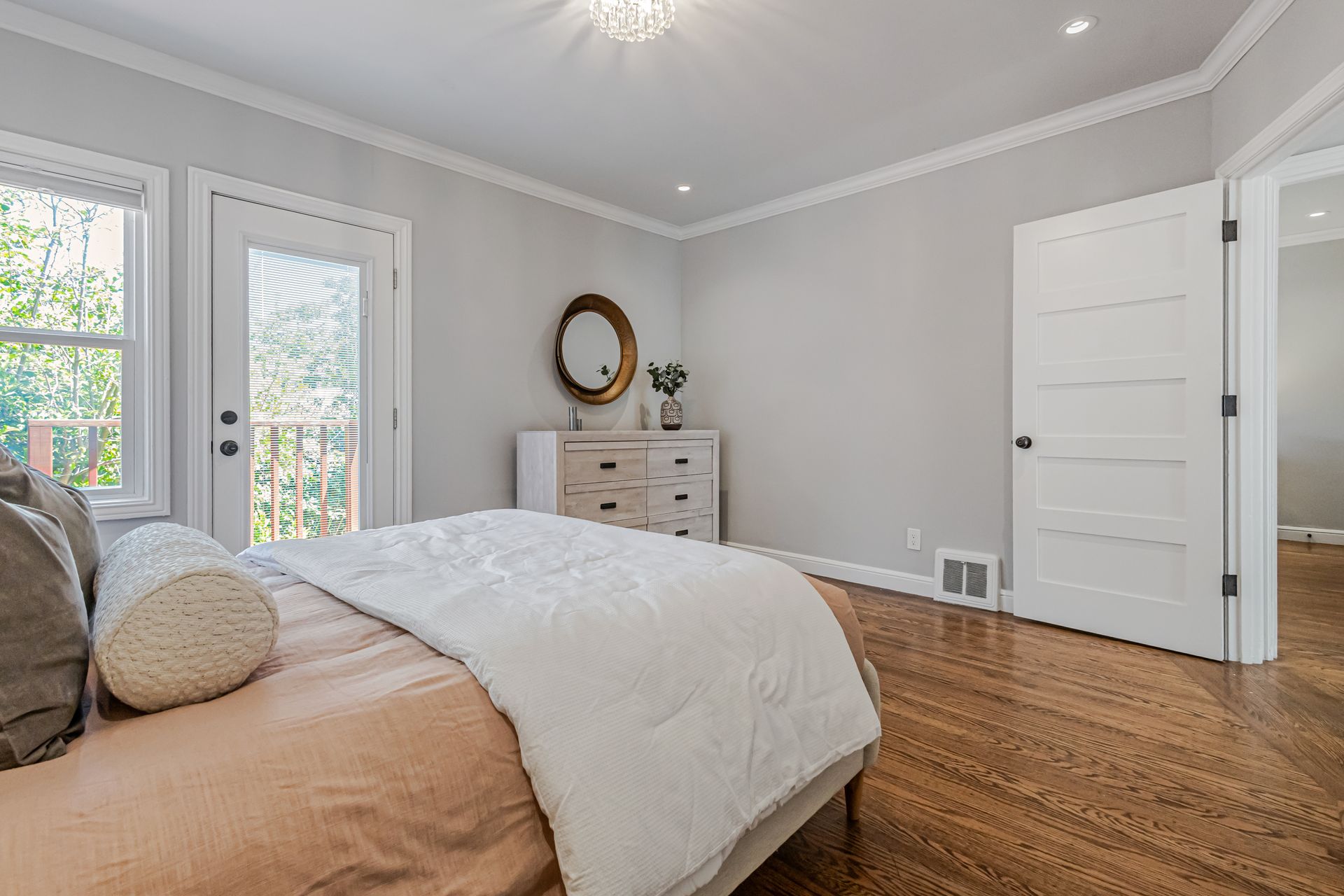 The main level also features a sophisticated, fully upgraded bathroom adorned with solid stone finishes, designed for both functionality and luxury. Fresh interior paint enhances the ambiance, particularly in the generously sized bedrooms.