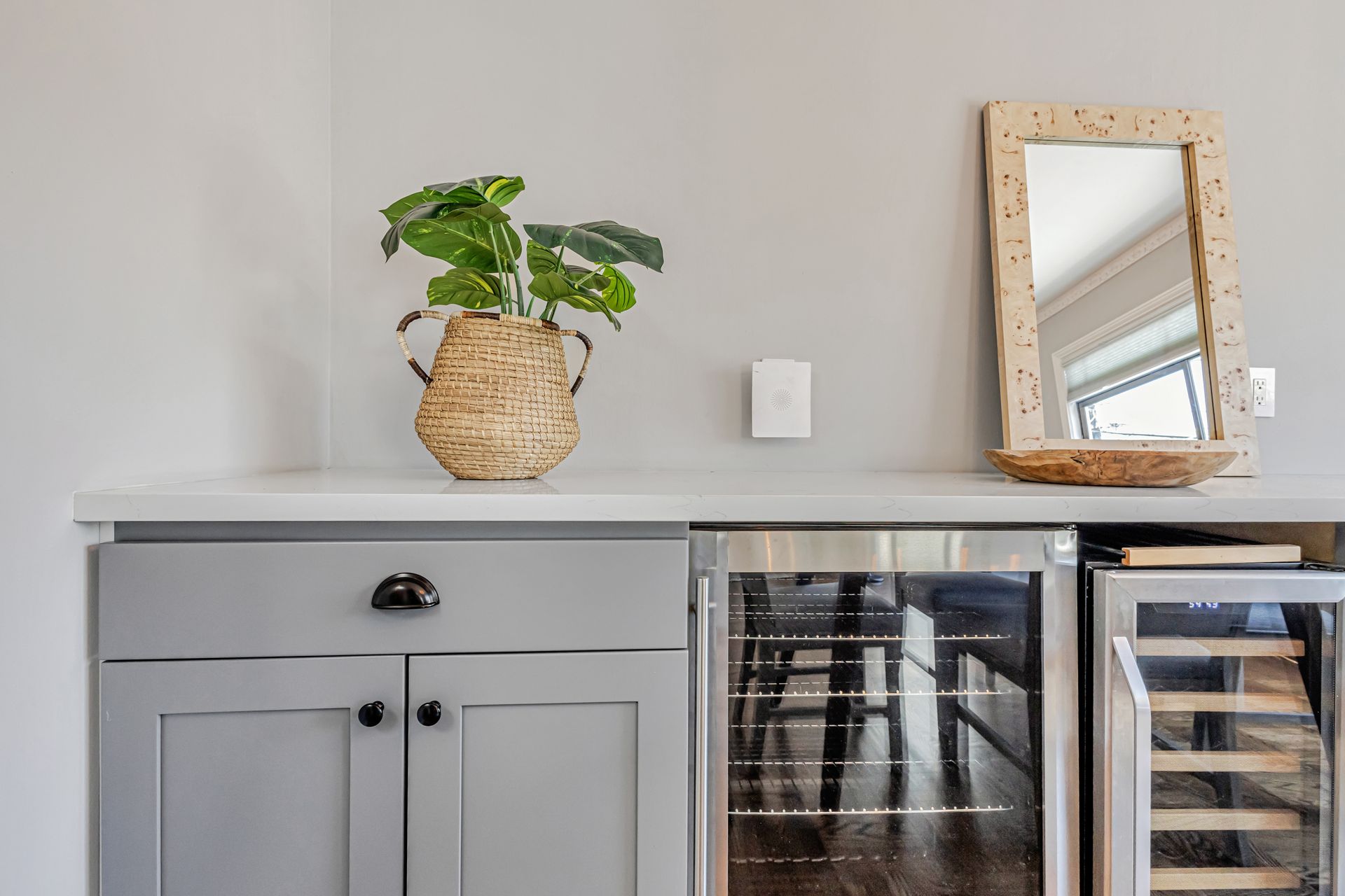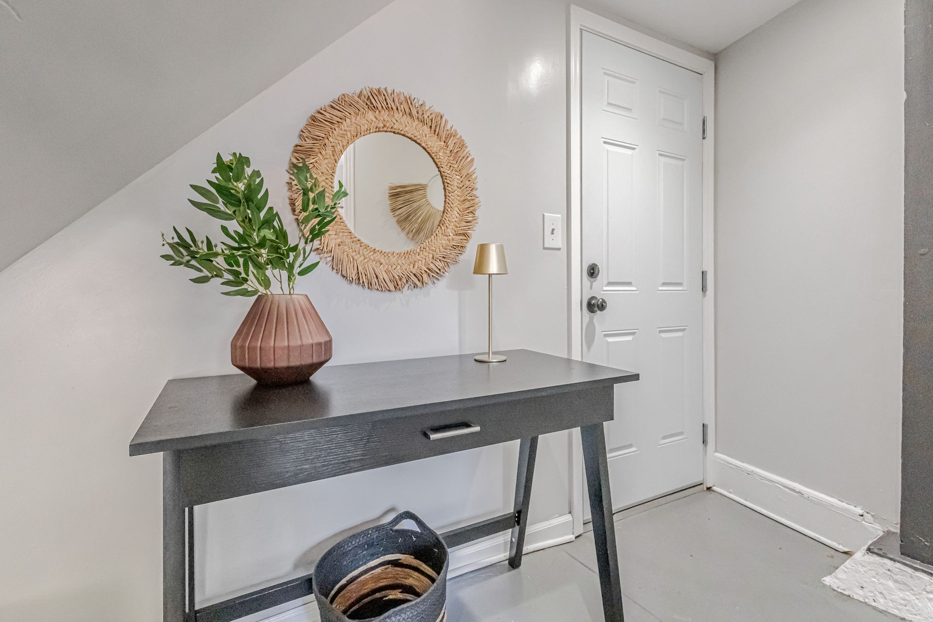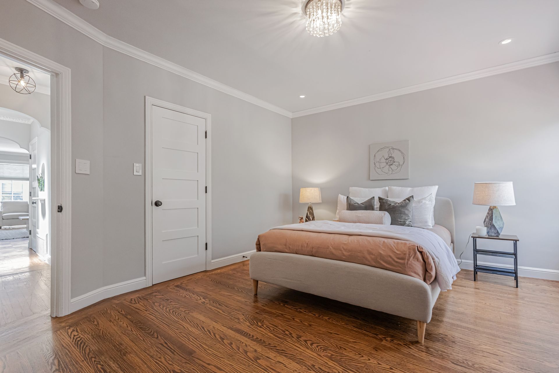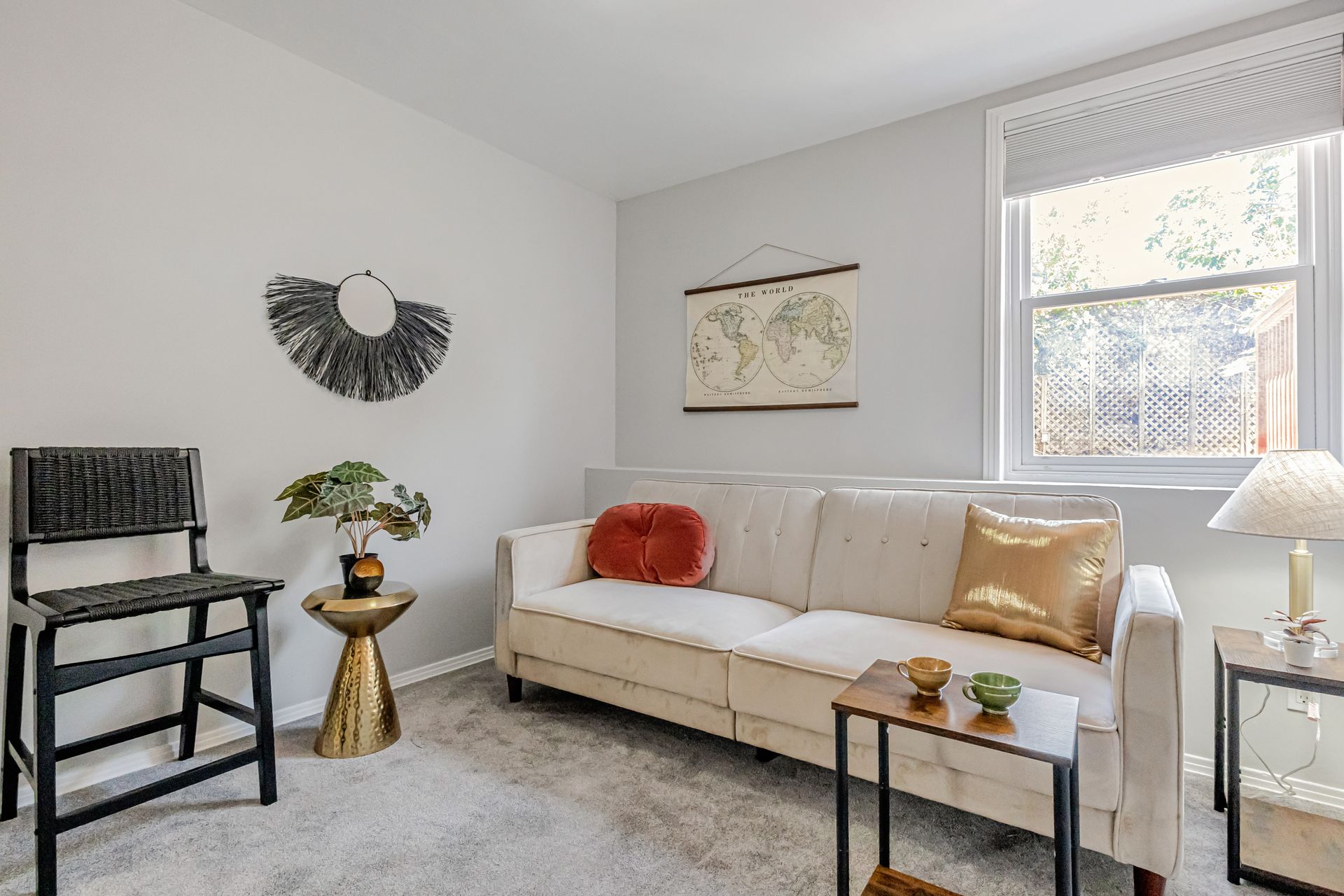 The main level also features a sophisticated, fully upgraded bathroom adorned with solid stone finishes, designed for both functionality and luxury. Fresh interior paint enhances the ambiance, particularly in the generously sized bedrooms.