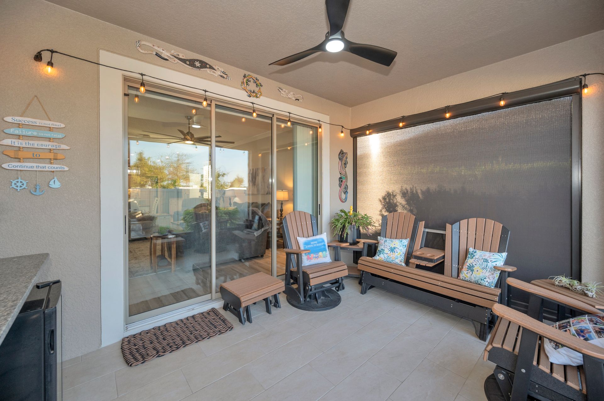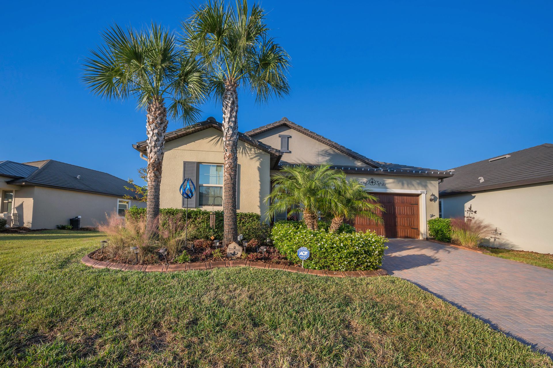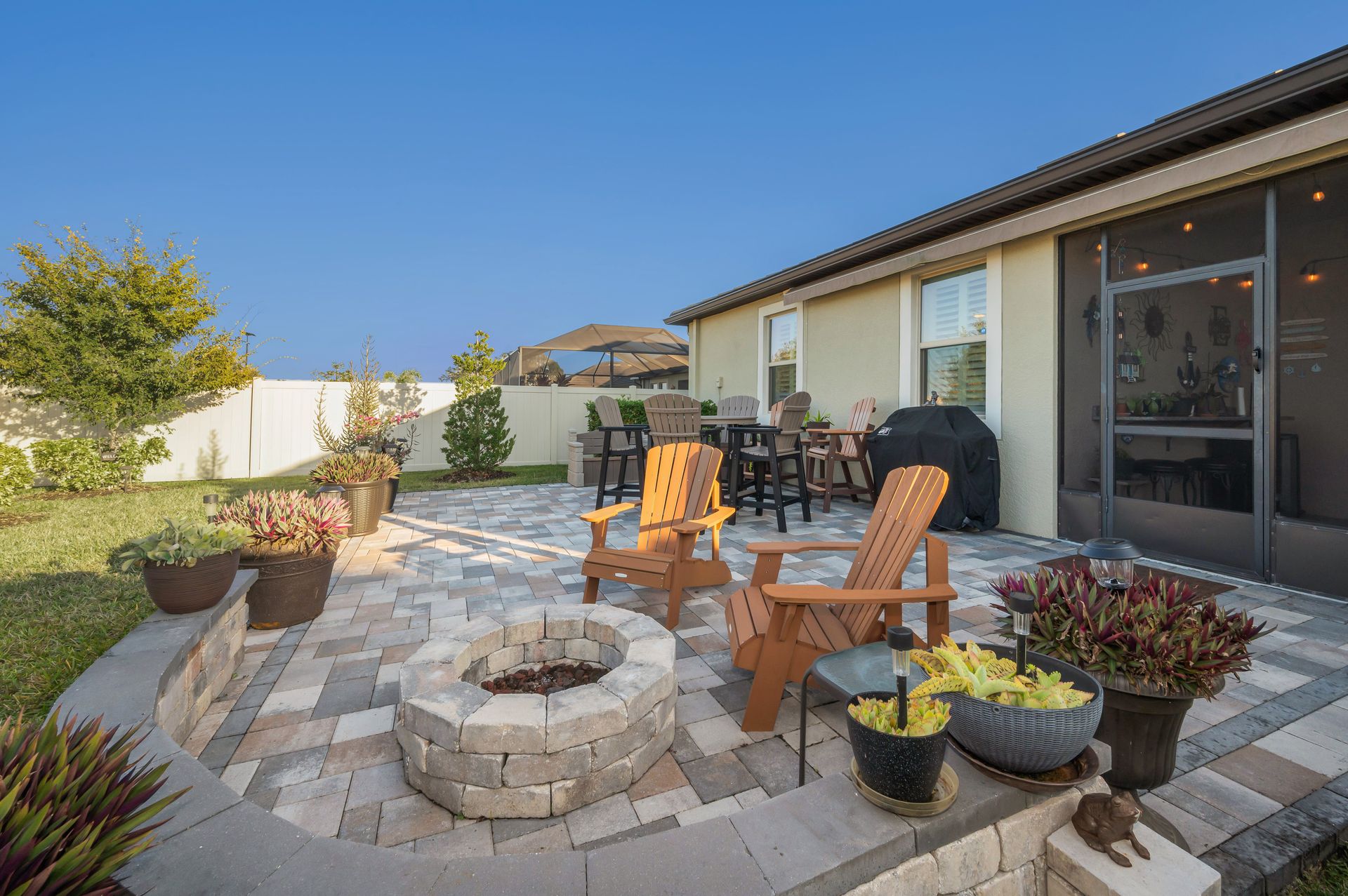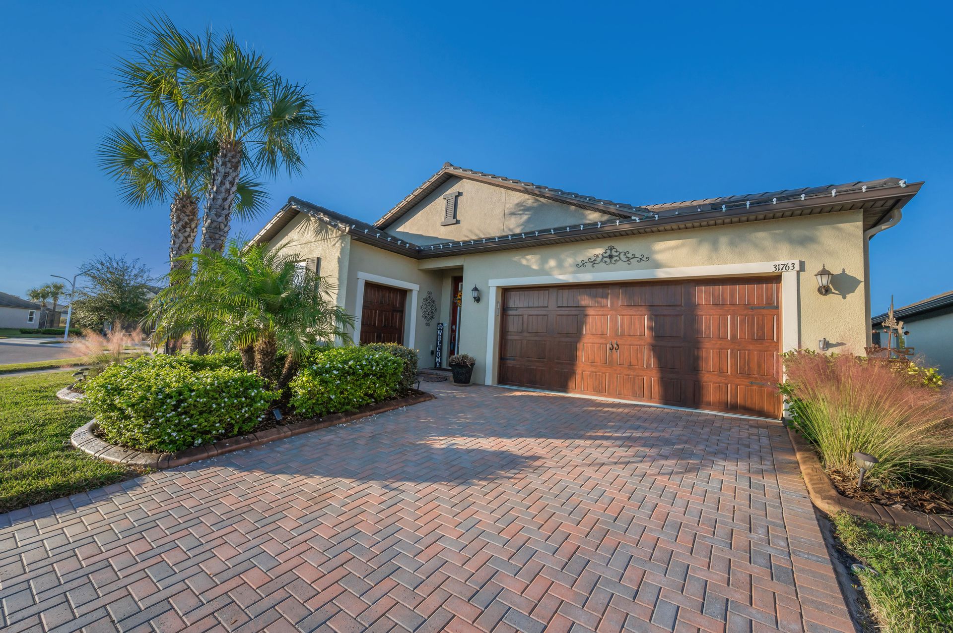 Exceptional 3 bedroom plus office/flex space with 2 1/2 bathrooms located in the heart of Medley at Mirada, the premier 55+ gated community in Pasco county designed specifically for an active and social lifestyle. Also included is access to Mirada’s breathtaking 15-acre Crystal Lagoon, featuring sandy beaches, a swim-up bar and year-round entertainment. As you step inside you are greeted with an open floorplan that provides comfort and functionality. The gourmet kitchen boasts leather granite countertops, elegant backsplash, a spacious island, premium appliances, large walk-in pantry with custom shelving and plenty of cabinet space. Flowing comfortably from the kitchen the dining and living room provides a welcoming space for daily living, cozy evenings or entertaining guests. The owner’s suite is light and bright and offers an oversized walk-in closet with a custom shelving and spa-like bath with new granite counter tops and linen closet. Secondary bedrooms are tucked away from the rest of the home and share an updated bathroom for privacy and convenience. A spacious laundry room with custom cabinetry and a door for added peace and quiet. Luxury Vinyl flooring is throughout the main areas of the home with carpet in the bedrooms for added comfort. Step outside to the screened lanai designed for relaxation featuring a built-in bar area and electric sun shade for those sunny afternoons. The enclosed backyard is ideal for gatherings with pavered patio area, firepit, sun awning and custom landscaping that is enclosed with new PVC fencing ideal for privacy and pets. Additional bonuses include a golf cart garage, whole-house water filtration and softener, plantation shutters, garage entry drop zone with custom cabinets, overhead garage storage shelving and epoxy-coated garage floor. HOA perks cover private landscape maintenance, exterior painting, high-speed internet, expansive cable package, and access to Medley’s private amenity center and the Crystal Lagoon.
