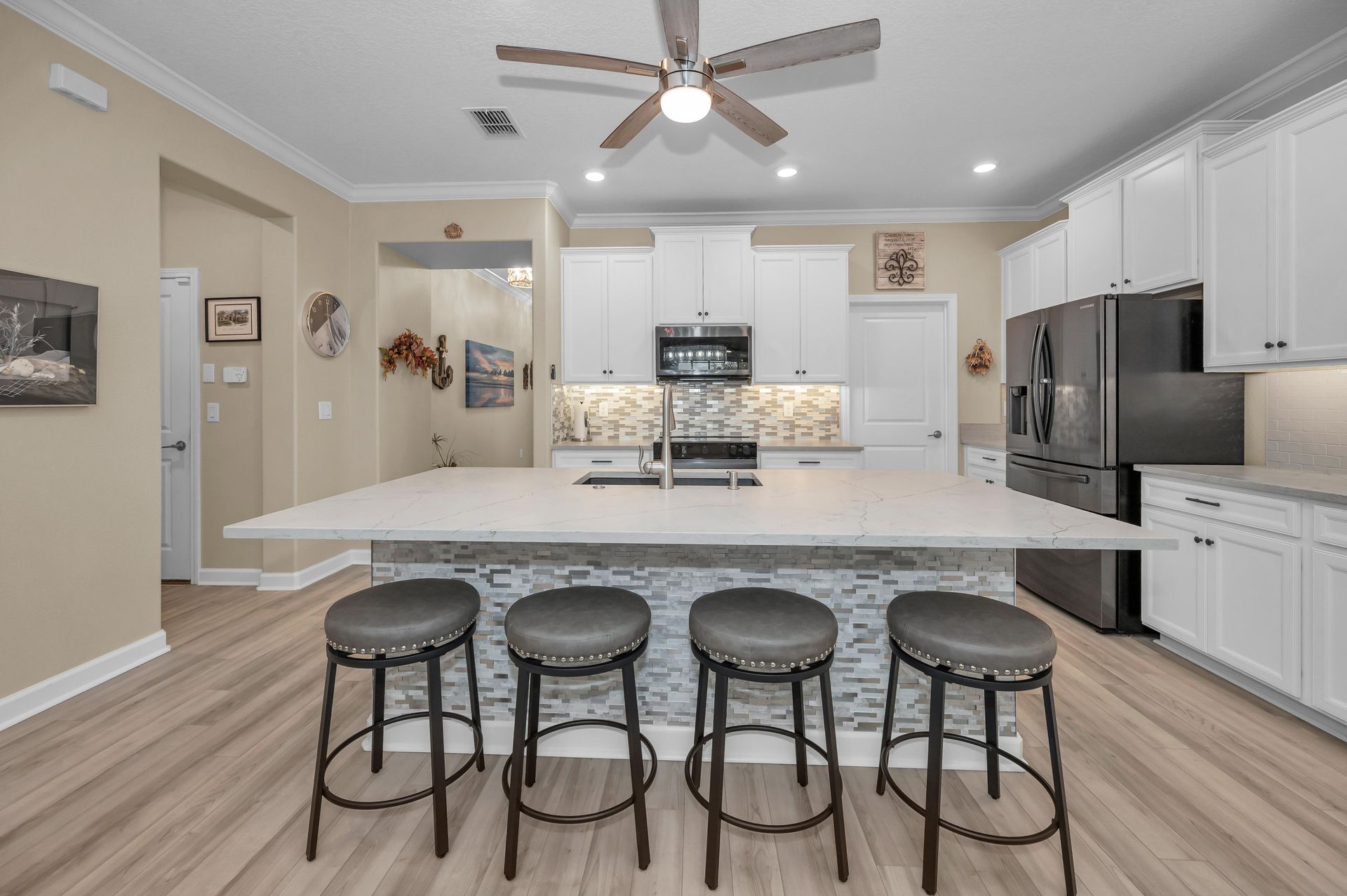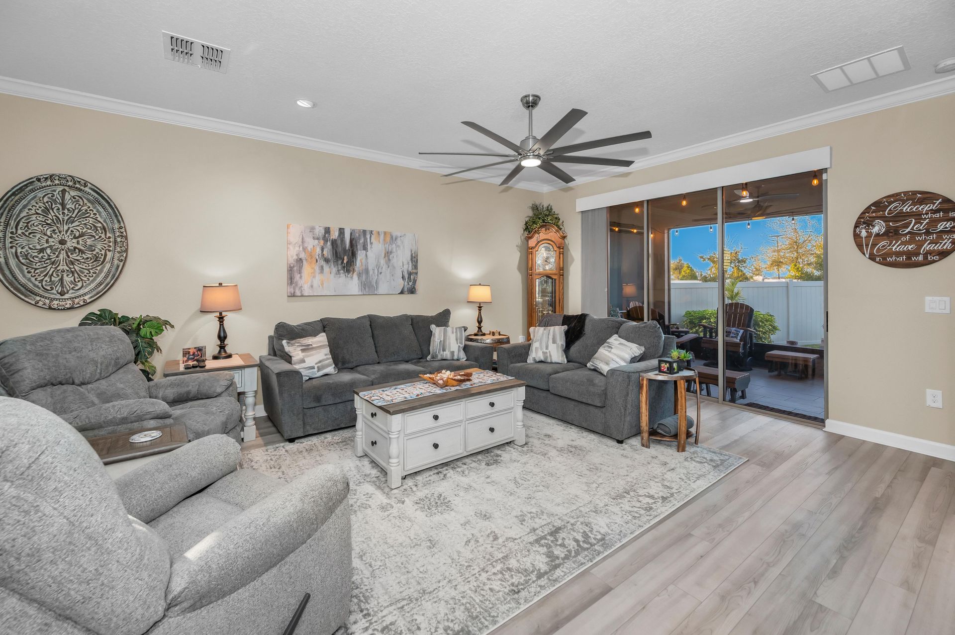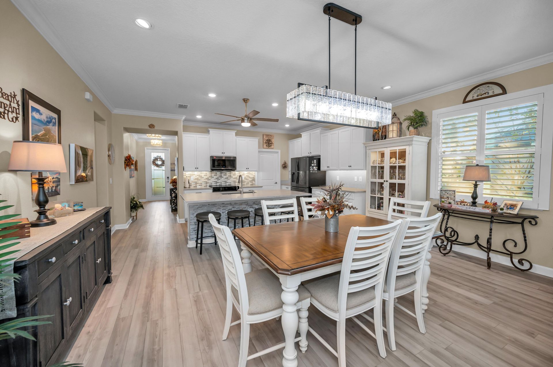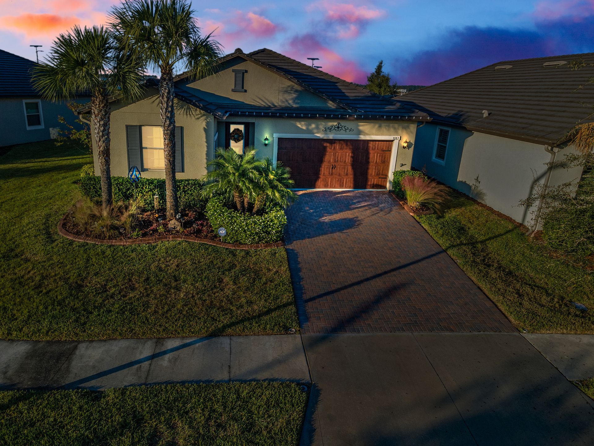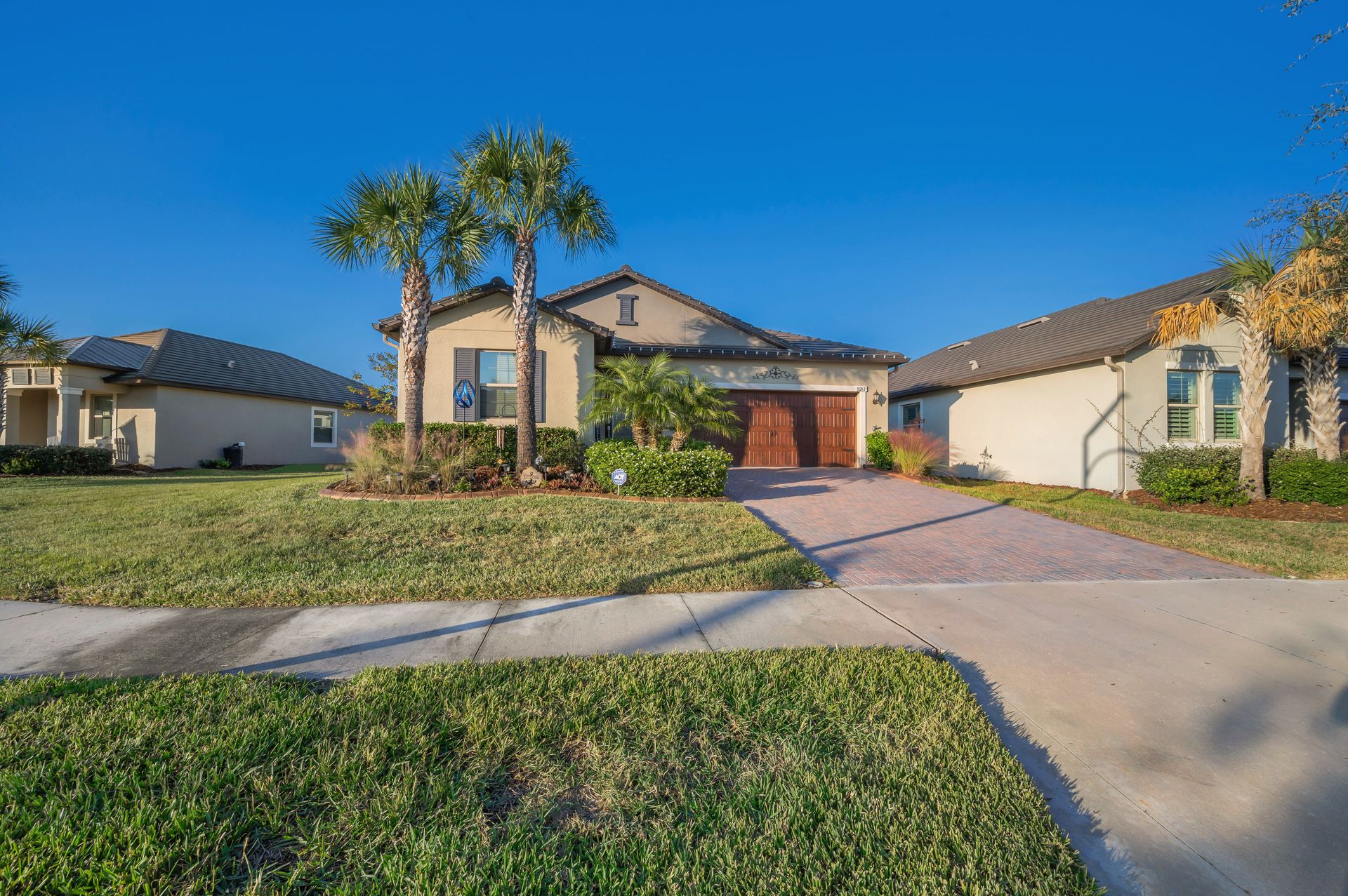Exceptional 3 bedroom plus office/flex space with 2 1/2 bathrooms located in the heart of Medley at Mirada, the premier 55+ gated community in Pasco county designed specifically for an active and social lifestyle. Also included is access to Mirada’s breathtaking 15-acre Crystal Lagoon, featuring sandy beaches, a swim-up bar and year-round entertainment. As you step inside you are greeted with an open floorplan that provides comfort and functionality. The gourmet kitchen boasts leather granite countertops, elegant backsplash, a spacious island, premium appliances, large walk-in pantry with custom shelving and plenty of cabinet space. Flowing comfortably from the kitchen the dining and living room provides a welcoming space for daily living, cozy evenings or entertaining guests. The owner’s suite is light and bright and offers an oversized walk-in closet with a custom shelving and spa-like bath with new granite counter tops and linen closet. Secondary bedrooms are tucked away from the rest of the home and share an updated bathroom for privacy and convenience. A spacious laundry room with custom cabinetry and a door for added peace and quiet. Luxury Vinyl flooring is throughout the main areas of the home with carpet in the bedrooms for added comfort. Step outside to the screened lanai designed for relaxation featuring a built-in bar area and electric sun shade for those sunny afternoons. The enclosed backyard is ideal for gatherings with pavered patio area, firepit, sun awning and custom landscaping that is enclosed with new PVC fencing ideal for privacy and pets. Additional bonuses include a golf cart garage, whole-house water filtration and softener, plantation shutters, garage entry drop zone with custom cabinets, overhead garage storage shelving and epoxy-coated garage floor. HOA perks cover private landscape maintenance, exterior painting, high-speed internet, expansive cable package, and access to Medley’s private amenity center and the Crystal Lagoon.