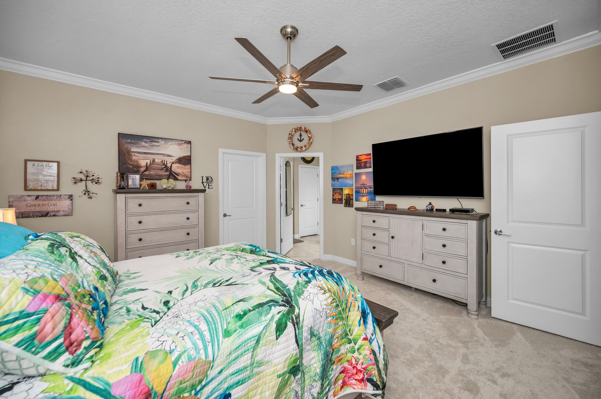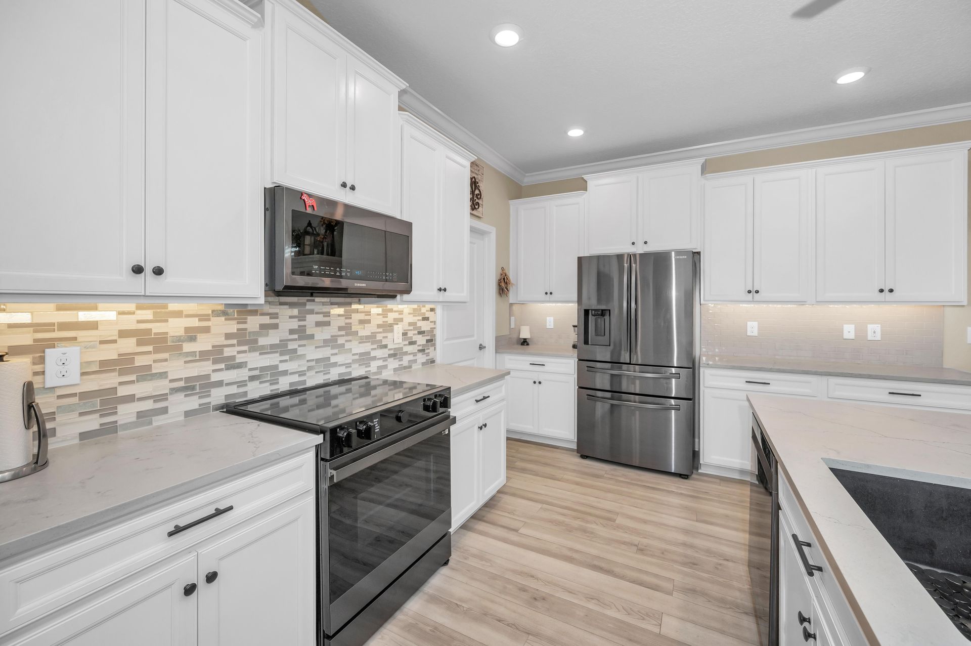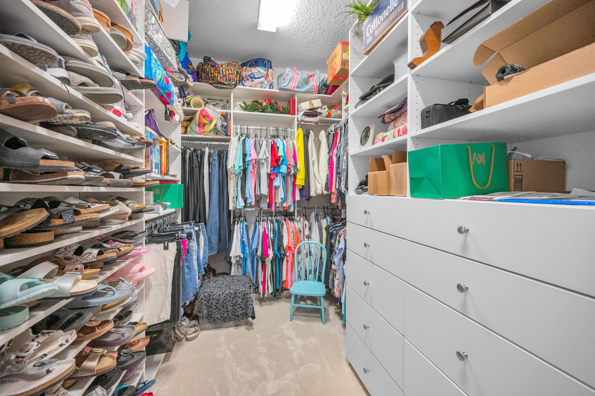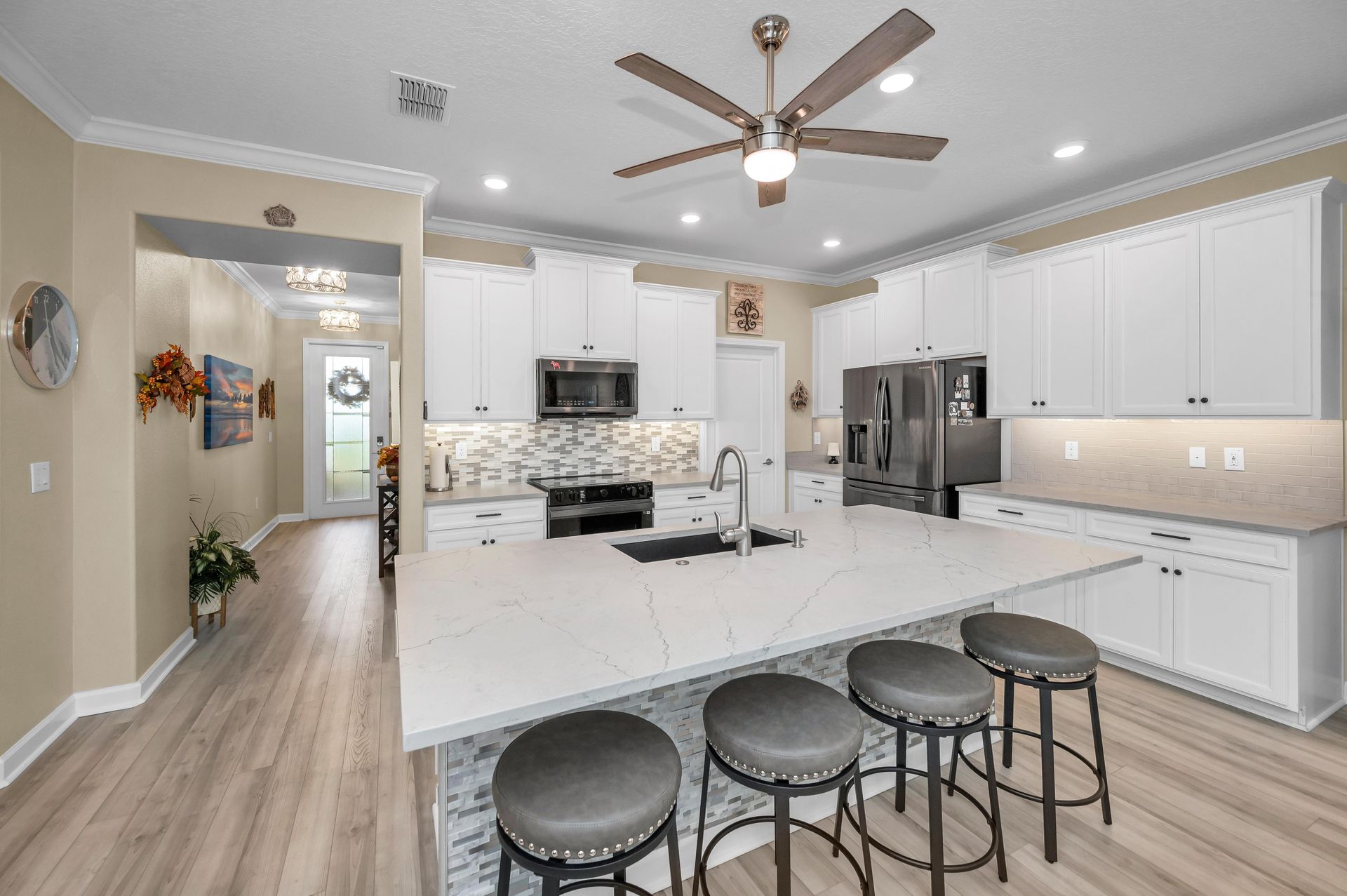 Exceptional 3 bedroom plus office/flex space with 2 1/2 bathrooms located in the heart of Medley at Mirada, the premier 55+ gated community in Pasco county designed specifically for an active and social lifestyle. Also included is access to Mirada’s breathtaking 15-acre Crystal Lagoon, featuring sandy beaches, a swim-up bar and year-round entertainment. As you step inside you are greeted with an open floorplan that provides comfort and functionality. The gourmet kitchen boasts leather granite countertops, elegant backsplash, a spacious island, premium appliances, large walk-in pantry with custom shelving and plenty of cabinet space. Flowing comfortably from the kitchen the dining and living room provides a welcoming space for daily living, cozy evenings or entertaining guests. The owner’s suite is light and bright and offers an oversized walk-in closet with a custom shelving and spa-like bath with new granite counter tops and linen closet. Secondary bedrooms are tucked away from the rest of the home and share an updated bathroom for privacy and convenience. A spacious laundry room with custom cabinetry and a door for added peace and quiet. Luxury Vinyl flooring is throughout the main areas of the home with carpet in the bedrooms for added comfort. Step outside to the screened lanai designed for relaxation featuring a built-in bar area and electric sun shade for those sunny afternoons. The enclosed backyard is ideal for gatherings with pavered patio area, firepit, sun awning and custom landscaping that is enclosed with new PVC fencing ideal for privacy and pets. Additional bonuses include a golf cart garage, whole-house water filtration and softener, plantation shutters, garage entry drop zone with custom cabinets, overhead garage storage shelving and epoxy-coated garage floor. HOA perks cover private landscape maintenance, exterior painting, high-speed internet, expansive cable package, and access to Medley’s private amenity center and the Crystal Lagoon.