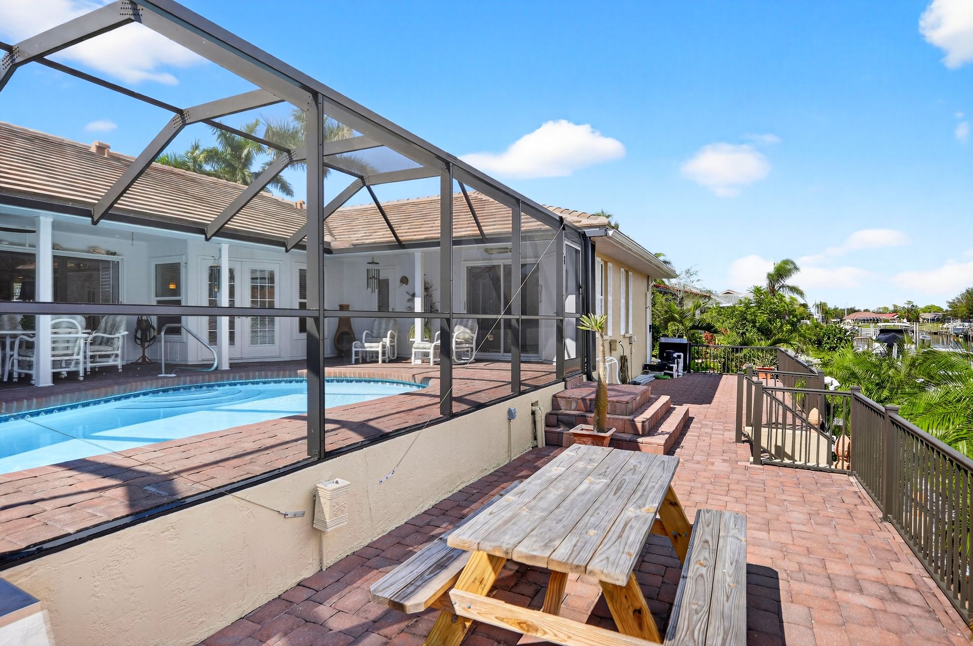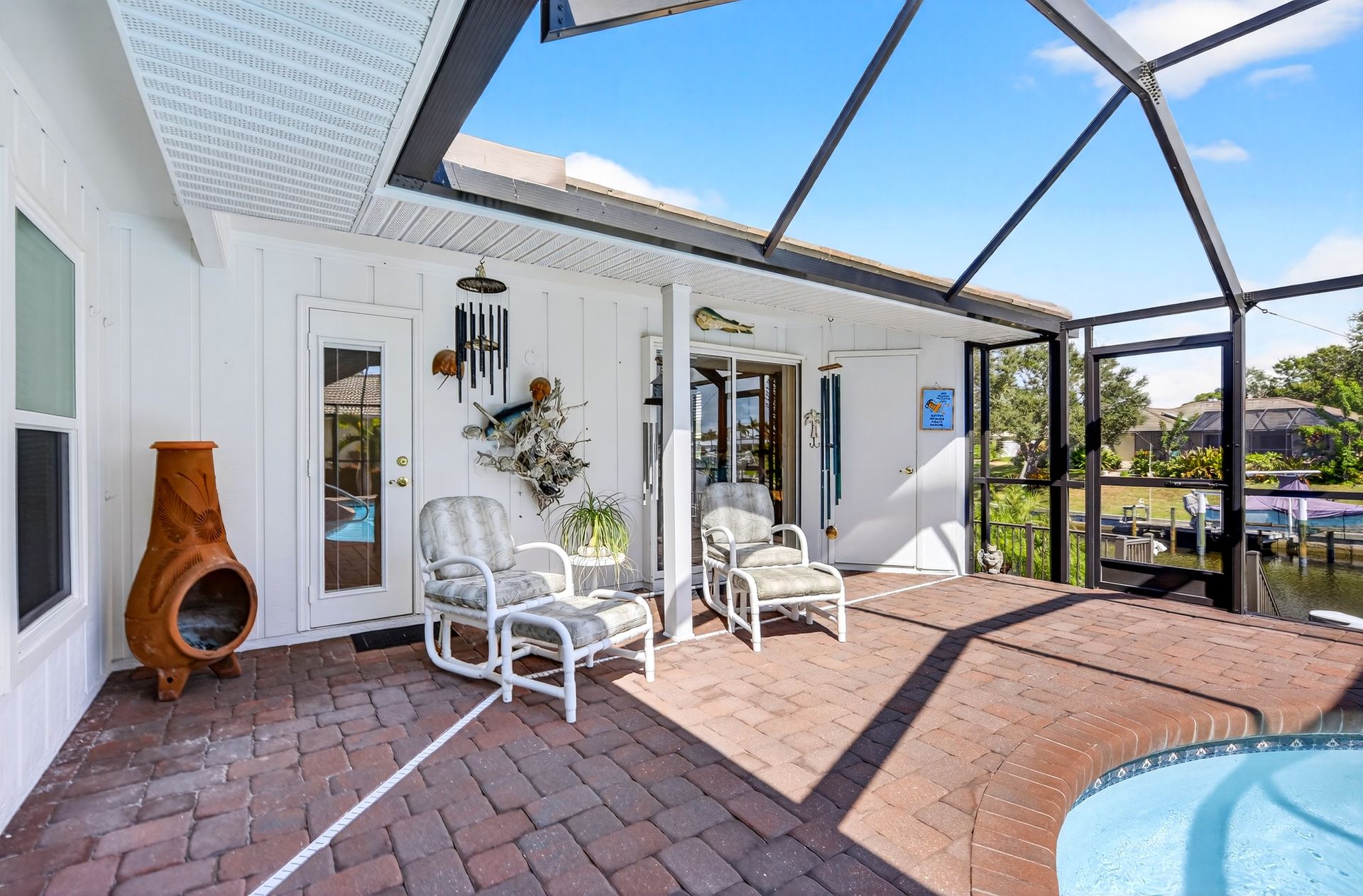 WATERFRONT PARADISE ON SALTWATER CANAL WITH ONE-BRIDGE ACCESS TO THE INTRACOASTAL—NEWER ROOF and HURRICANE IMPACT WINDOWS. Live the ultimate boating lifestyle in Englewood Isles, minutes to Lemon Bay and the Gulf. Your private backyard oasis features two patios, an extended dock, a 15,000-lb lift (newer motor 2024) plus 9,000-lb davits—ideal for powerboats, jet skis, or kayaks. Located in X Flood Zone for added peace of mind. Enjoy a Fibre Tech freshwater heated pool with newer pump and heater (2024) overlooking the canal. Recent upgrades include: newly installed roof, fascia/soffits; aluminum lanai; circular paver drive with conduit for future landscape lighting; updated 200-amp panel hardwired for a generator (2024); and an impact-rated garage door (2025).