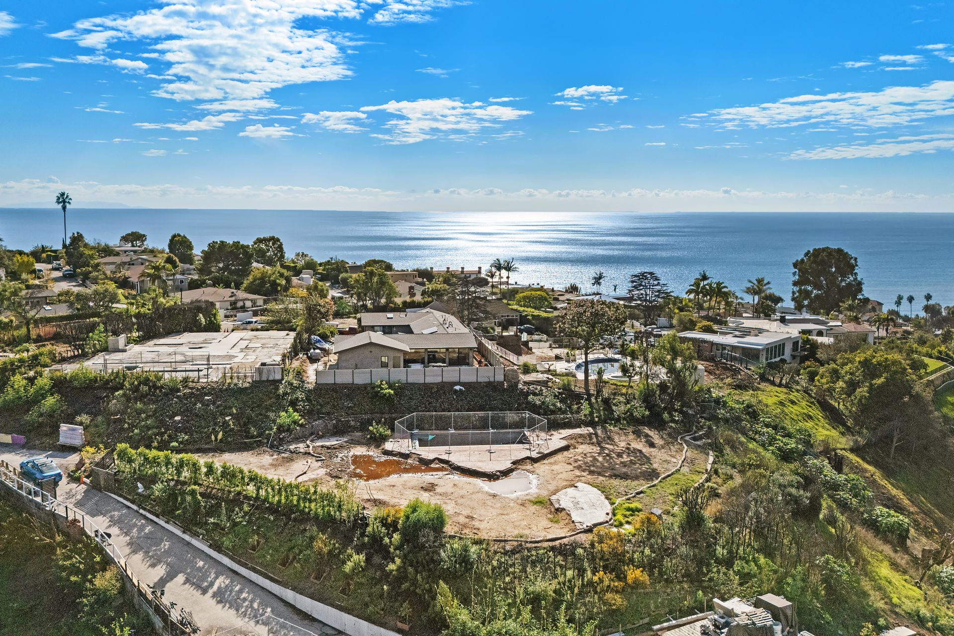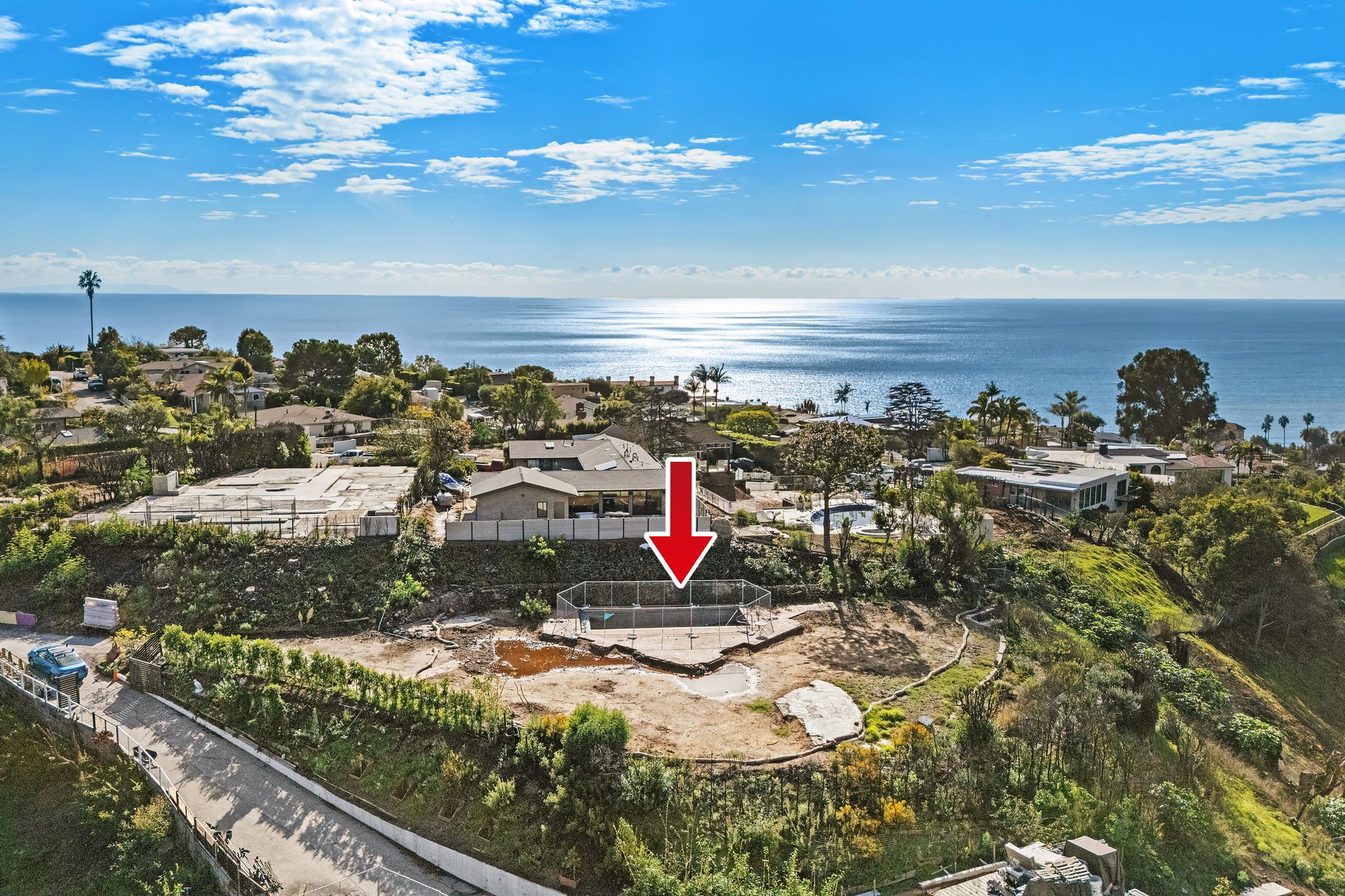 A rare opportunity to own an estate-sized lot perched on a half-acre promontory at the crest of the coveted Castellammare neighborhood. This unique sanctuary offers panoramic mountain views and glimpses of the ocean, all just minutes from the town center and a short distance to the beach. The property has been fully cleared (Phase 1 & 2) by the Army Corps of Engineers.