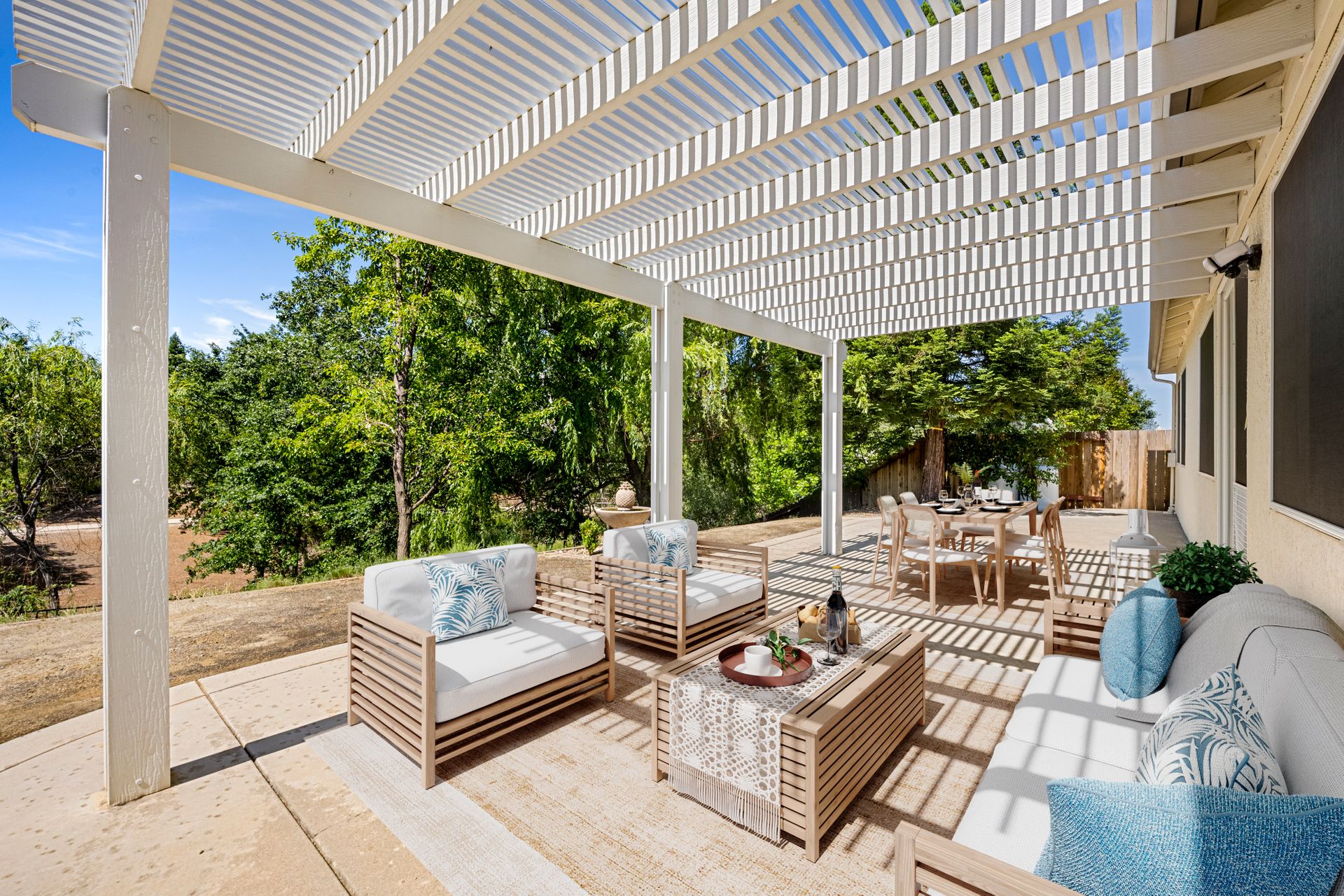 PRIME LOCATION in NORTHVIEW – Enjoy a peaceful cul-du-sac with off road privacy that backs to the community walking trail and park. This FABULOUS, hard-to-find ONE-STORY home boasting approximately 2,180 square feet, four bedrooms, and two and one-half baths on an approximately 0.28 acre parcel offers an incredible floorplan with options. The primary suite features a walk-in closet with built-ins and an office retreat with French doors to the front exterior. The beautiful kitchen features corian countertops, wood floors, a pantry closet, and newer appliances. From the kitchen enjoy an inviting family room with a fireplace and a custom built-in entertainment center. The formal living room can provide an ideal second office or fifth bedroom with modifications. The primary suite and retreat are private to the secondary bedrooms and bath. The laundry room has a sink, cabinetry and includes the washer and dryer. The garage has epoxy floors, built-in cabinets, and the driveway has been extended for additional parking. There is a whole house fan. Enjoy views over greenbelt and entertain under the rear yard pergola with the soothing sounds of your fountain. Don't miss the large side yard and the gate in rear providing access to the walking trail and park. NO HOA OR MELLO ROOS! Conveniently located!