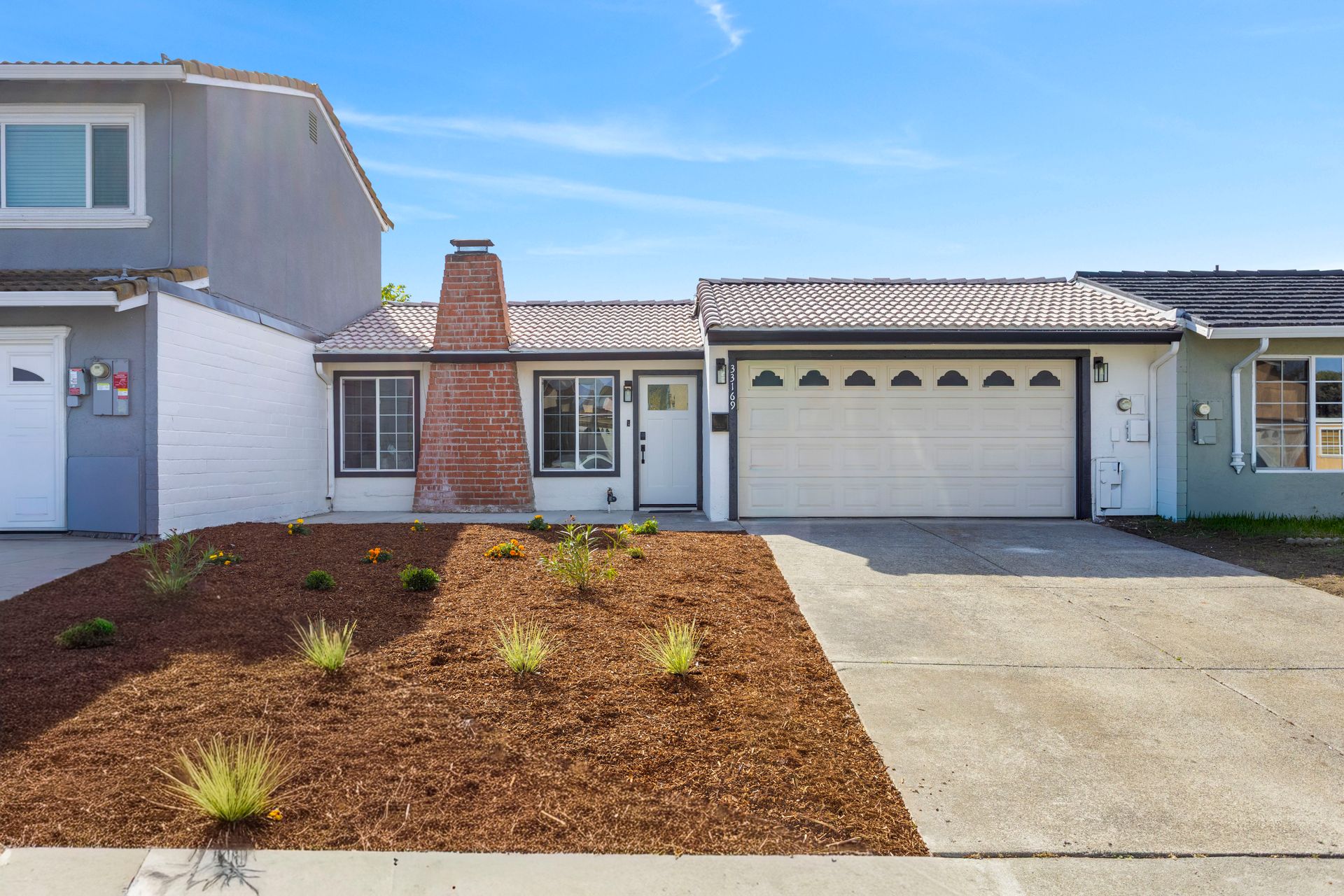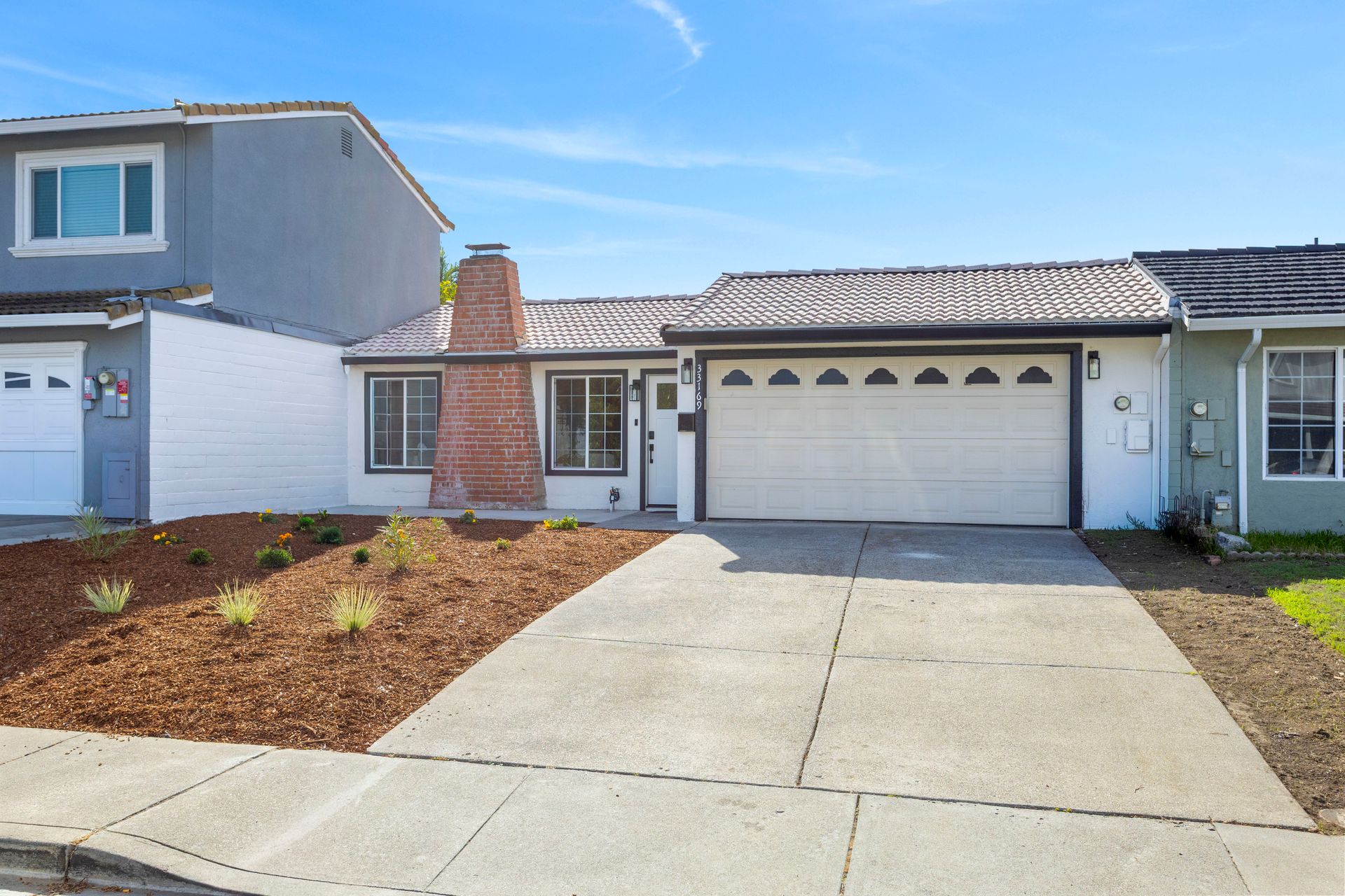 Experience modern comfort and effortless living in this beautifully renovated, move-in-ready attached NE facing single-family home. Designed with clean lines, a neutral color palette, and abundant natural light, this residence offers a thoughtfully curated open-concept layout ideal for today’s lifestyle. The spacious living room features a classic brick fireplace and large windows, flowing seamlessly into the dining area—perfect for entertaining. The gourmet kitchen showcases stainless steel appliances, sleek white cabinetry, quartz countertops, and a generous breakfast bar. A dedicated laundry room includes a high-efficiency washer and dryer with additional storage. The primary suite serves as a peaceful retreat with a walk-in closet and sliding glass doors opening to the private backyard. A second bedroom offers ample closet space and natural light. The updated bathroom features a glass-enclosed shower with custom tile and a modern vanity. Enjoy indoor-outdoor living with sliding doors leading to a private enclosed patio and low-maintenance landscaping. Conveniently located near parks, trails, shopping, dining, and major commute routes including I-880 and Hwy 84, and within the school boundaries of Warwick Elementary School, Thornton Middle School, and American High School.