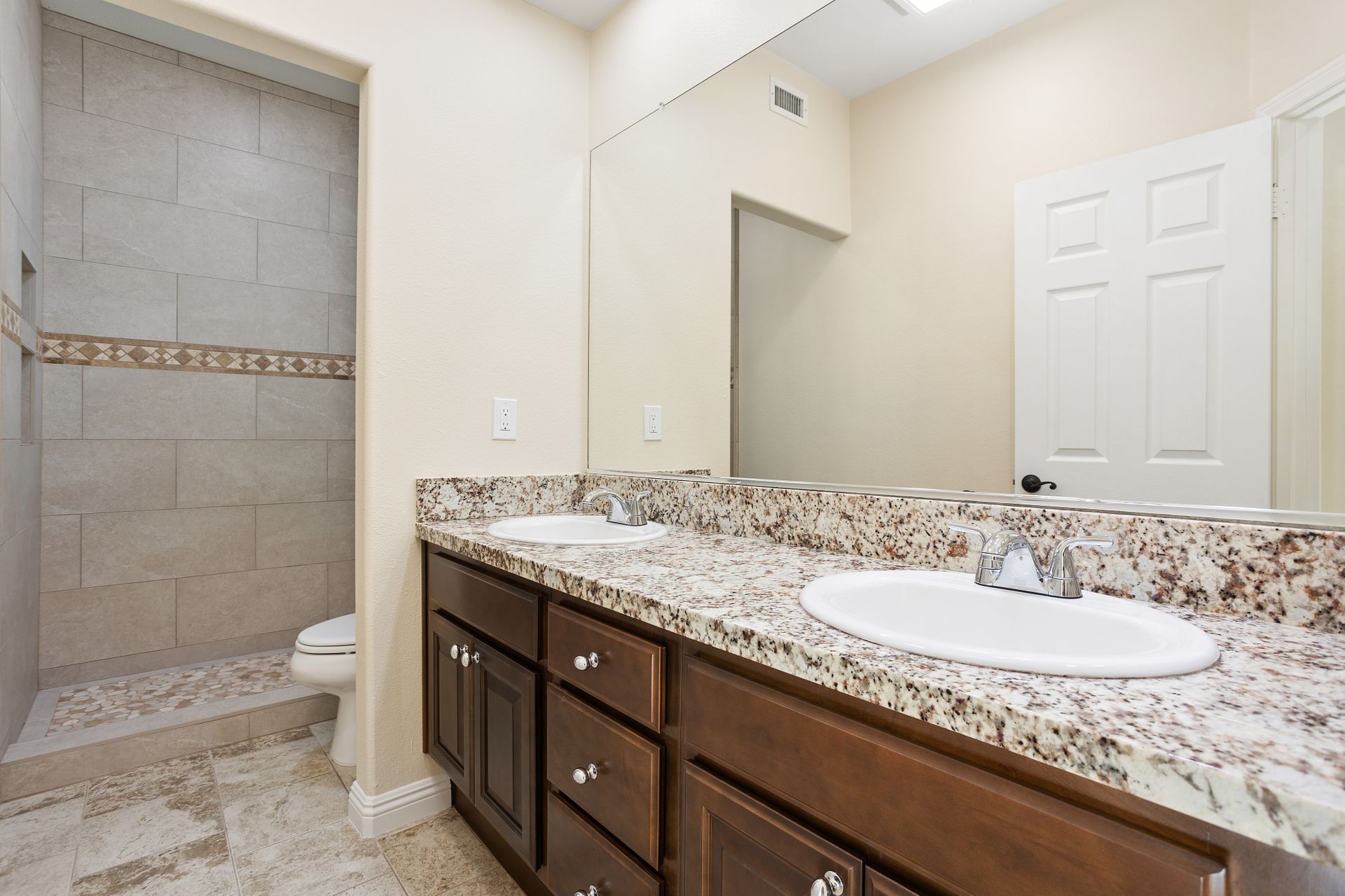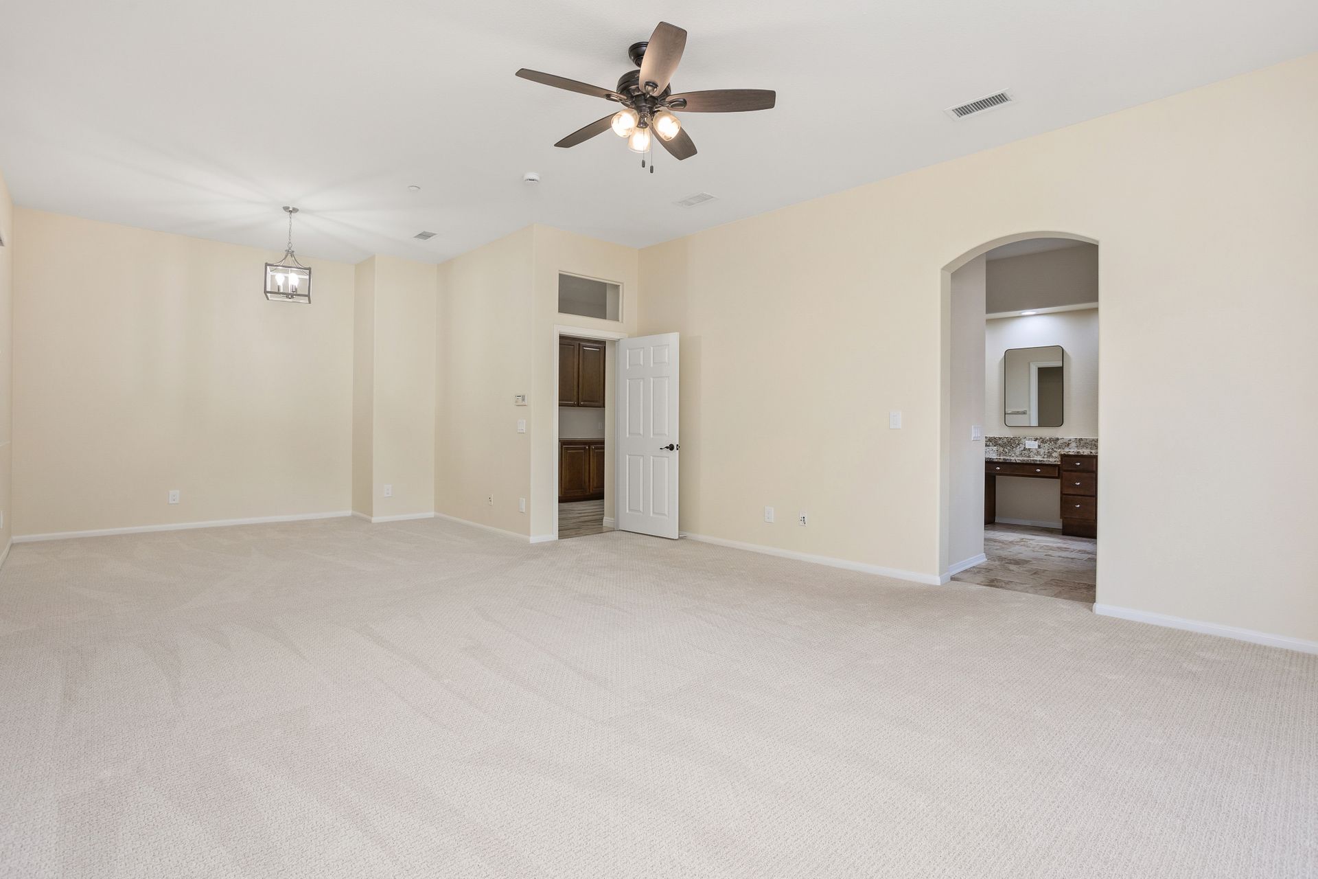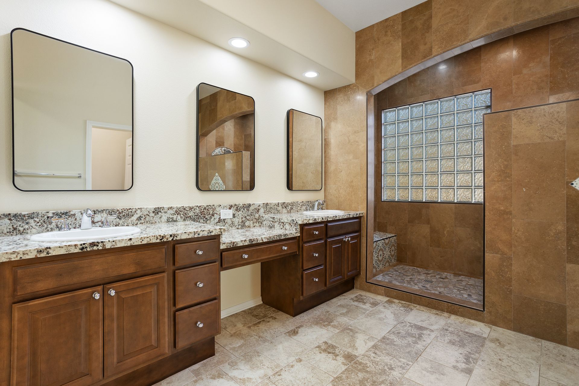 This stunning single-level home with a detached casita is move-in ready and a rare find, with the added bonus of no HOA. Located in Sycamore Ranch at the end of a peaceful cul-de-sac on an acre lot, the property features a welcoming courtyard entrance that leads to a spacious 2,600 square foot main house with three bedrooms and two and one-half bathrooms including fully remodeled bathrooms with elegant travertine and stone finishes.