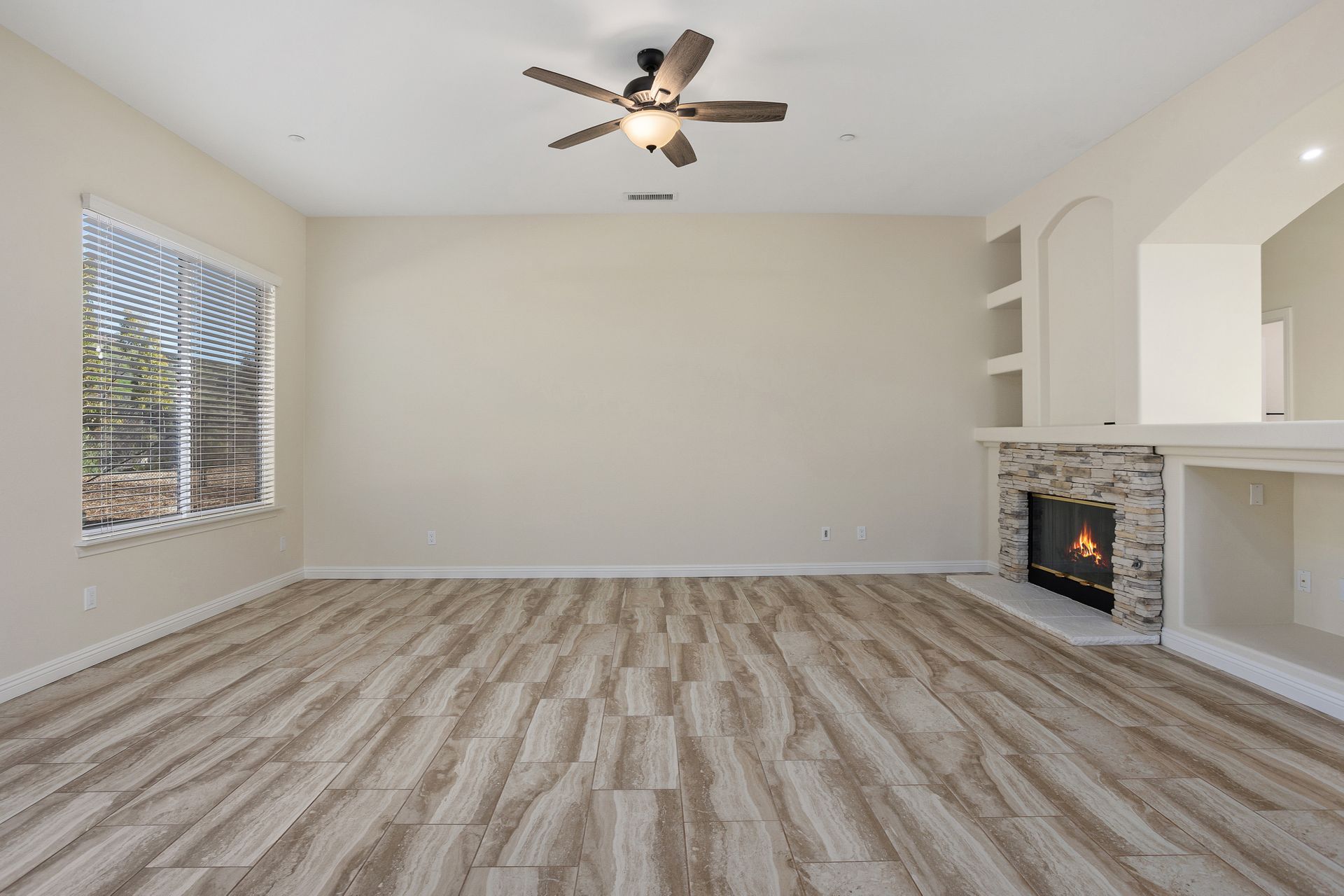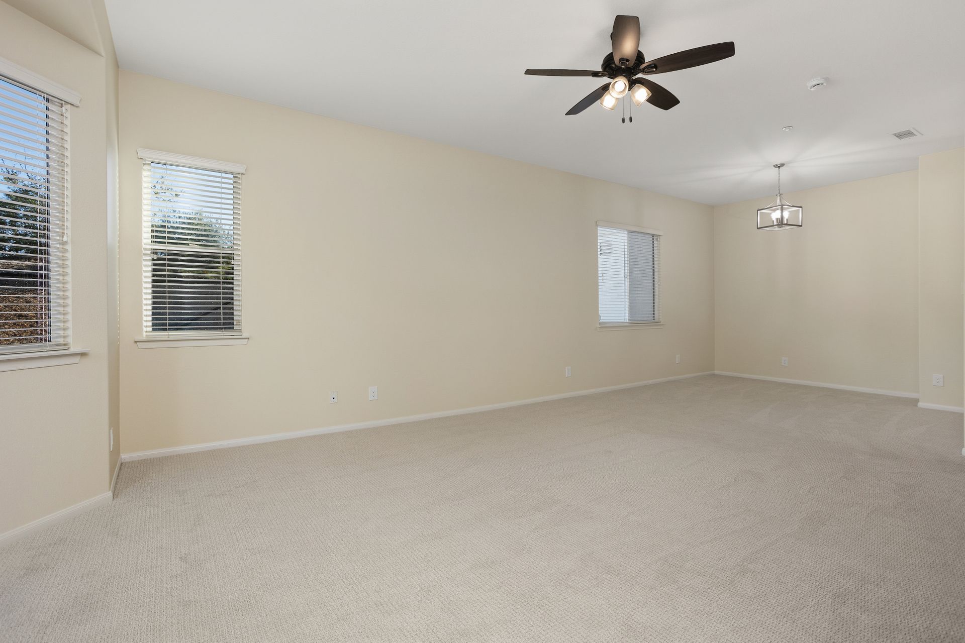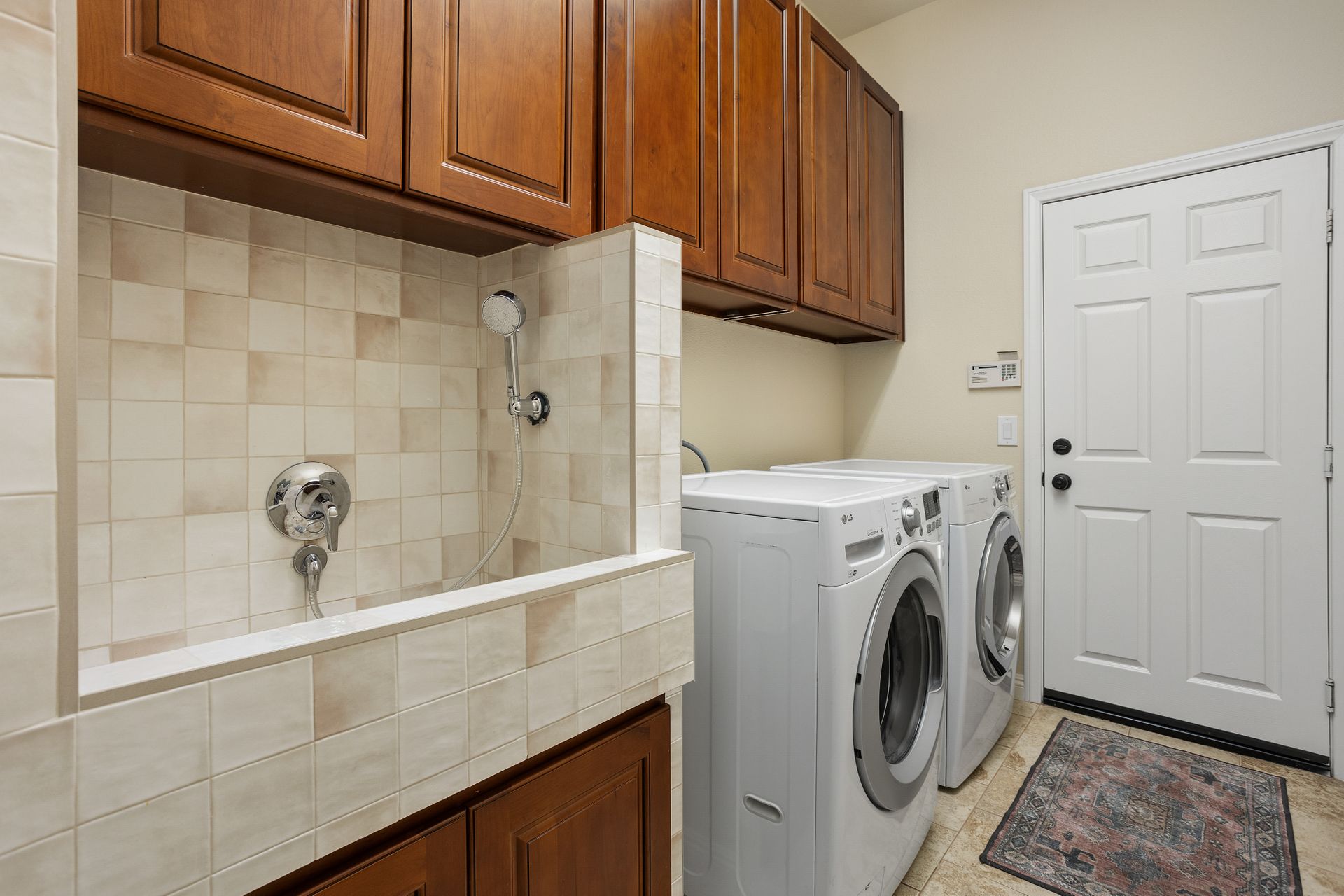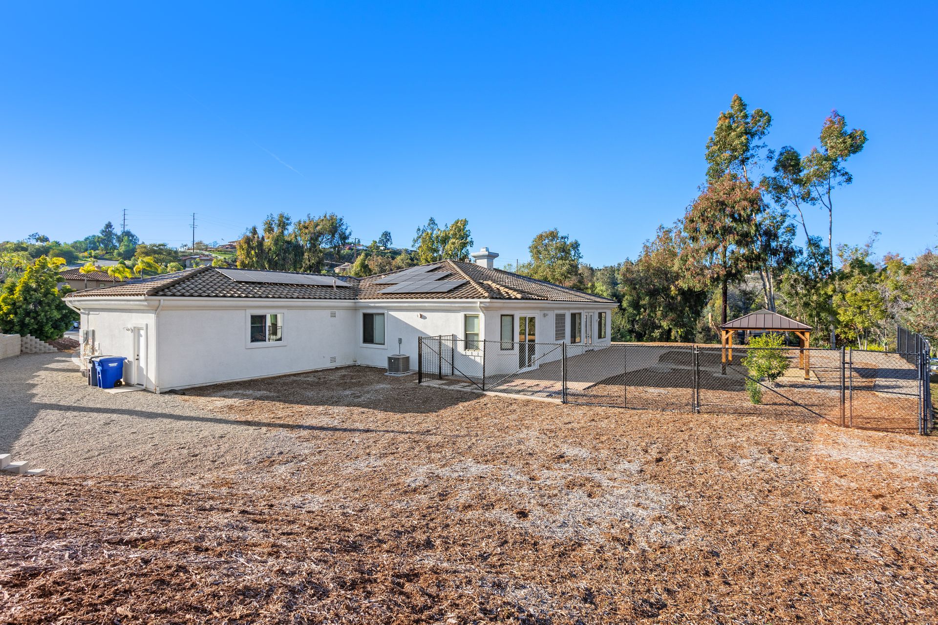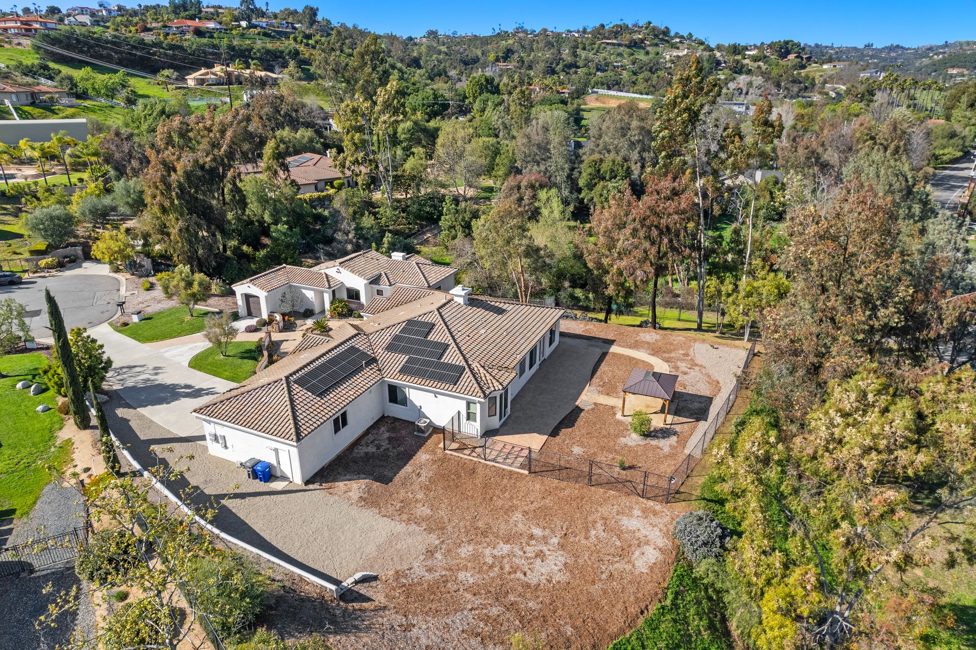 Practical features include a three-car garage, a dedicated dog bath in the laundry room, a long concrete driveway with extra RV parking, and a paid-in-full solar system. Enjoy a whole-house water filtration system and on-demand hot water for added convenience.