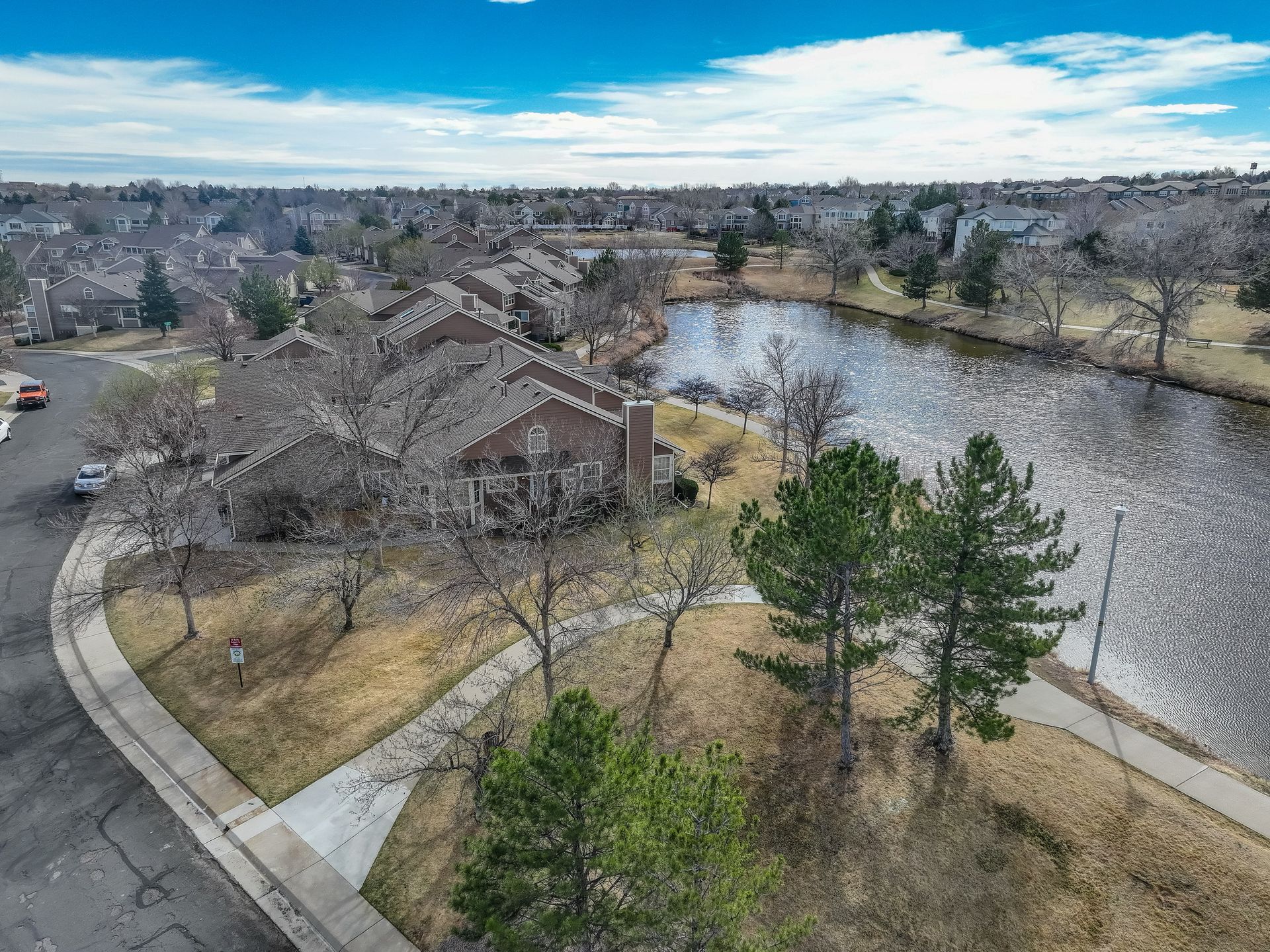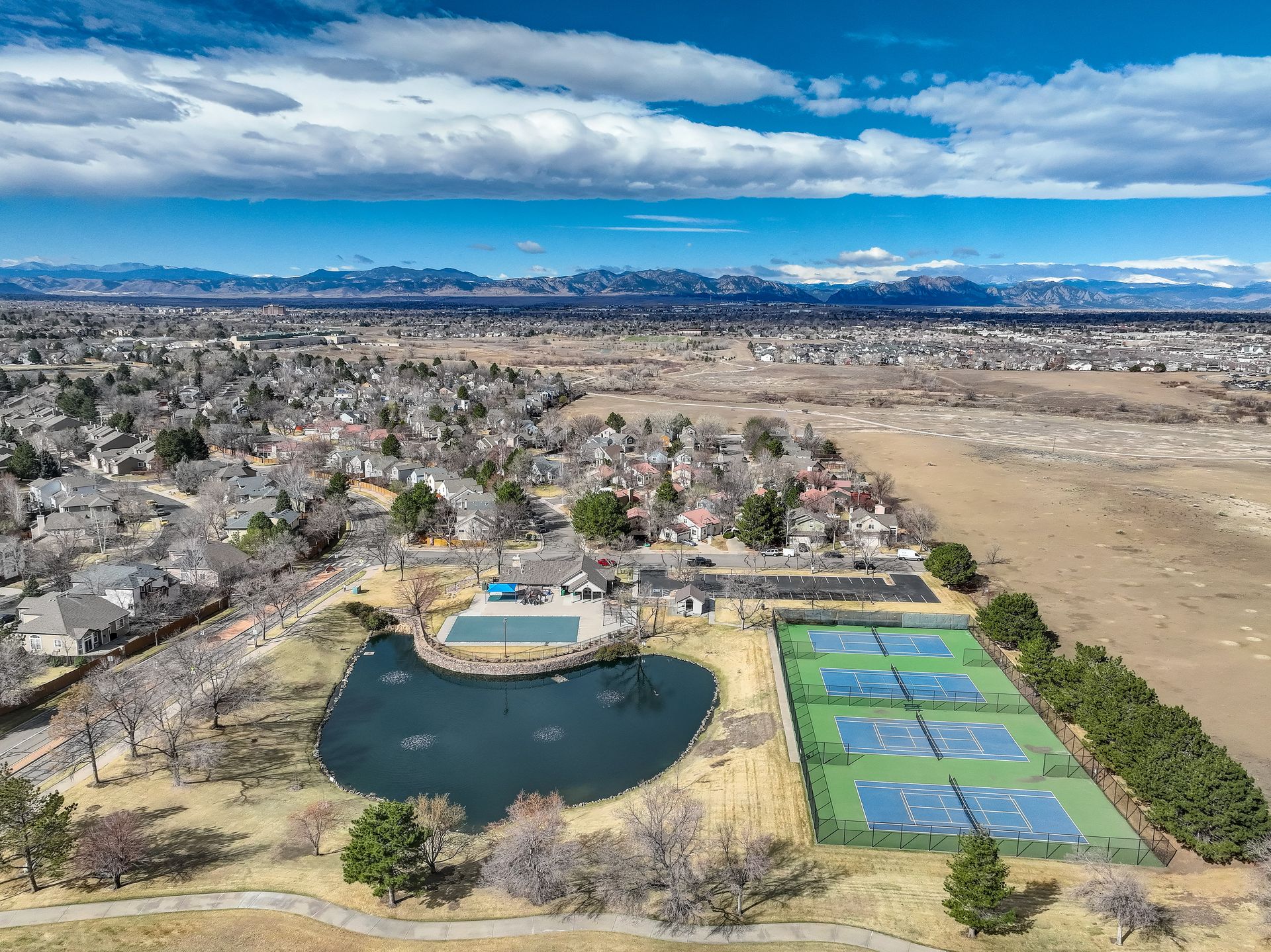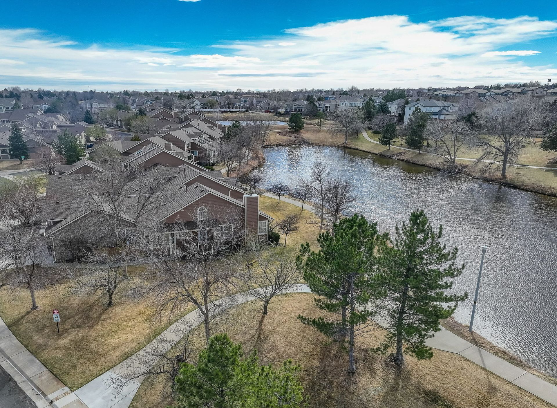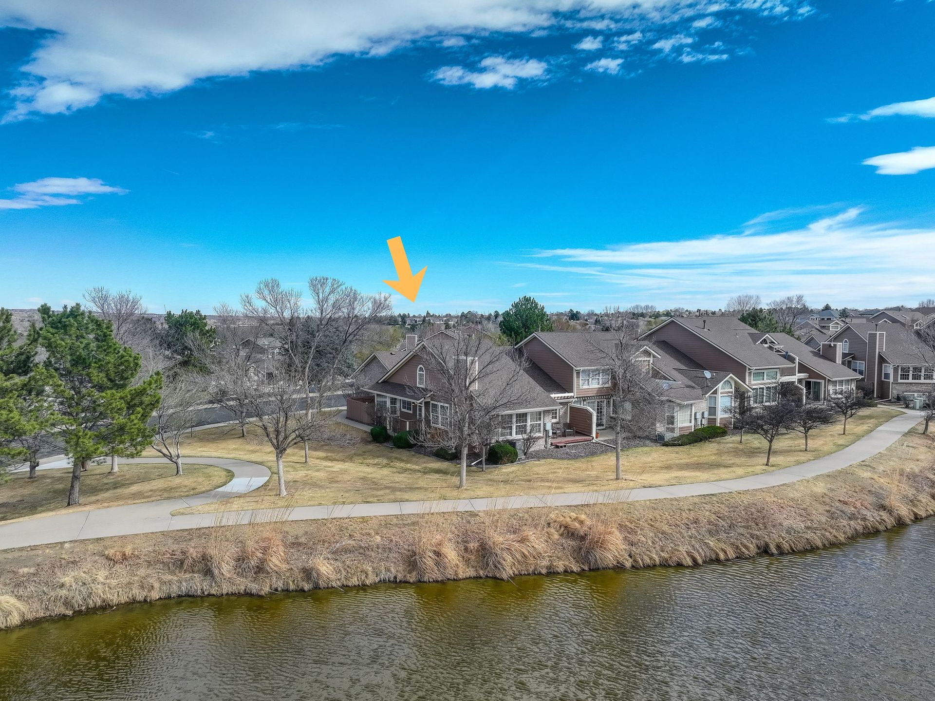 Incredible location! This beautiful end-unit townhome is just steps from a peaceful pond and offers stunning mountain views. Step inside to a spacious living room with soaring vaulted ceilings, a cozy fireplace, and an abundance of natural light. Solid wood doors add a touch of quality throughout, and brand-new carpeting has just been installed. The primary bedroom features vaulted ceilings and an updated en-suite bath with granite countertops, new sinks and fixtures, a sliding barn door, and new shower and floor tile. The secondary bedroom offers flexibility as a guest room or home office. You’ll love preparing meals in the spacious kitchen, complete with granite countertops, hardwood floors, pull-out shelves, a separate bank of glass-front cabinets, and a water filtration system. All the appliances are high-quality and stainless steel, including a newer Bosch dishwasher and range hood. The sunny kitchen nook is the perfect spot to relax, dine, and take in the mountain views. Enjoy two outdoor living spaces: a large, private deck just off the kitchen, and another with a retractable awning overlooking the pond—both offering beautiful mountain views. A separate mudroom leads to the insulated, finished two-car garage. The community features a clubhouse, tennis courts, and an extensive network of trails winding past tranquil ponds and showcasing breathtaking mountain views.
