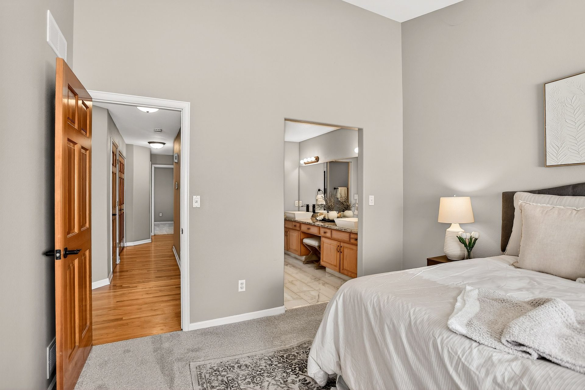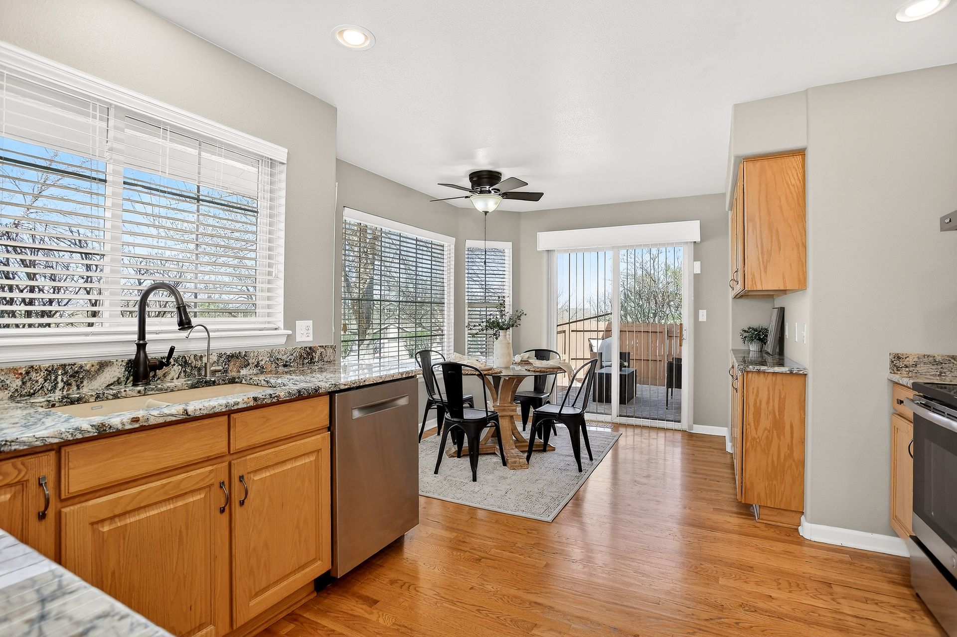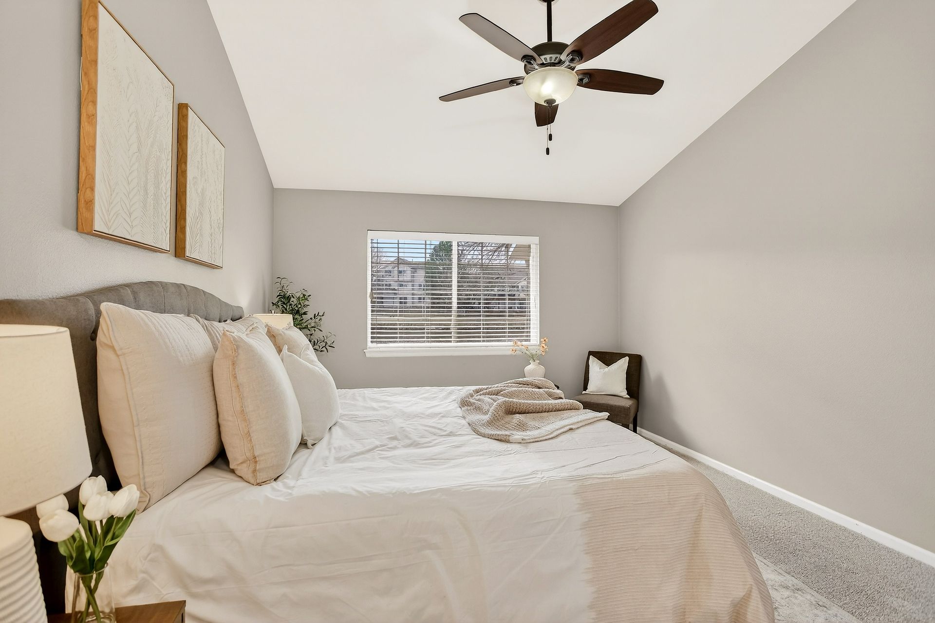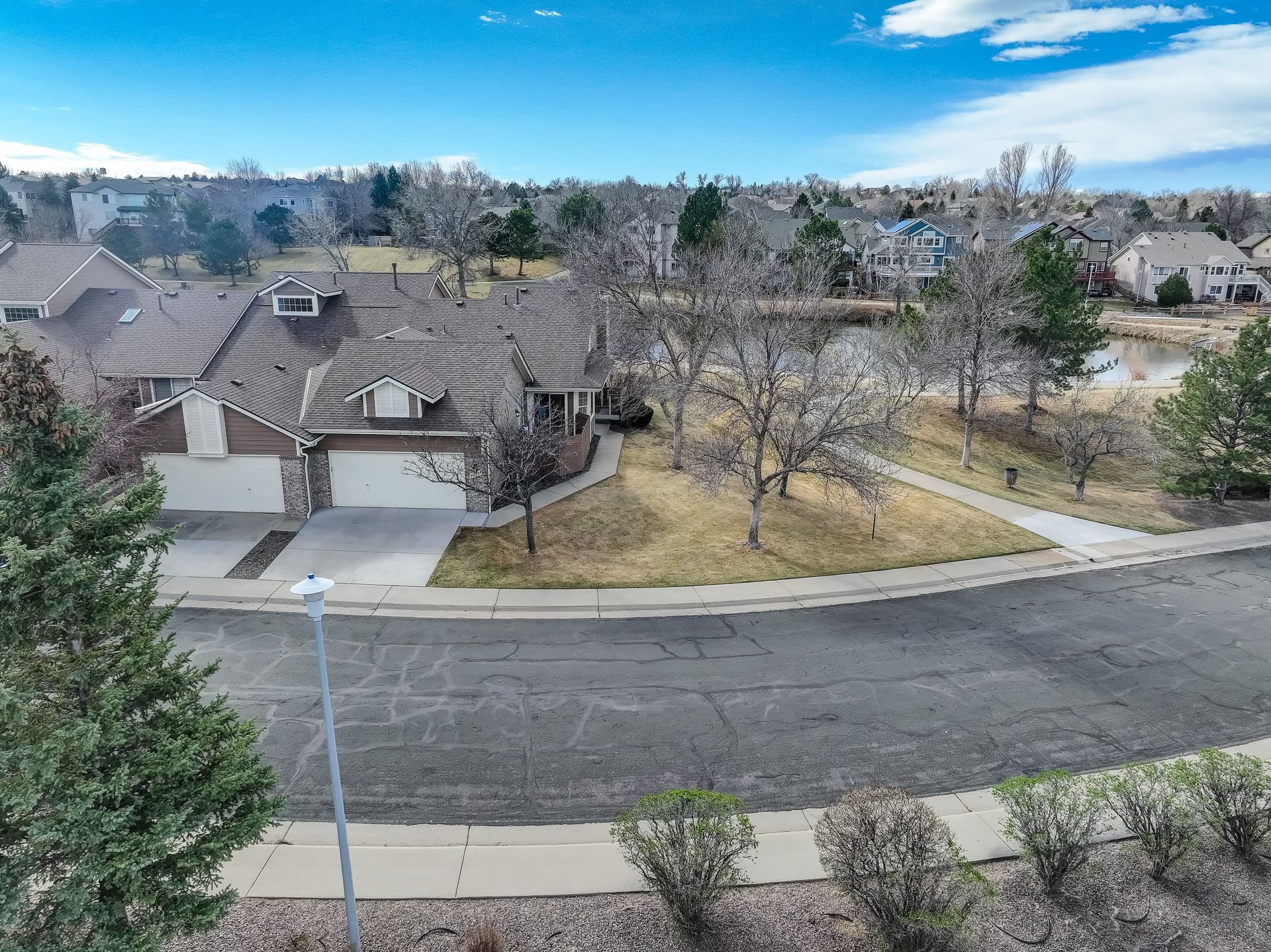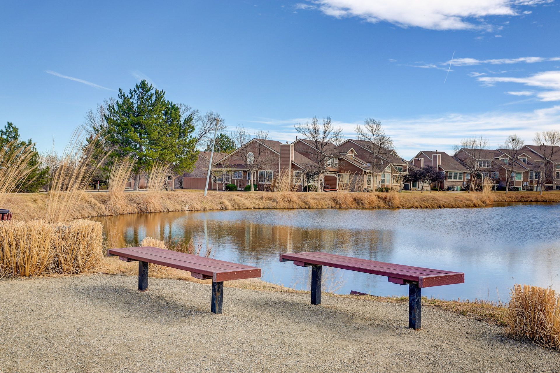Incredible location! This beautiful end-unit townhome is just steps from a peaceful pond and offers stunning mountain views. Step inside to a spacious living room with soaring vaulted ceilings, a cozy fireplace, and an abundance of natural light. Solid wood doors add a touch of quality throughout, and brand-new carpeting has just been installed. The primary bedroom features vaulted ceilings and an updated en-suite bath with granite countertops, new sinks and fixtures, a sliding barn door, and new shower and floor tile. The secondary bedroom offers flexibility as a guest room or home office. You’ll love preparing meals in the spacious kitchen, complete with granite countertops, hardwood floors, pull-out shelves, a separate bank of glass-front cabinets, and a water filtration system. All the appliances are high-quality and stainless steel, including a newer Bosch dishwasher and range hood. The sunny kitchen nook is the perfect spot to relax, dine, and take in the mountain views. Enjoy two outdoor living spaces: a large, private deck just off the kitchen, and another with a retractable awning overlooking the pond—both offering beautiful mountain views. A separate mudroom leads to the insulated, finished two-car garage. The community features a clubhouse, tennis courts, and an extensive network of trails winding past tranquil ponds and showcasing breathtaking mountain views.