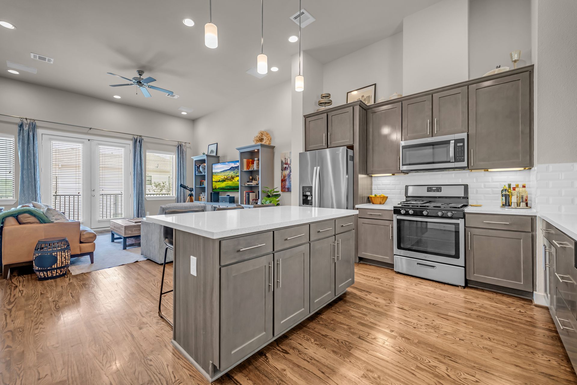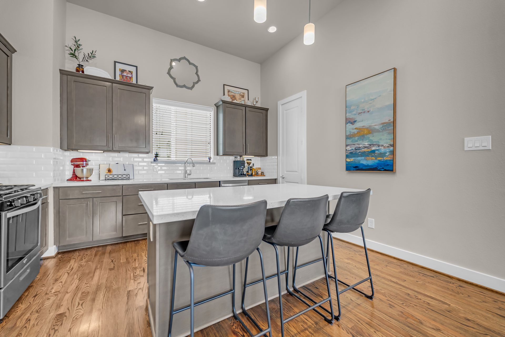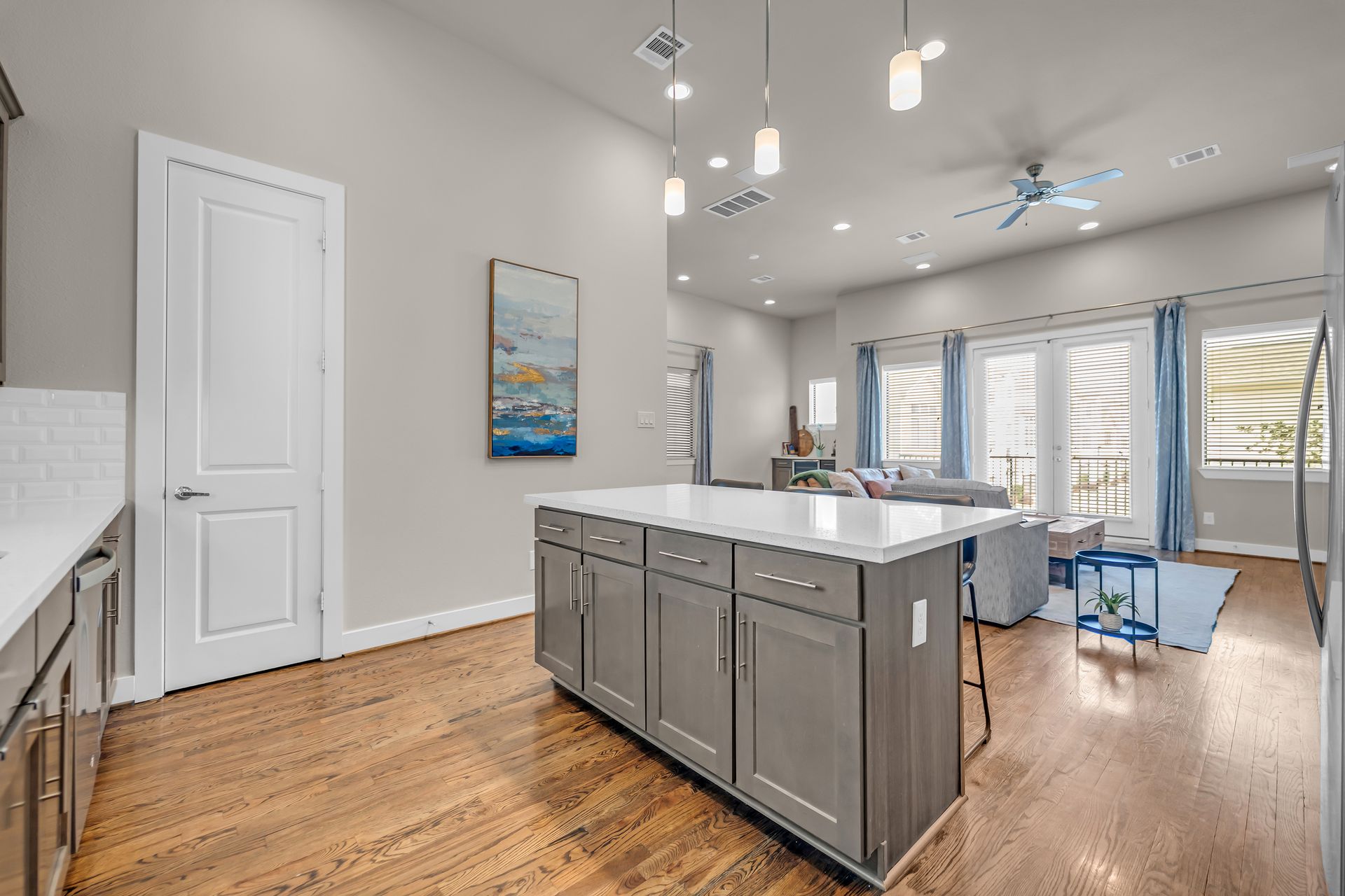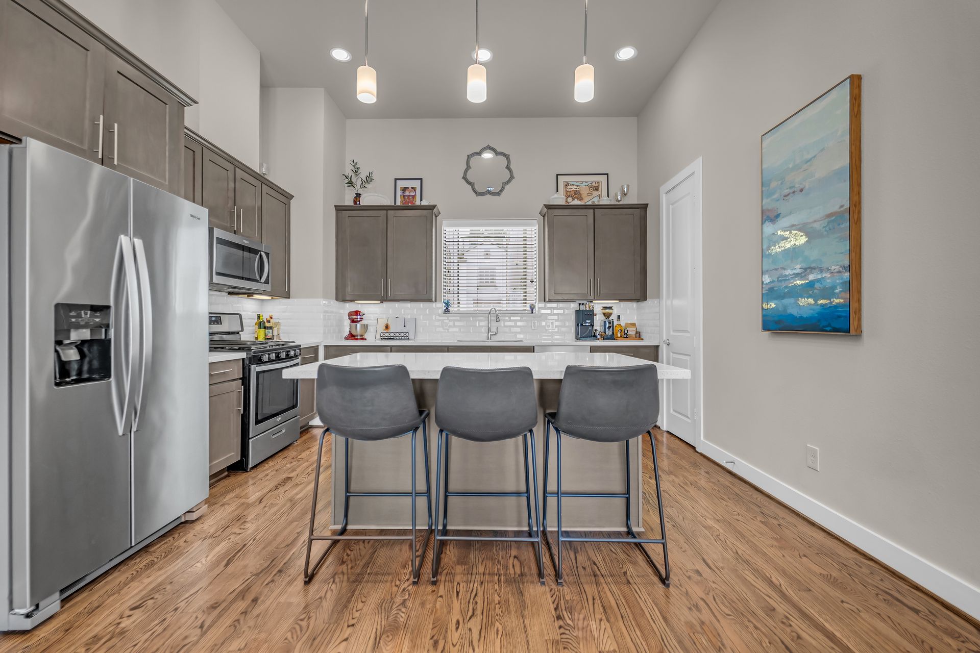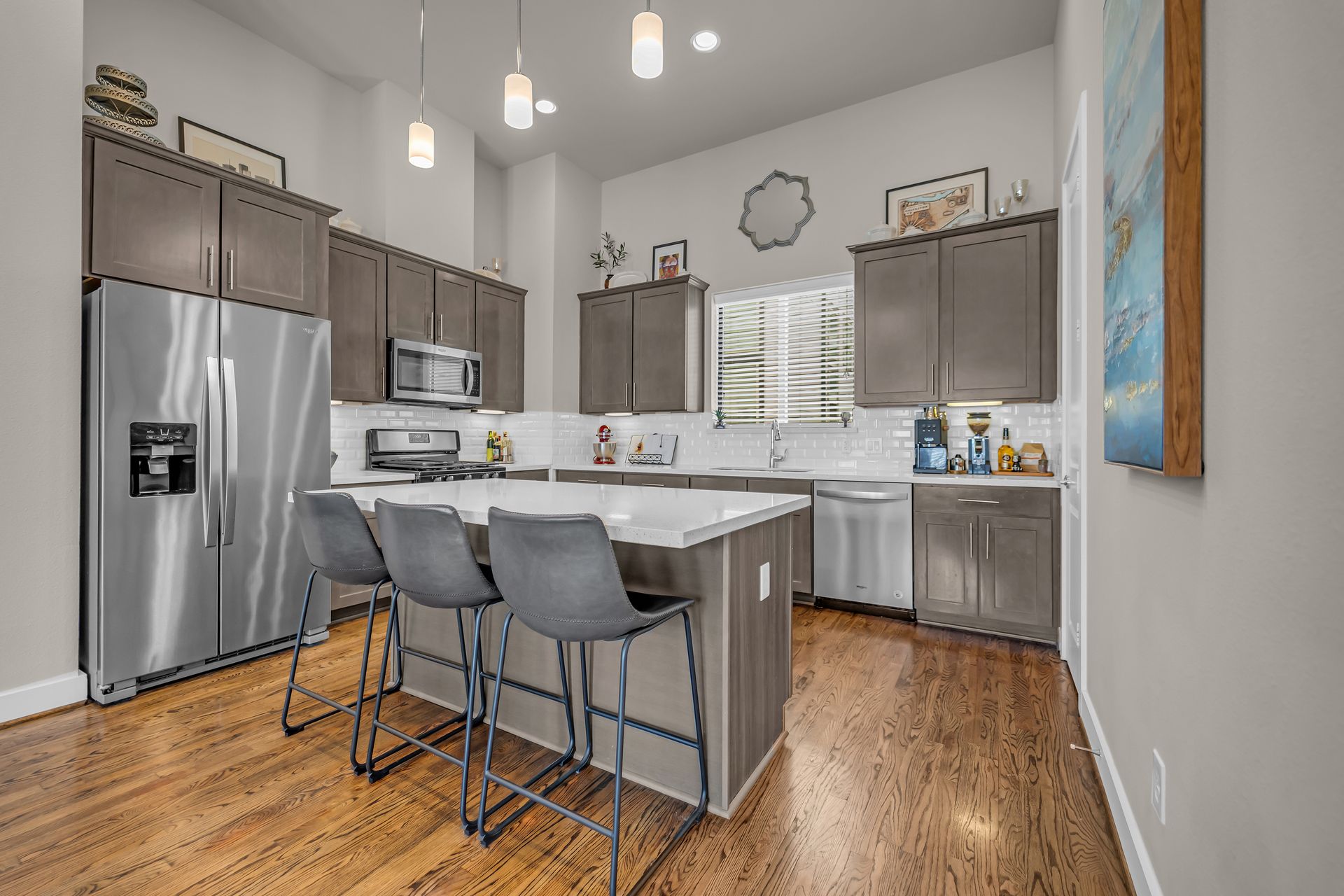Welcome to 3411 Kensington Yellow Place, a beautifully maintained three-bed, three-and-a-half-bath home in Kensington Green, positioned between Timbergrove and the Heights. Featuring the premium City Choice Alice floor plan, this home offers a functional three-story layout with each bedroom enjoying its own en-suite bath. The first-floor suite includes access to a private outdoor space, perfect for guests or a home office. The open-concept second floor showcases soaring 12-foot ceilings, abundant natural light, wood flooring, and a large kitchen with quartz countertops, 42-inch cabinetry, ample storage and workspace, overlooking the living area with windows and French doors leading to an oversized balcony, perfect for entertaining. The third-floor primary suite features an extended tray ceiling, a massive walk-in shower, dual vanities, and a spacious walk-in closet. Enjoy quick access to the Heights, Washington Ave dining, White Oak Bayou trails, I-10, Memorial Park, Downtown, and the Energy Corridor.