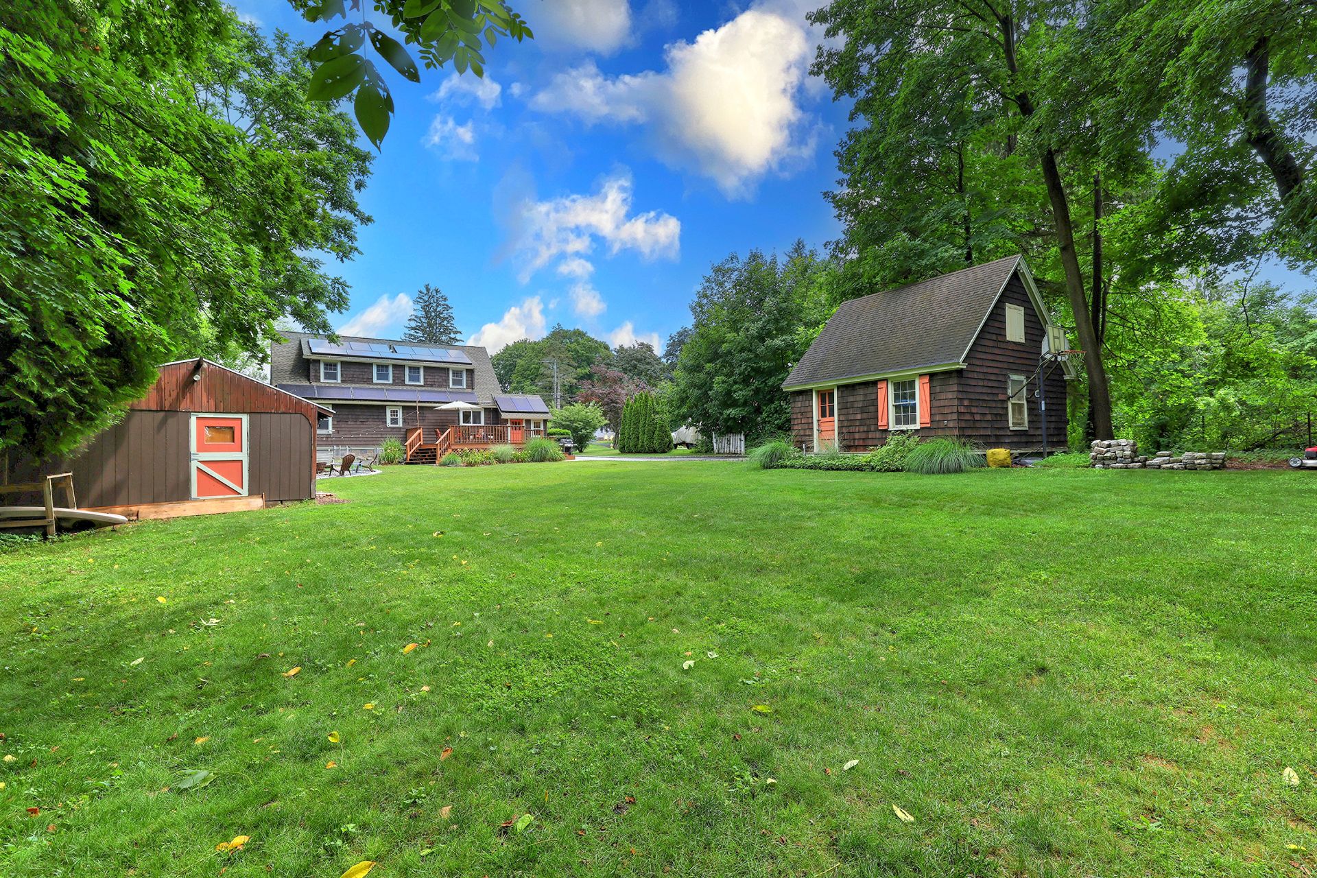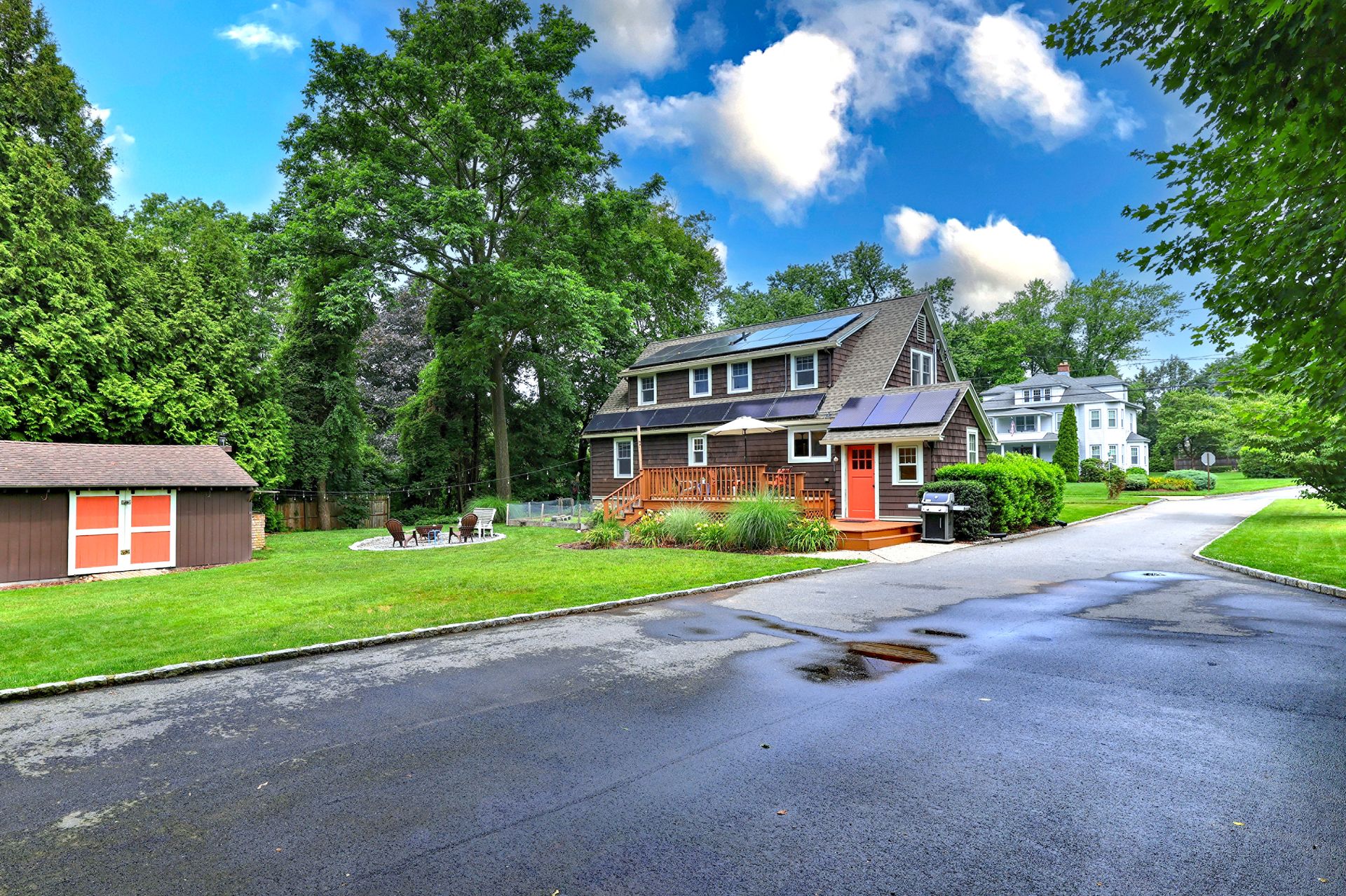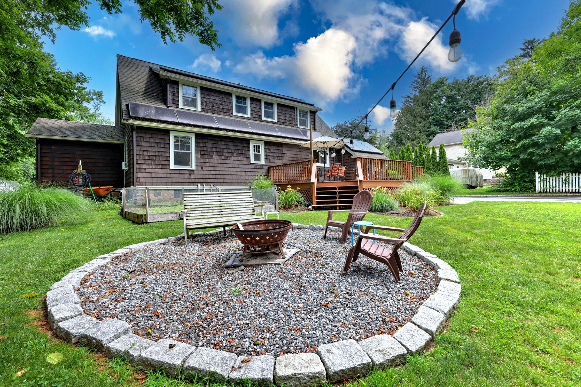 Once upon a time, there was a home that looked like it was plucked straight from the pages of a storybook. With its gingerbread charm and inviting warmth, this house wasn't just a place to live-it was a place to dream. Inside, the story unfolds with beautiful hardwood floors that guide you through a welcoming living room, where a fireplace takes center stage, hinting at cozy evenings to come. Just beyond, a dining room with a glowing corner built-in invites you to gather with loved ones. The kitchen, accented with granite countertops, is ready for everything from morning coffee to holiday baking. On the main level, there's also a bedroom and a full bathroom, as well as a dedicated office with built-ins-just right for working from home or curling up with your favorite book. Laundry is conveniently located on the first floor, making everyday life just a bit easier. Upstairs, you'll find two spacious bedrooms with personality and charm, plus another full bath tucked between them. And down below, the partially finished lower level offers a blank canvas-waiting for its next chapter. But the magic doesn't stop inside. Step out back to the large, flat yard. There's a large deck for summer nights, a garden area, and a fire pit. Add a detached two-car garage, a woodshed, and a lawn equipment shed, and you've got space for everything you need. Oh-and one more thing. The home comes with solar panels, helping you harness the sun while writing your own happily ever after.