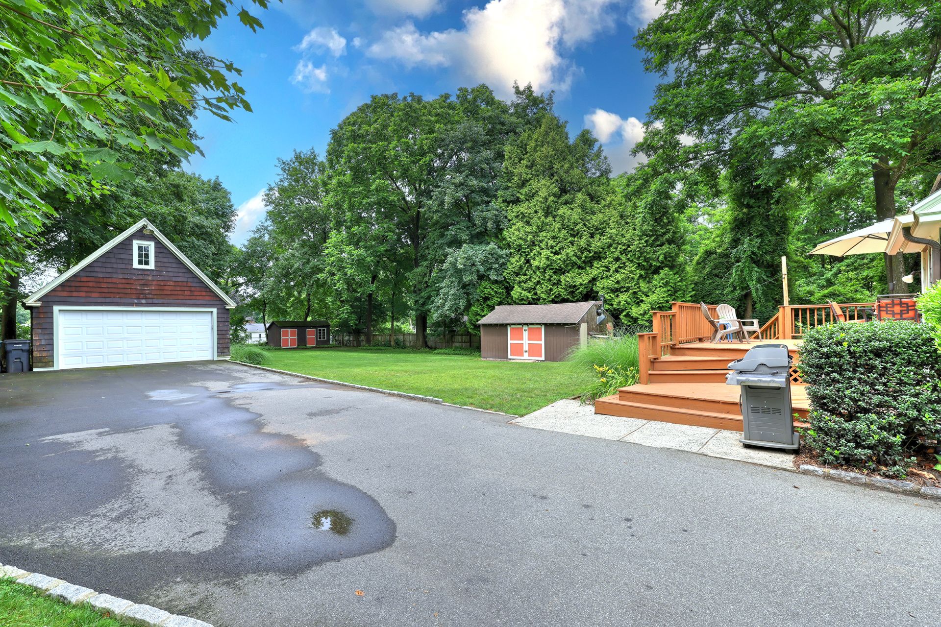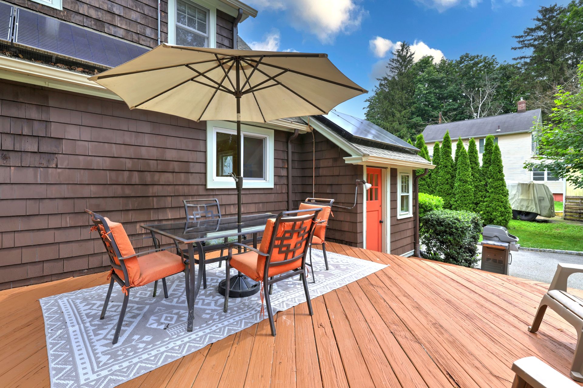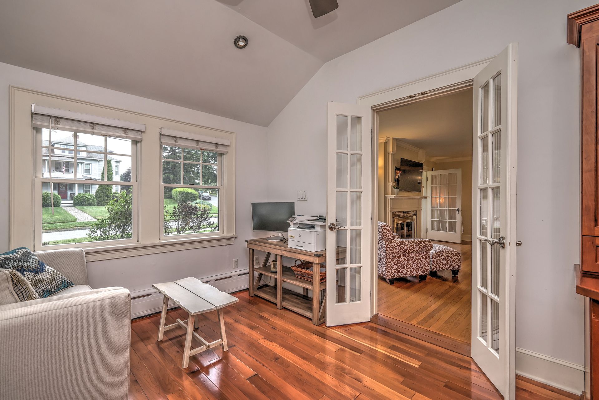 Once upon a time, there was a home that looked like it was plucked straight from the pages of a storybook. With its gingerbread charm and inviting warmth, this house wasn't just a place to live-it was a place to dream. Inside, the story unfolds with beautiful hardwood floors that guide you through a welcoming living room, where a fireplace takes center stage, hinting at cozy evenings to come. Just beyond, a dining room with a glowing corner built-in invites you to gather with loved ones. The kitchen, accented with granite countertops, is ready for everything from morning coffee to holiday baking. On the main level, there's also a bedroom and a full bathroom, as well as a dedicated office with built-ins-just right for working from home or curling up with your favorite book. Laundry is conveniently located on the first floor, making everyday life just a bit easier. Upstairs, you'll find two spacious bedrooms with personality and charm, plus another full bath tucked between them. And down below, the partially finished lower level offers a blank canvas-waiting for its next chapter. But the magic doesn't stop inside. Step out back to the large, flat yard. There's a large deck for summer nights, a garden area, and a fire pit. Add a detached two-car garage, a woodshed, and a lawn equipment shed, and you've got space for everything you need. Oh-and one more thing. The home comes with solar panels, helping you harness the sun while writing your own happily ever after.