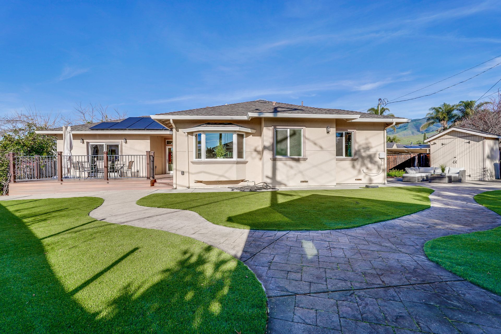 Welcome to this stunning 2016-Rebuilt Single-level residence situated on 9,380 SF cul-de-sac lot in Fremont Warm Springs area. 2,669 SF Living Space, this bright and airy home features soaring 9’ Ceilings, Skylights, 5-Bedroom, 3.5-Bath layout—including Dual Primary suites perfect for multi-generational living, plus a study/office, a separate laundry room and a private backyard studio.
