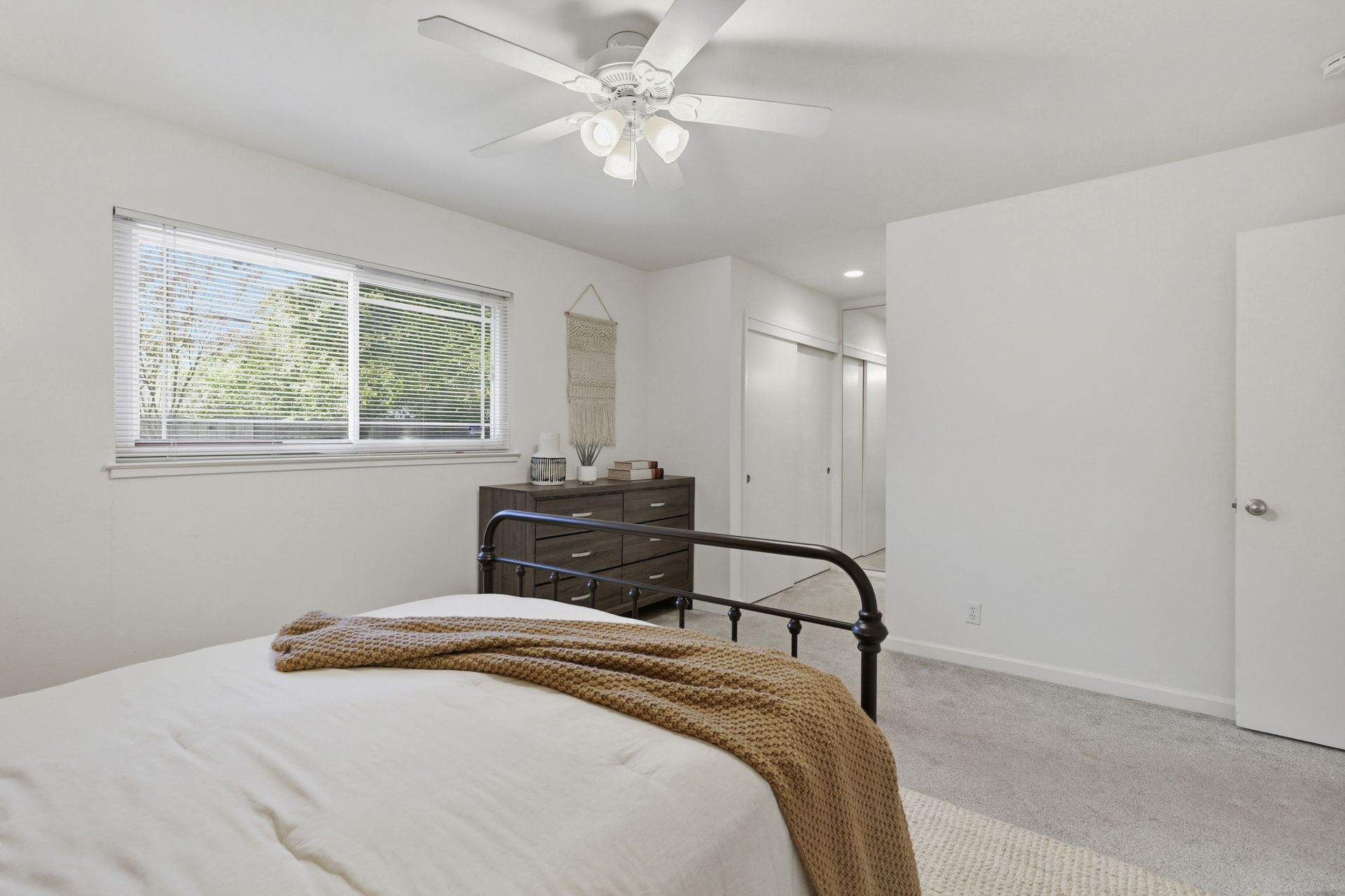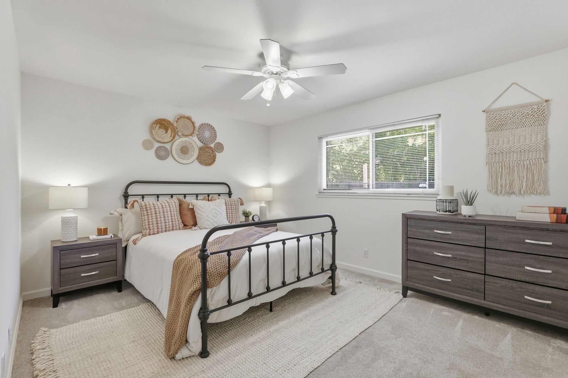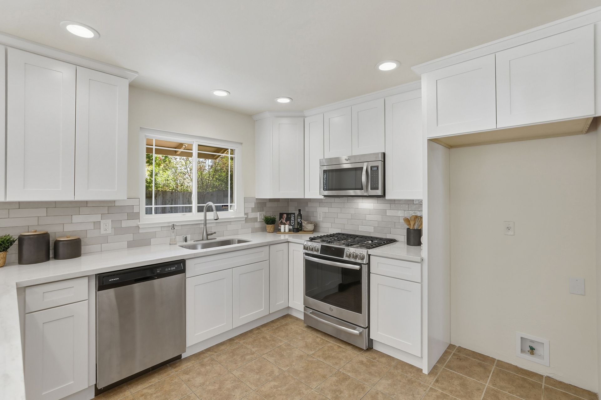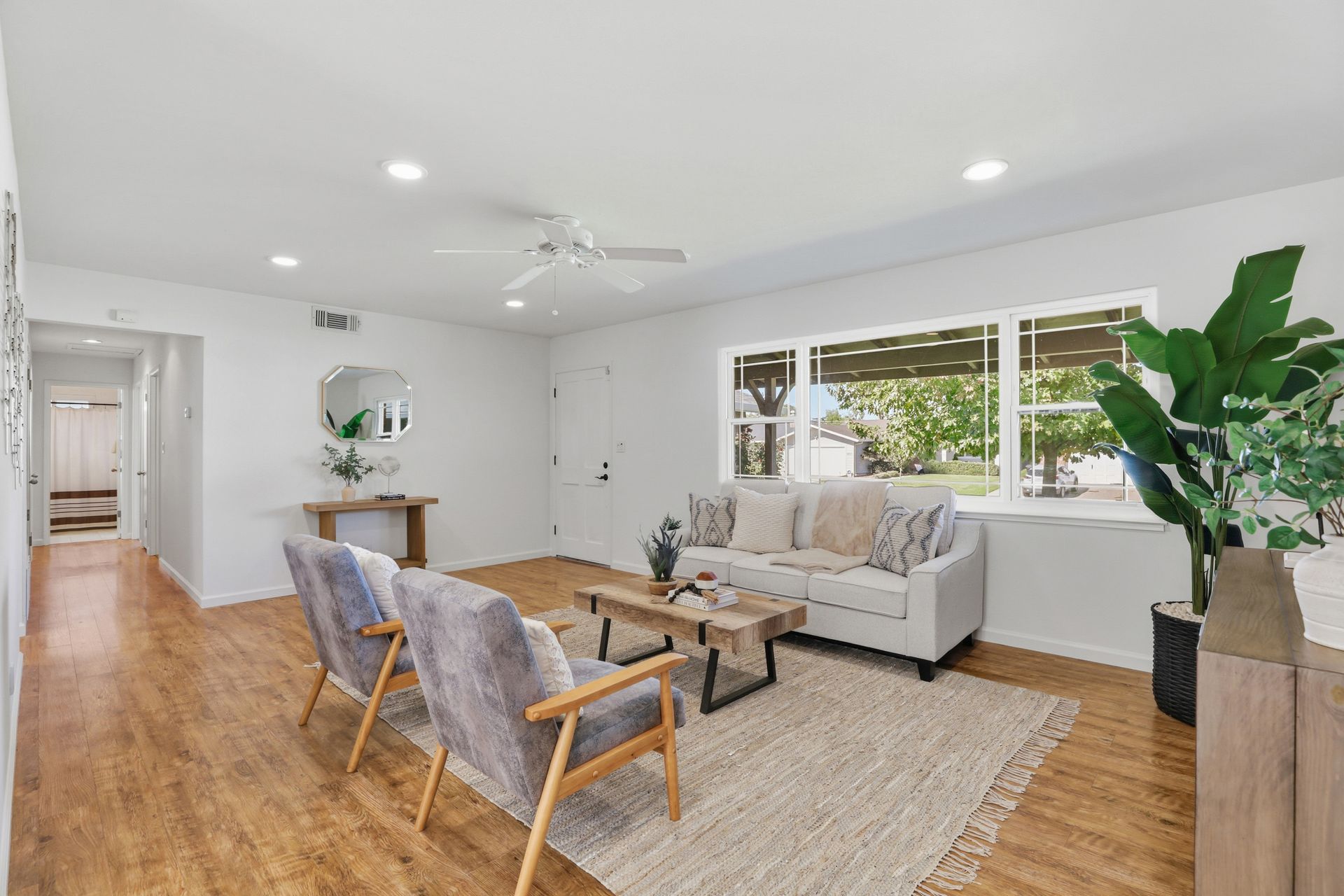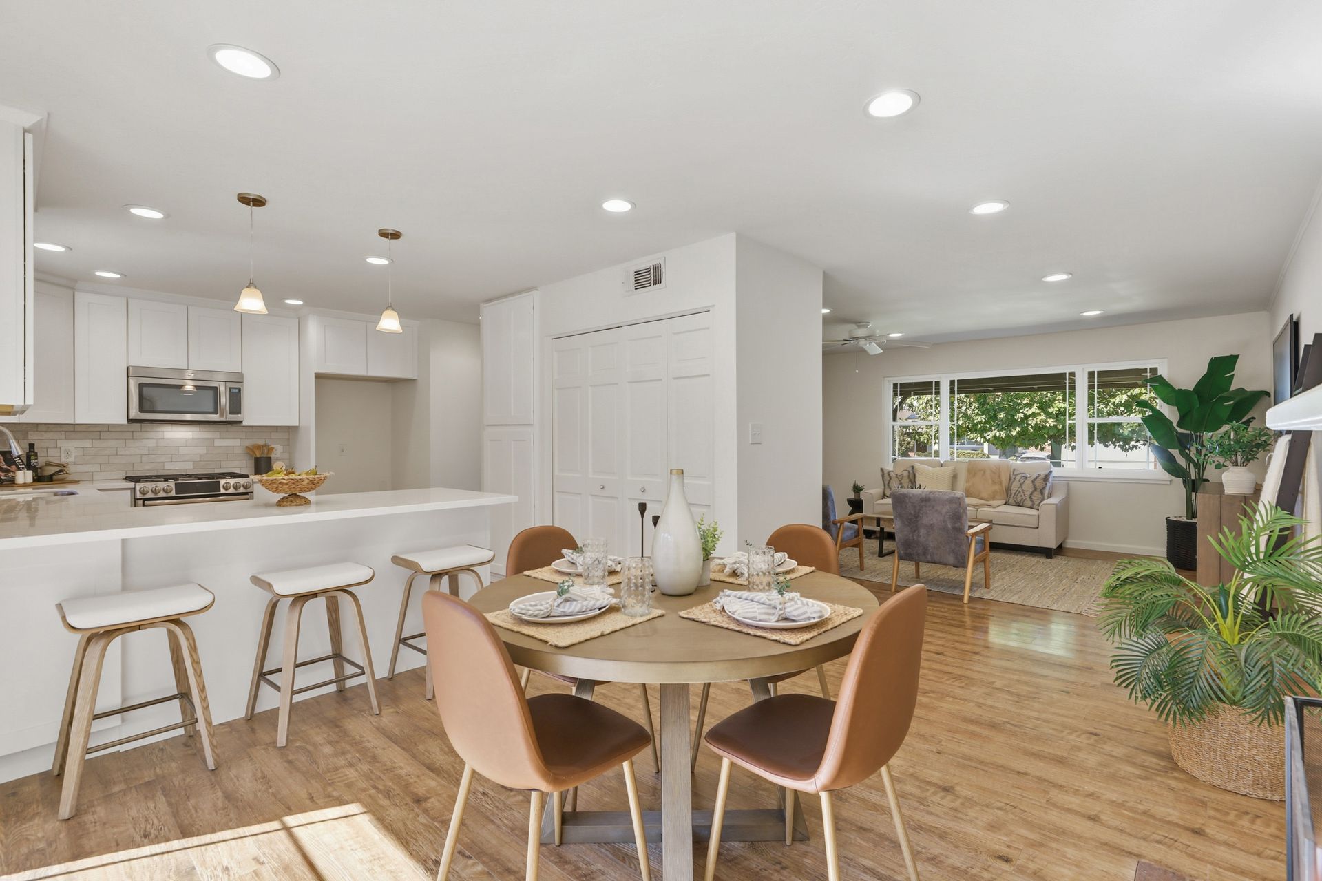 A newly installed roof and newer copper plumbing offer peace of mind for years to come. The beautifully remodeled kitchen shines with quartz countertops, custom cabinetry, a stunning tile backsplash, and recessed lighting that brightens every corner. The cozy fireplace adds a touch of ambiance to the open dining area, ideal for gathering with friends or unwinding after a long day. Enjoy laminate flooring in the main livable spaces, plush carpet in the bedrooms, and updated bathrooms that blend function with modern design. Outside, a private backyard retreat offers the ideal backdrop for morning coffee, weekend BBQs, or simply soaking in the serenity.