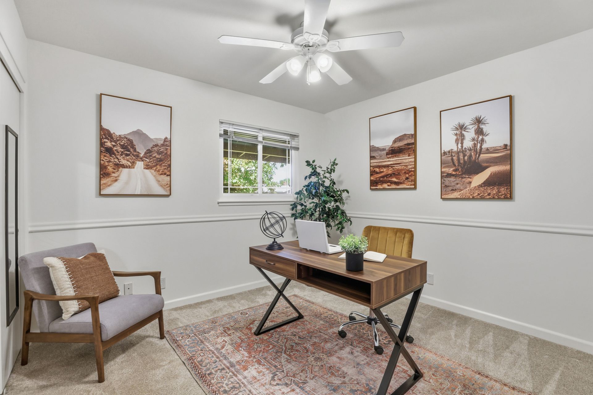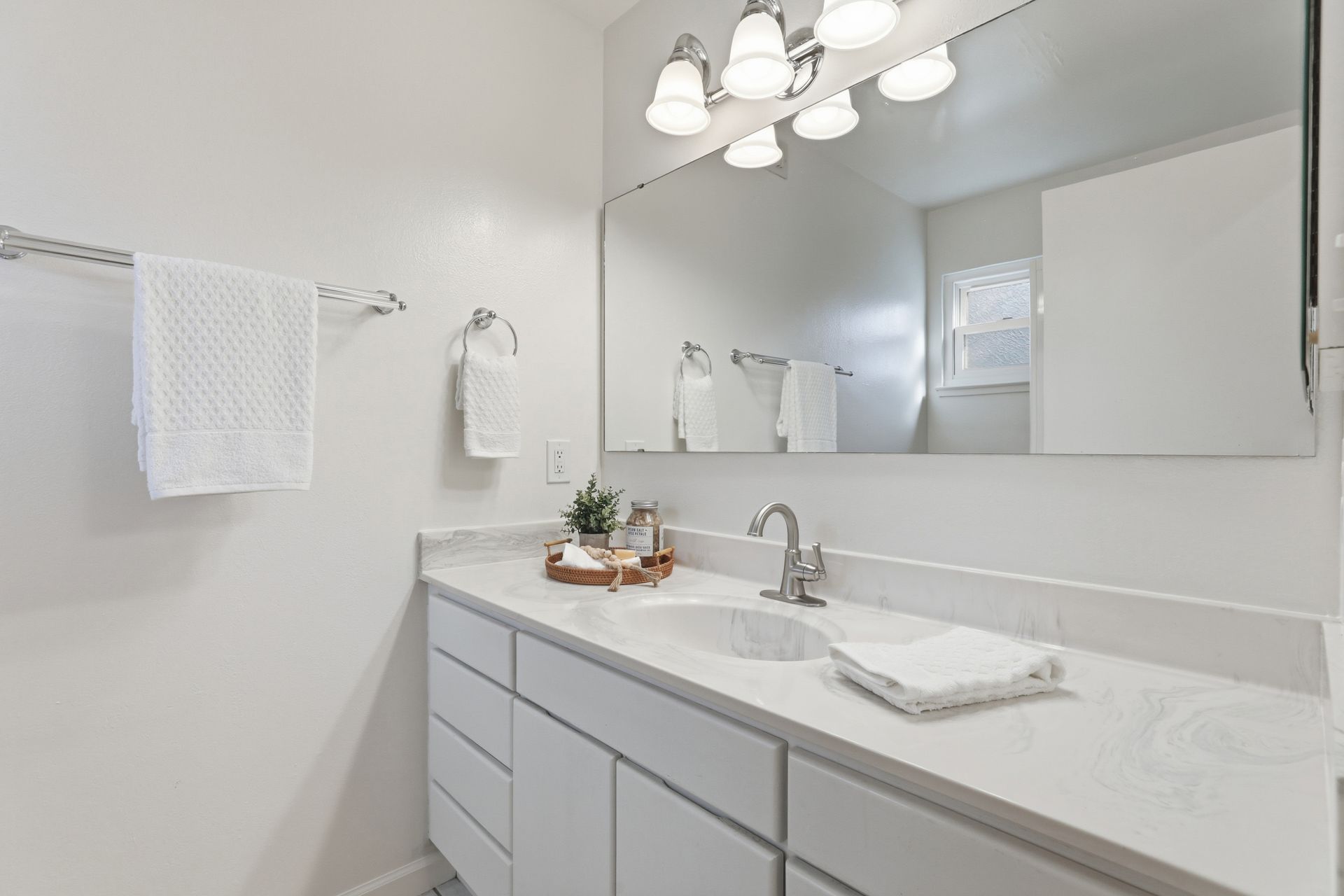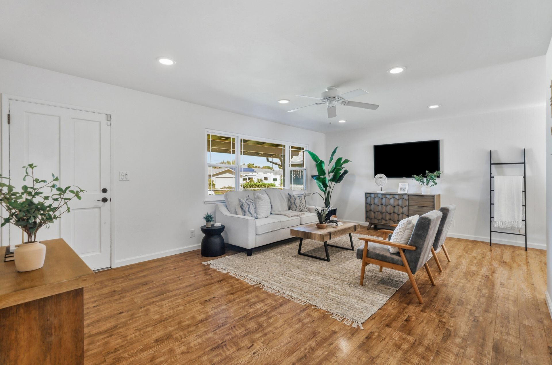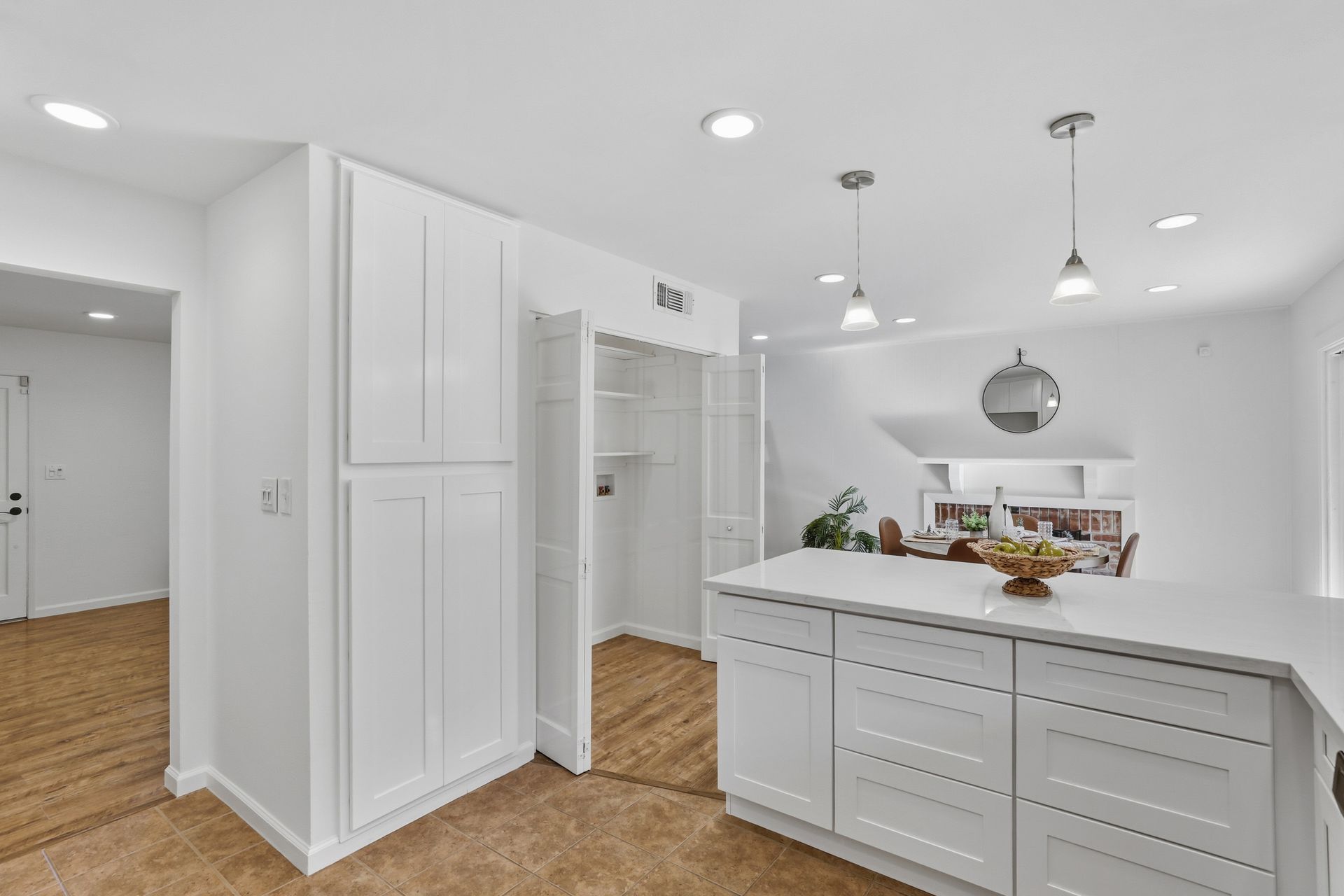 A newly installed roof and newer copper plumbing offer peace of mind for years to come. The beautifully remodeled kitchen shines with quartz countertops, custom cabinetry, a stunning tile backsplash, and recessed lighting that brightens every corner. The cozy fireplace adds a touch of ambiance to the open dining area, ideal for gathering with friends or unwinding after a long day. Enjoy laminate flooring in the main livable spaces, plush carpet in the bedrooms, and updated bathrooms that blend function with modern design. Outside, a private backyard retreat offers the ideal backdrop for morning coffee, weekend BBQs, or simply soaking in the serenity.