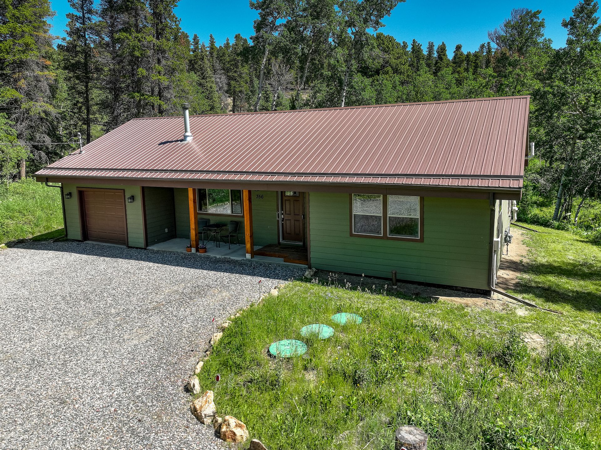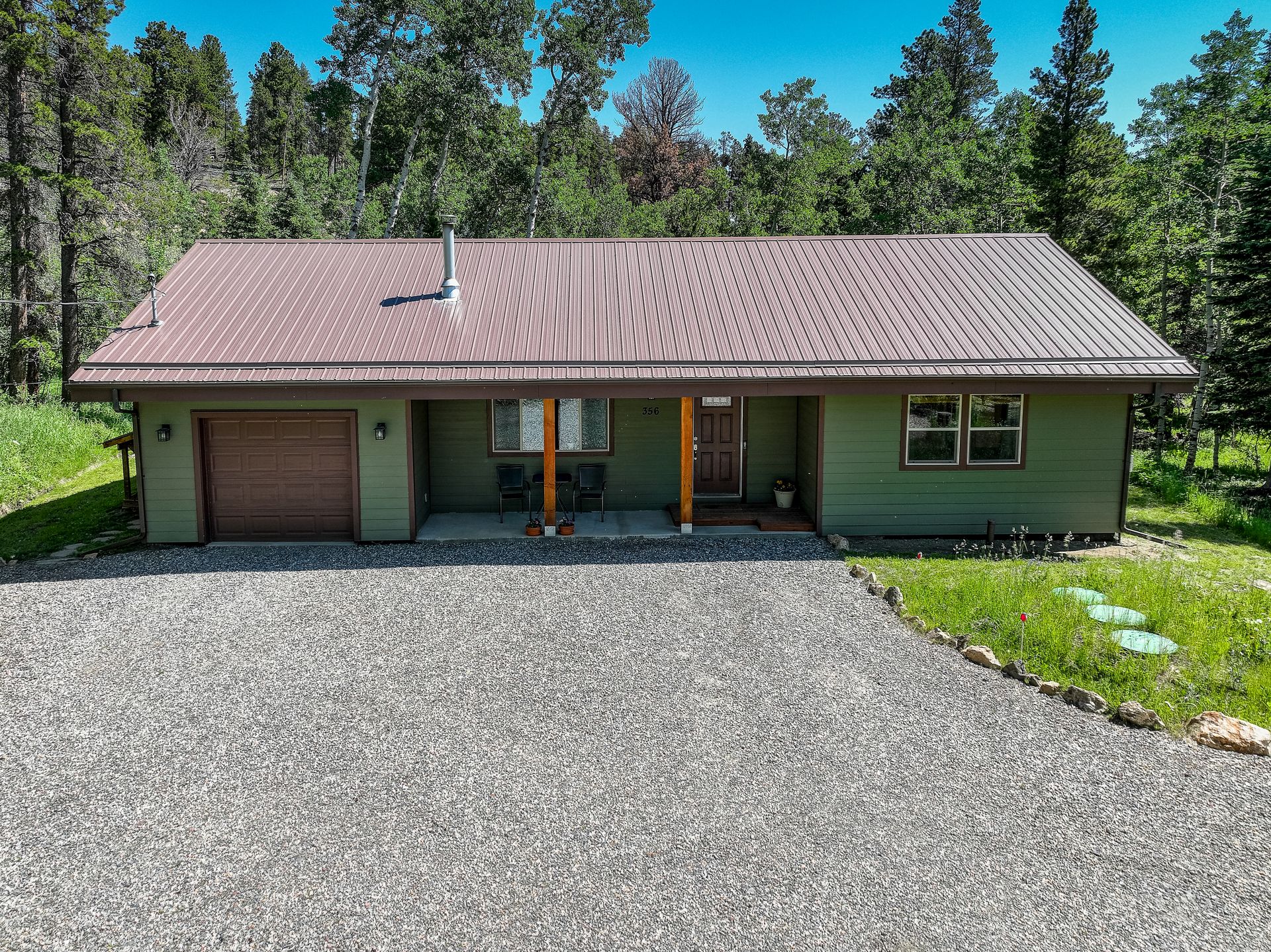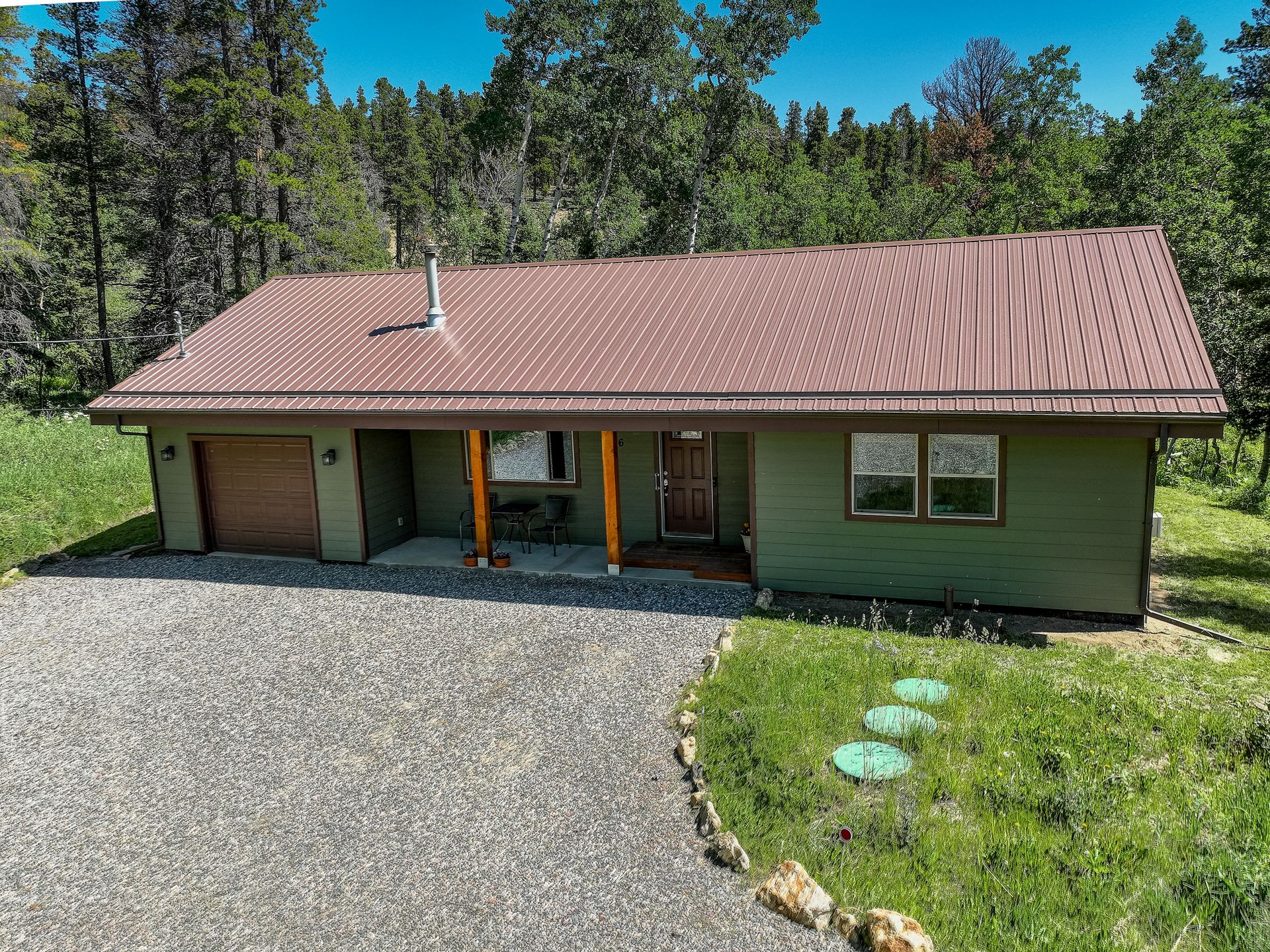 Experience the ideal balance of mountain life and modern convenience in this well-appointed 2018-built home, nestled in the sought-after Dory Lakes subdivision. Set on a lush, private lot with a seasonal creek, this property has had extensive fire mitigation work completed and includes a fenced dog run. The metal roof and Hardie board siding provide long-lasting durability and low-maintenance living - perfect for mountain conditions. Proceed inside to a bright and inviting interior, featuring luxury vinyl flooring throughout, vaulted ceilings (9+ foot), and a modern kitchen with hickory cabinets and stainless steel appliances including a Bosch dishwasher. The generous primary suite includes a walk-in closet and a full en-suite bath for added comfort. The Dory Lakes community features three private fishing ponds, parks, and seasonal neighborhood events, all close by. Outdoor enthusiasts will love the easy access to miles of nearby hiking and biking trails, including Golden Gate Canyon State Park, Apex Park, Maryland Mountain, and local Gilpin County open space trails - all just minutes away. Also nearby- Black Hawk/Central City (10 minutes), Eldora Ski Resort (25 minutes), Nederland (20 minutes), and Close to Highway 119 and Highway 46 for easy commuting to the Denver metro area. This is your chance to enjoy Colorado's mountain lifestyle without sacrificing access to shopping, dining, entertainment, or adventure.