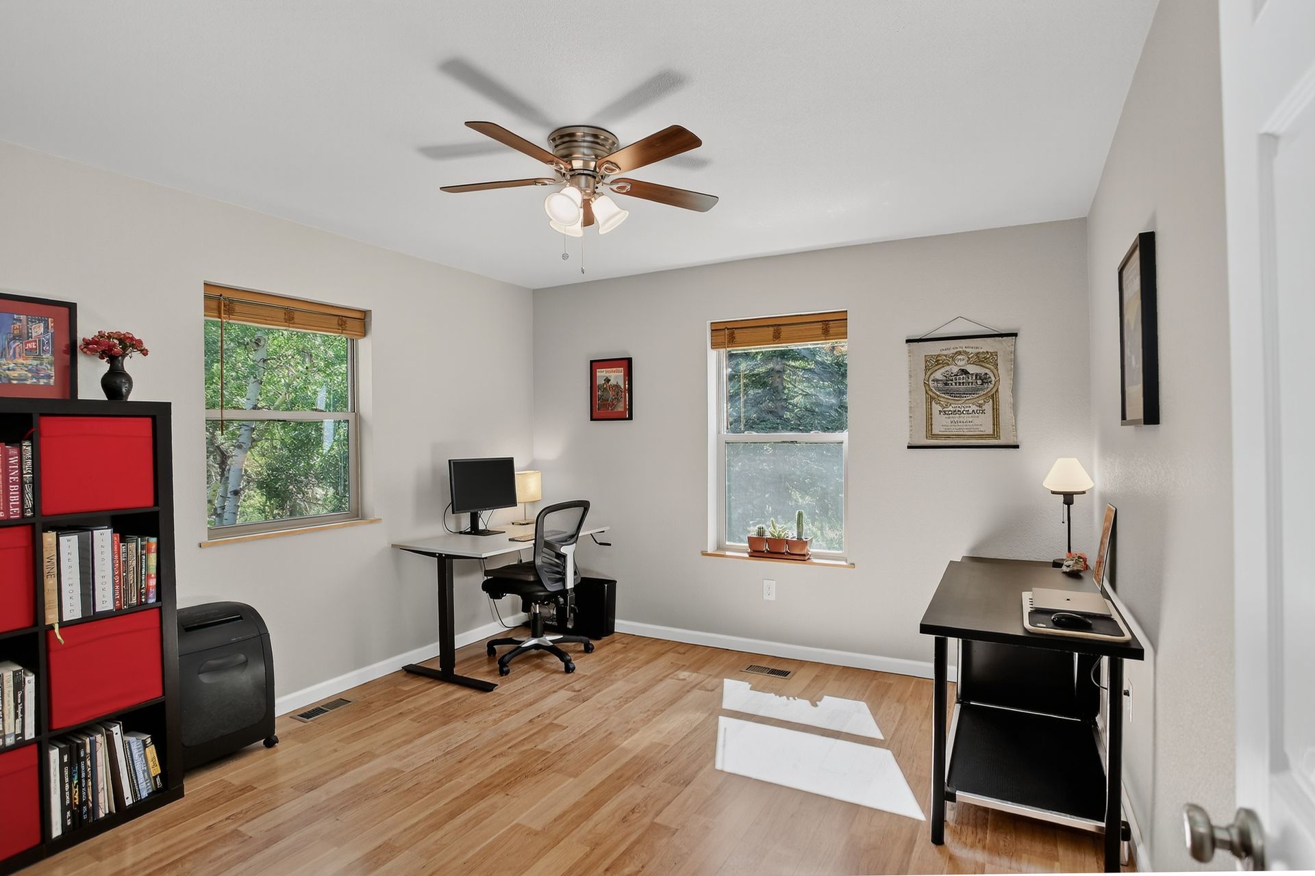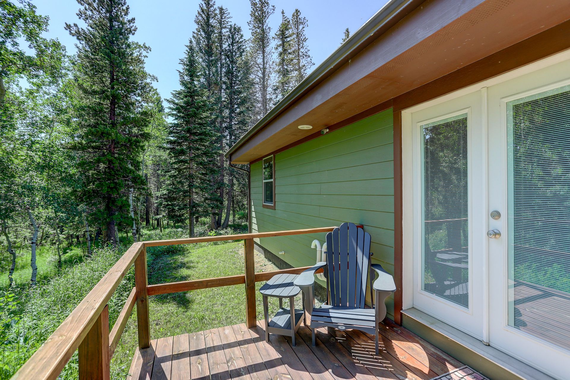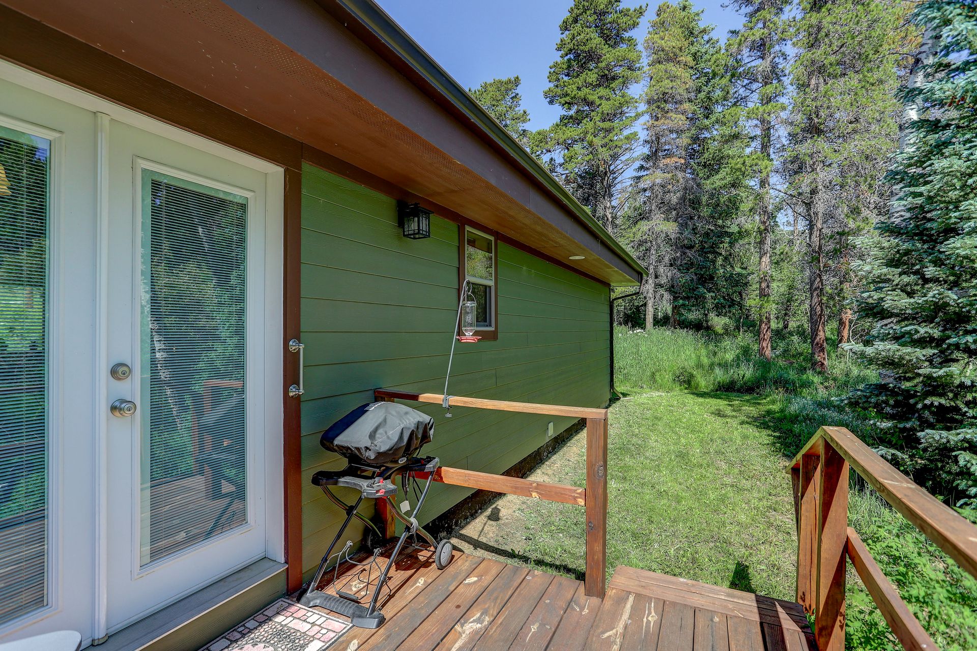 Experience the ideal balance of mountain life and modern convenience in this well-appointed 2018-built home, nestled in the sought-after Dory Lakes subdivision. Set on a lush, private lot with a seasonal creek, this property has had extensive fire mitigation work completed and includes a fenced dog run. The metal roof and Hardie board siding provide long-lasting durability and low-maintenance living - perfect for mountain conditions. Proceed inside to a bright and inviting interior, featuring luxury vinyl flooring throughout, vaulted ceilings (9+ foot), and a modern kitchen with hickory cabinets and stainless steel appliances including a Bosch dishwasher. The generous primary suite includes a walk-in closet and a full en-suite bath for added comfort. The Dory Lakes community features three private fishing ponds, parks, and seasonal neighborhood events, all close by. Outdoor enthusiasts will love the easy access to miles of nearby hiking and biking trails, including Golden Gate Canyon State Park, Apex Park, Maryland Mountain, and local Gilpin County open space trails - all just minutes away. Also nearby- Black Hawk/Central City (10 minutes), Eldora Ski Resort (25 minutes), Nederland (20 minutes), and Close to Highway 119 and Highway 46 for easy commuting to the Denver metro area. This is your chance to enjoy Colorado's mountain lifestyle without sacrificing access to shopping, dining, entertainment, or adventure.