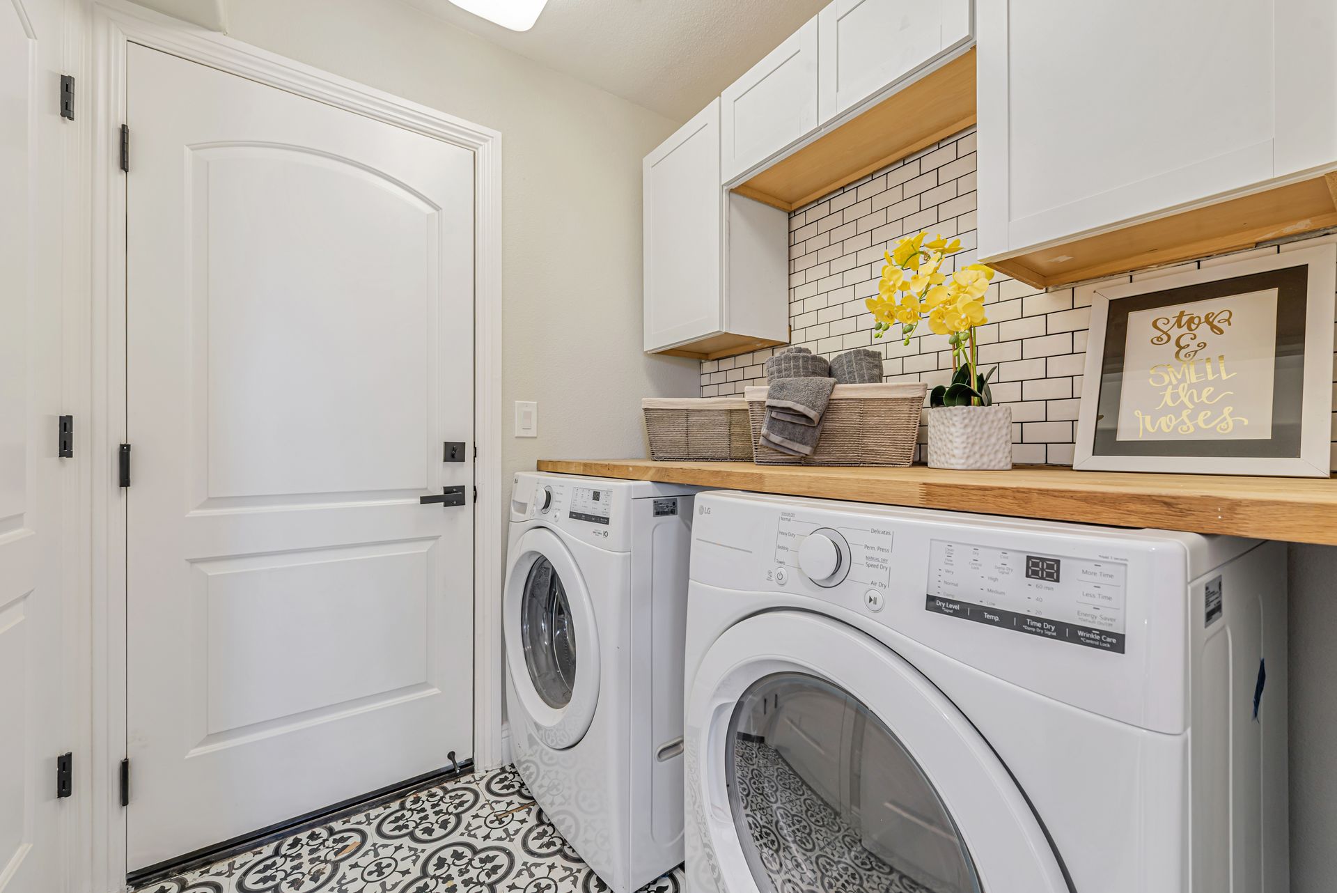 Recent upgrades include laminate flooring, recessed lighting, solid-core interior doors, and fresh interior paint. Downstairs you’ll also find a bedroom and a remodeled half bath with tile floors and vanity, along with a convenient laundry room.