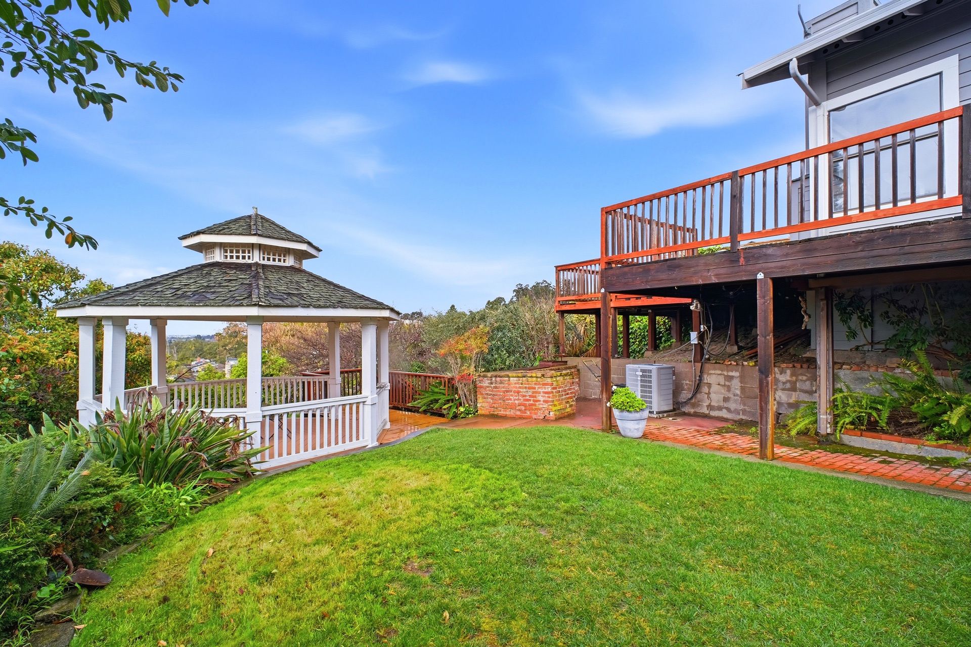 Situated on a generous 10,948 sq. ft. lot, outdoor living is equally impressive, offering a view deck, gazebo, and grassy area perfect for relaxing or play, all set against a breathtaking panoramic backdrop.