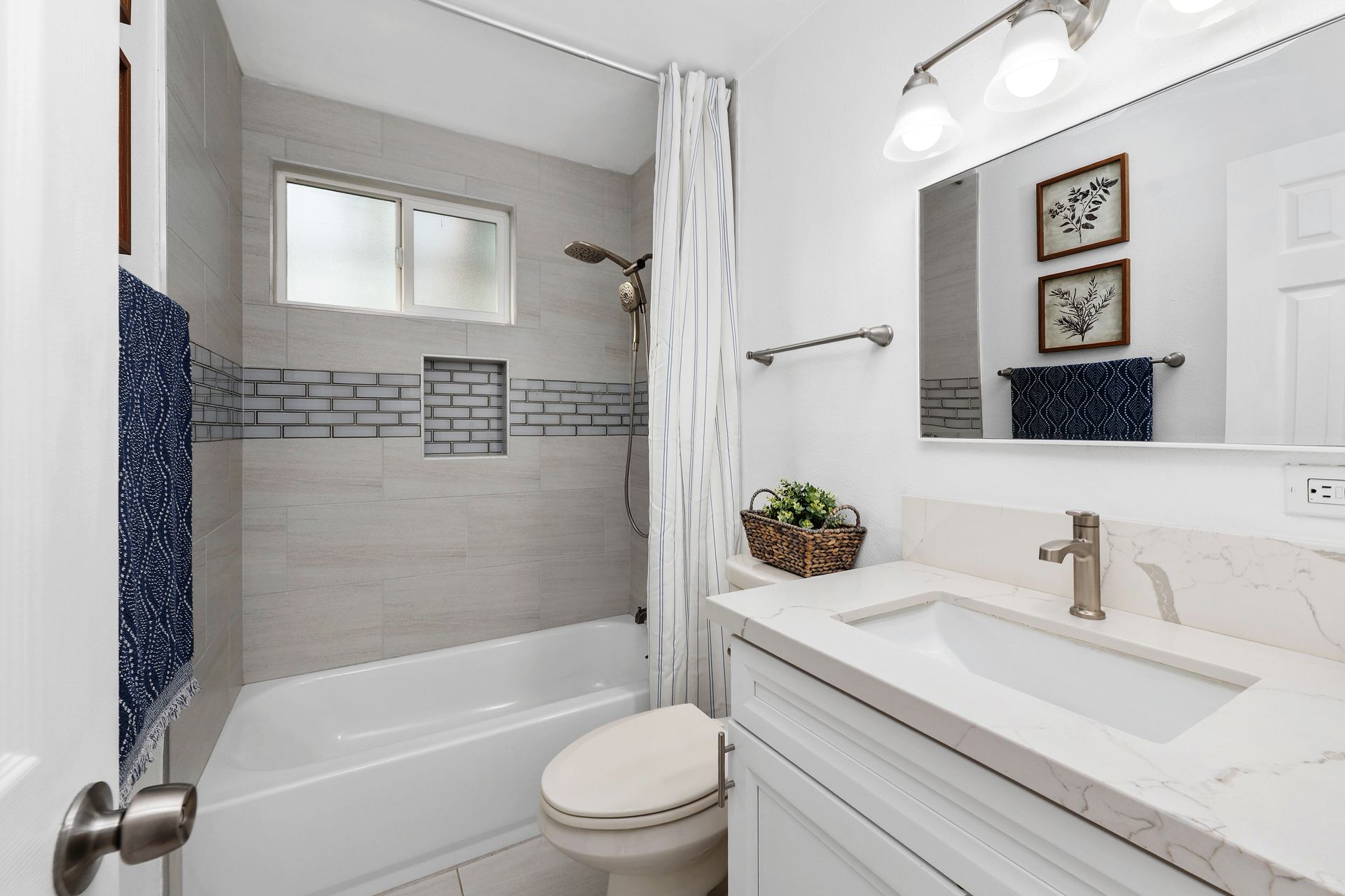 This home offers three bedrooms and two upgraded bathrooms with modern tile finishes and sleek glass inlays. Water-resistant luxury vinyl flooring flows through the main living areas, while carpeted bedrooms add warmth and comfort.