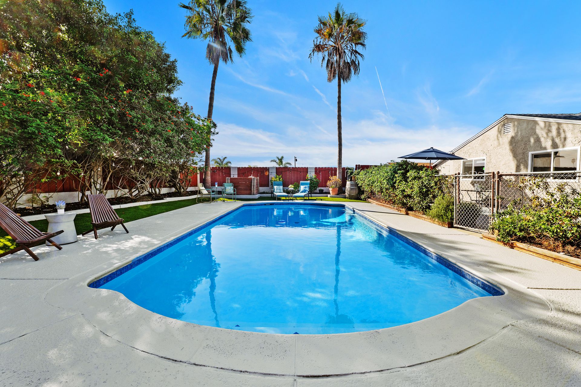 The backyard is designed for relaxation and hosting. A spacious patio is perfect for BBQs and outdoor dining, while the large in-ground pool has been refreshed with newer tile and plaster. The pool deck provides ample space for lounging, complemented by low-maintenance turf, a brick patio, and a fully fenced pool for peace of mind.