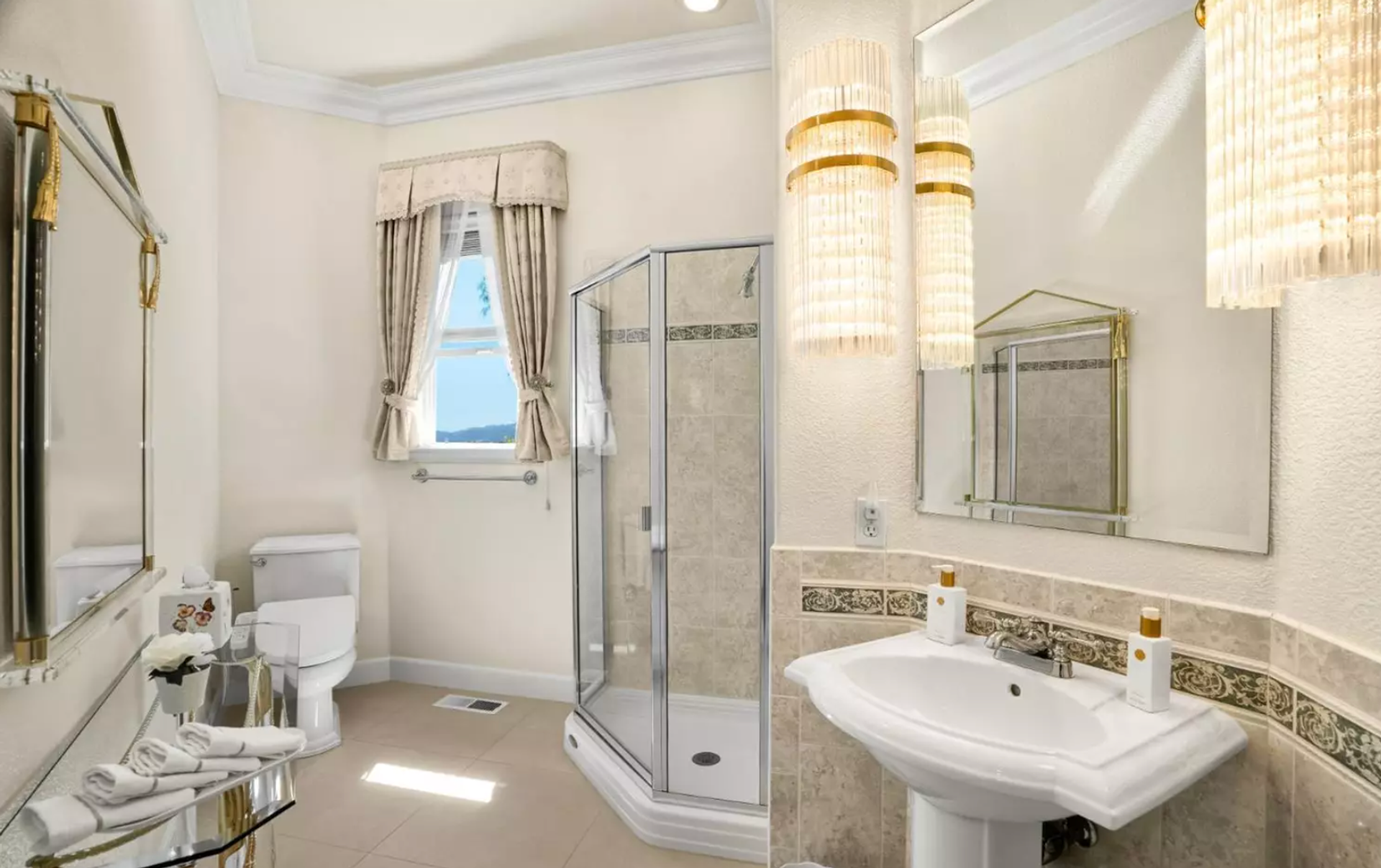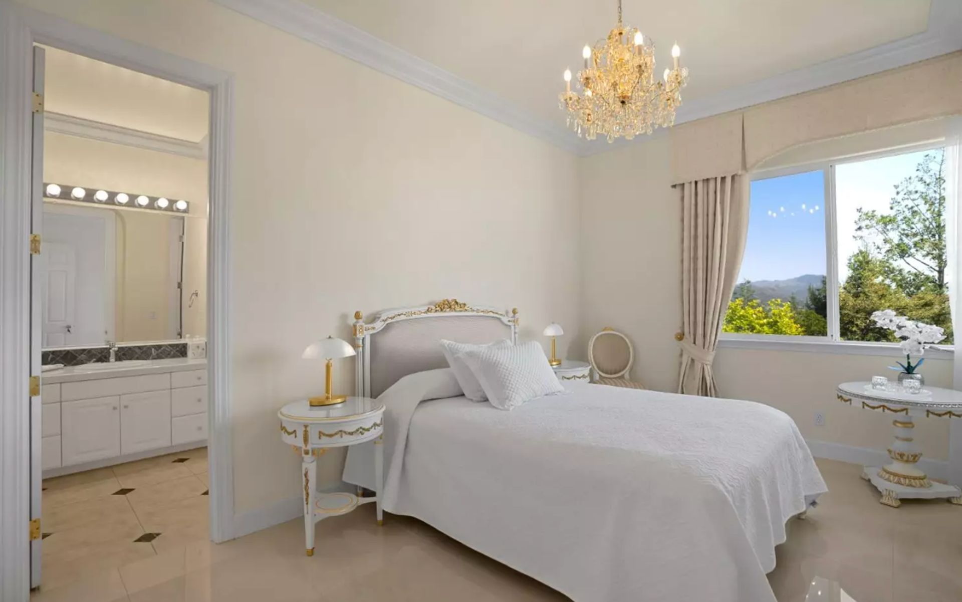- Luxurious ensuite bath with jetted tub, walk-in shower, dual vanities, separate room with bidet and sink, two walk-in closets with built-in organizers