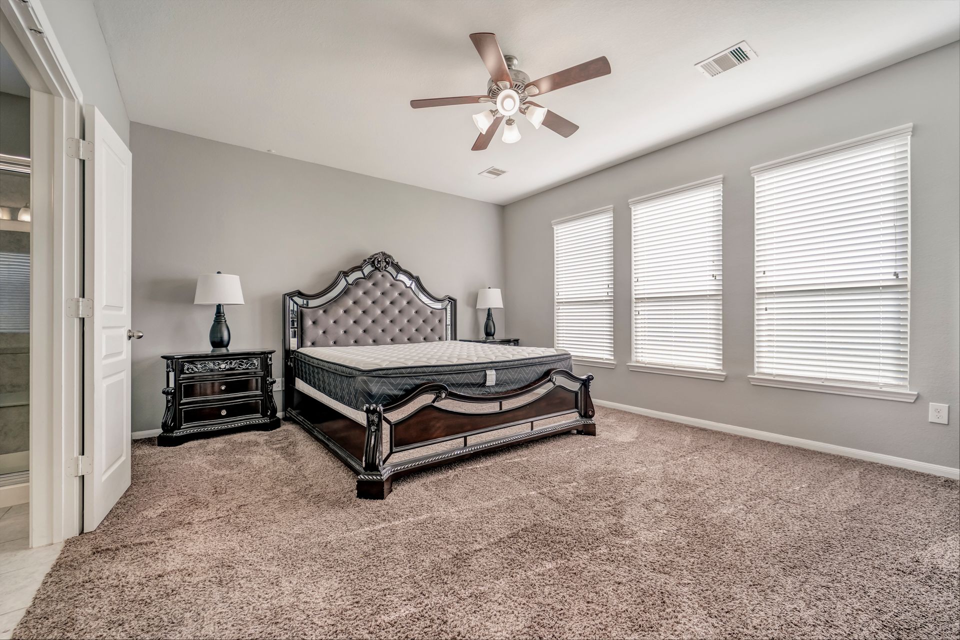 Outside, there is a covered patio with a nice-sized yard. The home is located in the Katy ISD, with Highway 99 nearby.