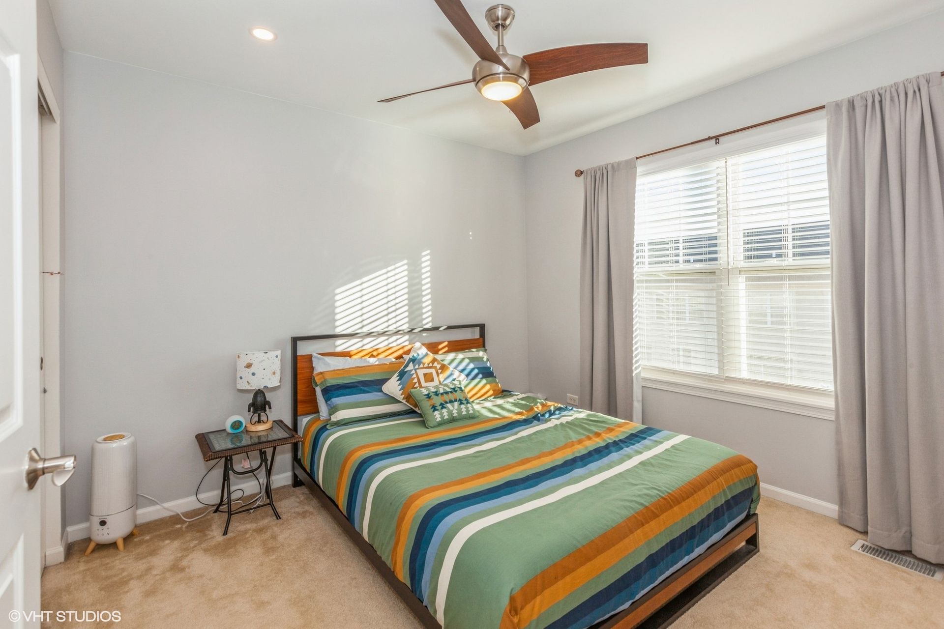 The English lower-level basement provides flexible living space ideal for a home office, media room, or additional lounge area. Recent updates include fresh interior paint (2024), upgraded lighting, Bali cordless blinds throughout, and brand-new carpet (Feb 2026). The garage is equipped with a Tesla/EV charger for added convenience.
