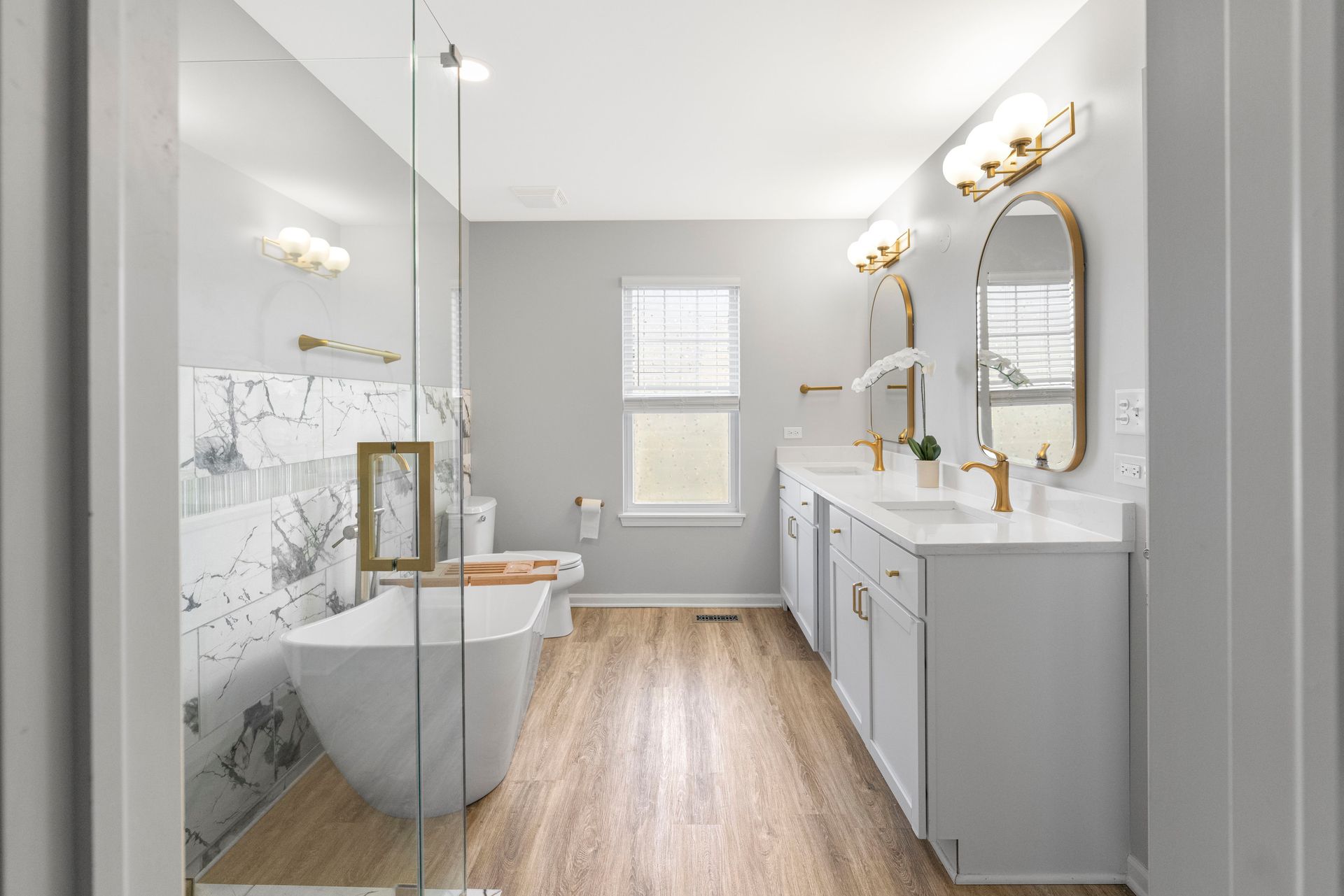 Upstairs, the spacious primary suite offers a vaulted ceiling, custom walk-in closet (2024), and a fully renovated ensuite bath (Jan 2025) featuring a soaking tub and double vanity. Additional hall and powder baths were also beautifully updated in Jan 2025.