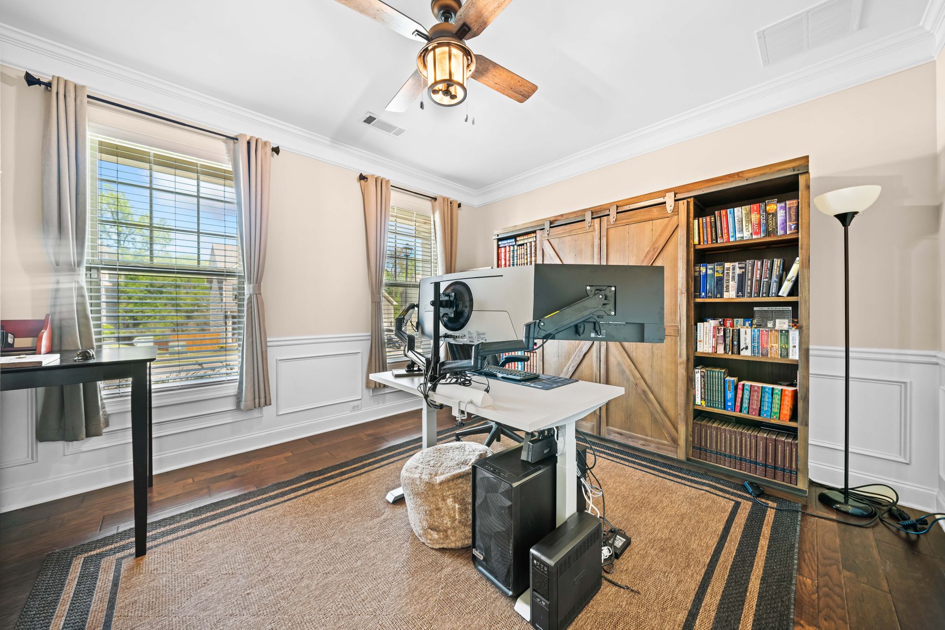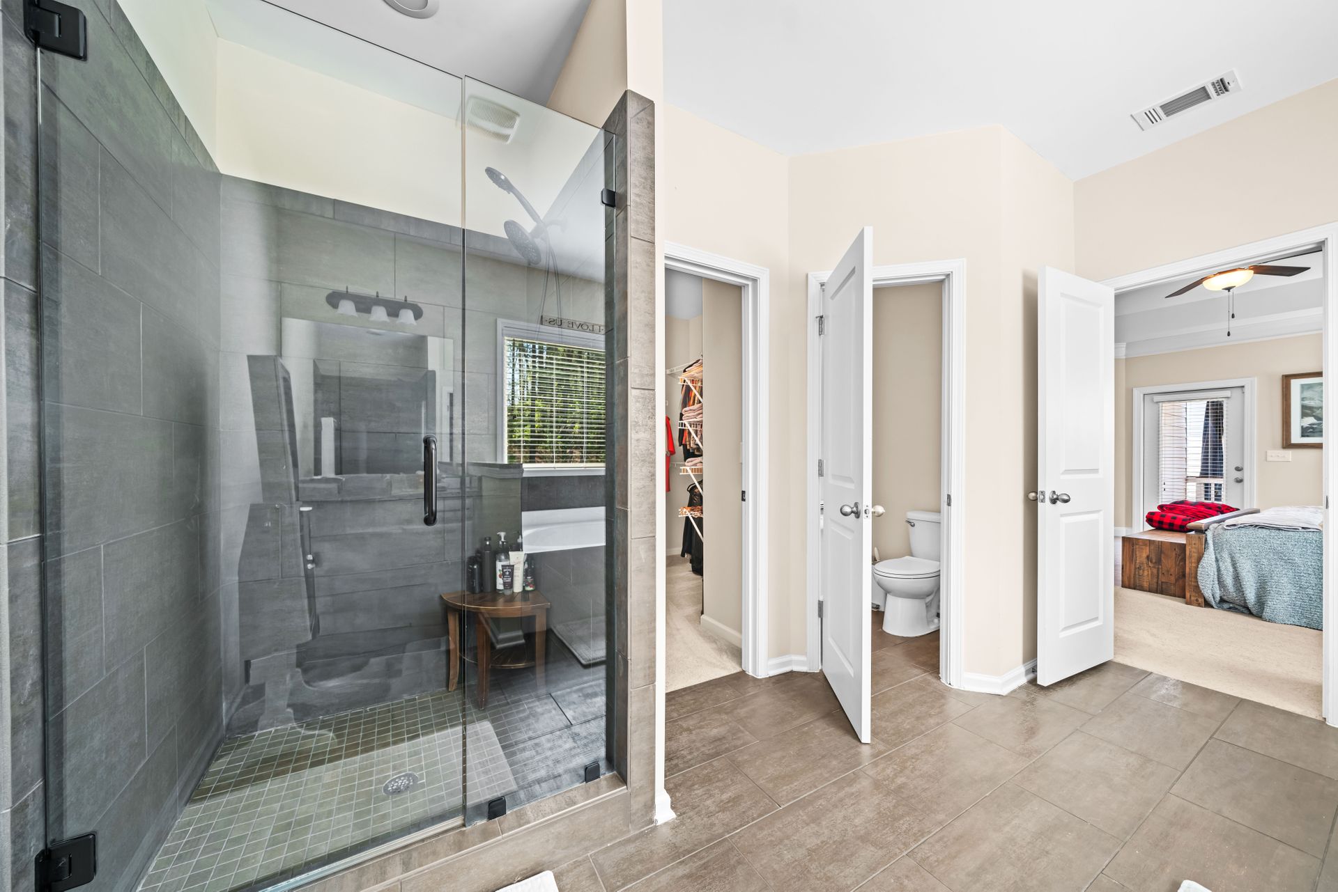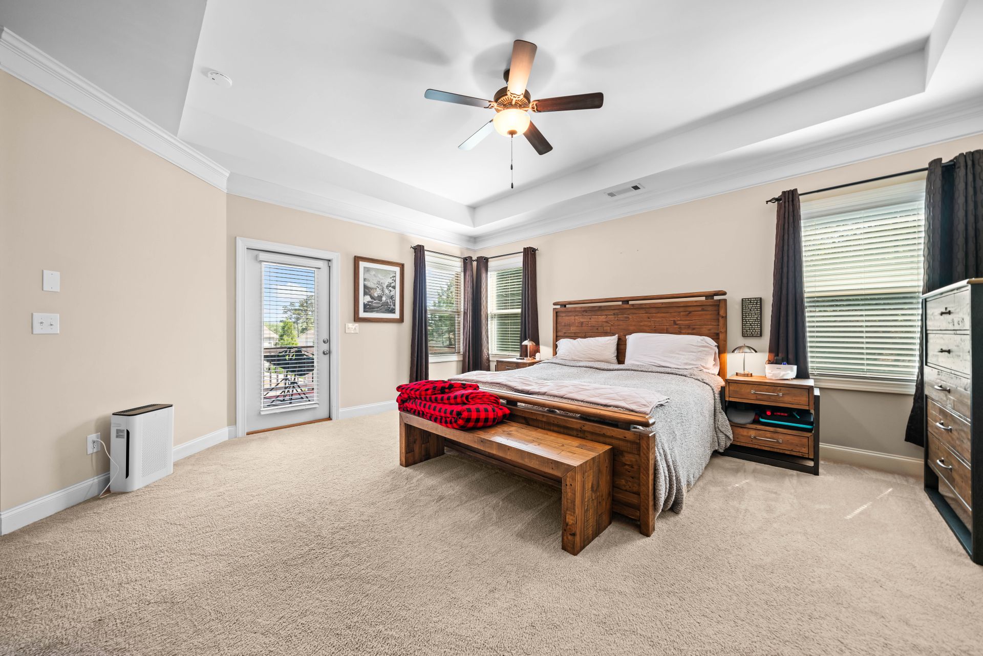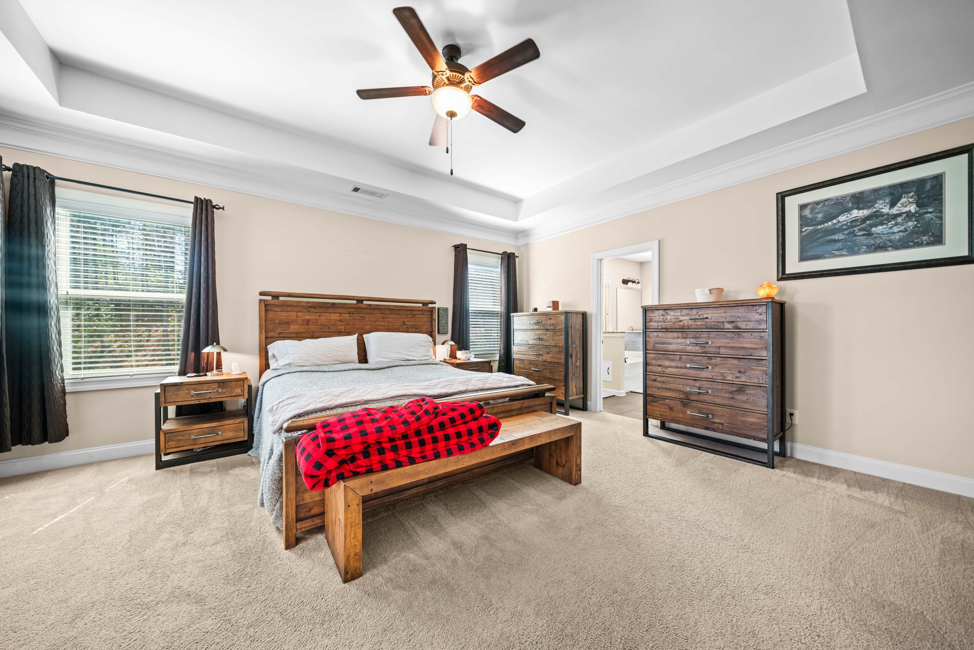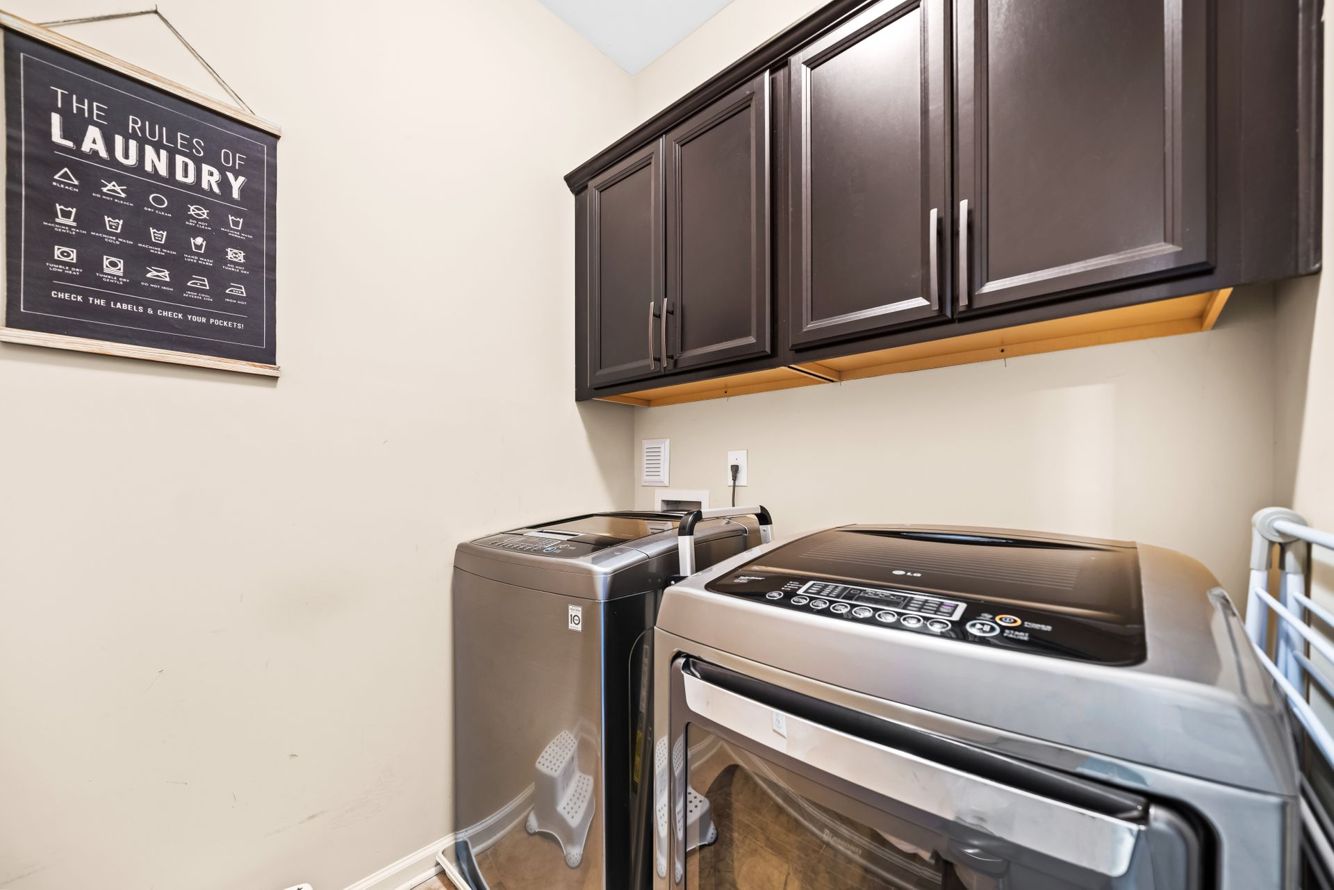 Upstairs, the luxurious primary suite features tray ceilings, a private deck, and an oversized walk-in closet. The spa-inspired end suite bath includes dual vanities with quartz countertops, a soaking tub, and a large separate shower designed for ultimate comfort. The generous loft offers endless possibilities, whether you need a media space, home office, or play area. The laundry room, accented with custom barn doors, is conveniently located on the upper level for added ease.