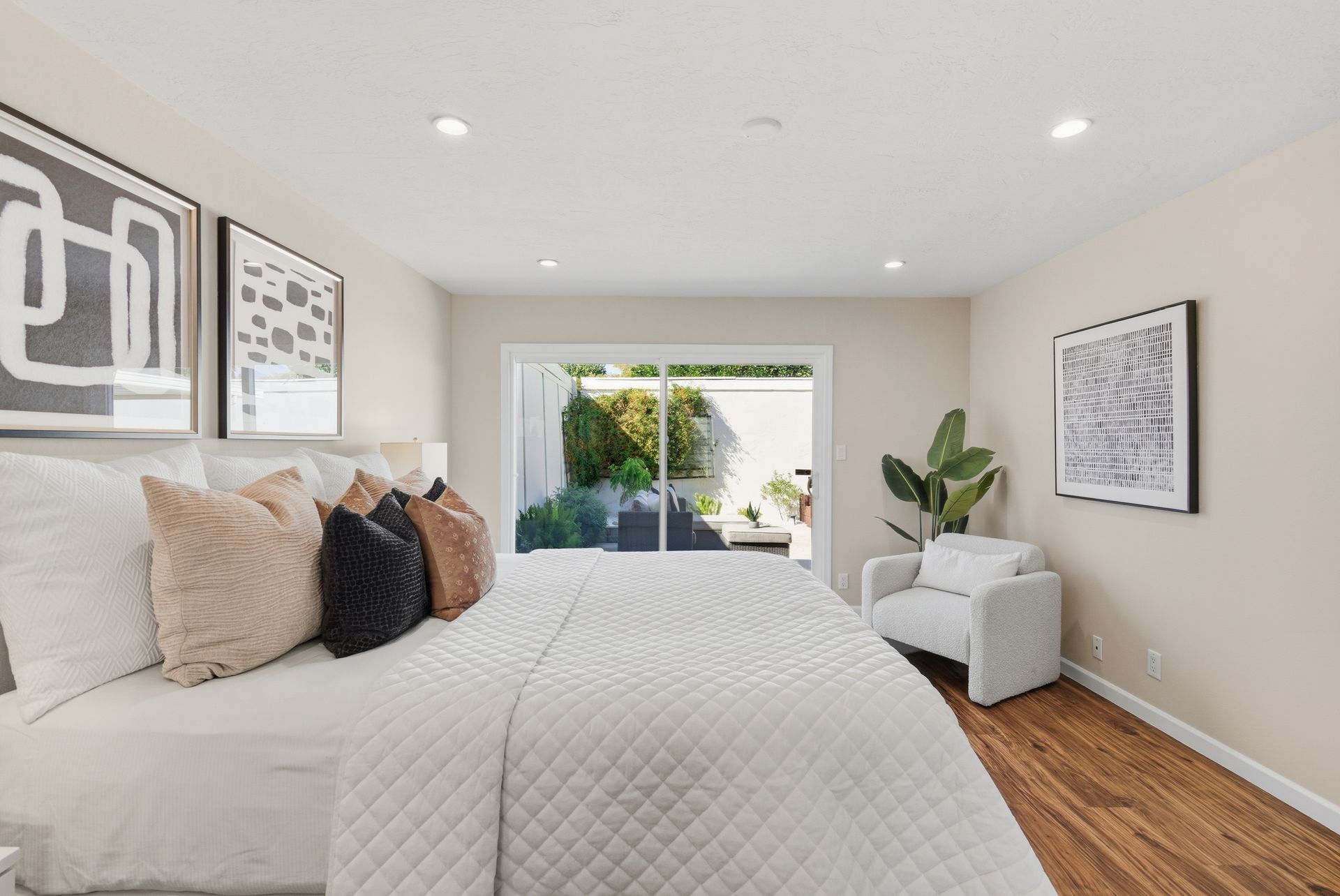 Why settle for a condo or townhouse with HOA fees when you can own a single-family home and enjoy private outdoor space! This two bedroom, two bath home offers approximately 1,196 square feet on a 4,929 square foot corner lot, blending convenience, style, and low-maintenance living. The generous sized kitchen with granite counters, roll-out shelves, and freshly painted cabinets flows into the spacious dining area and living room—ideal for everyday living and entertaining. Sliding glass doors off the dining room open to the back patio and off the living room, leading to a large side yard, helping fill the home with natural light. Both bathrooms are remodeled, and the primary suite has its own patio access. The front yard is framed by a wrought iron gate and fence, with newer fencing along the front and side yard, enclosing a pergola with a built-in bench. A large storage shed adds extra space, and the attached two-car garage is wired for 240V EV charging. Recessed lighting, laminate flooring, a Nest thermostat and doorbell, drought-tolerant landscaping and freshly painted inside/out, help to enhance this bright, comfortable, low-maintenance home. Centrally located near commute routes and parks, this home combines comfort, convenience, and outdoor enjoyment, an ideal place to call home!