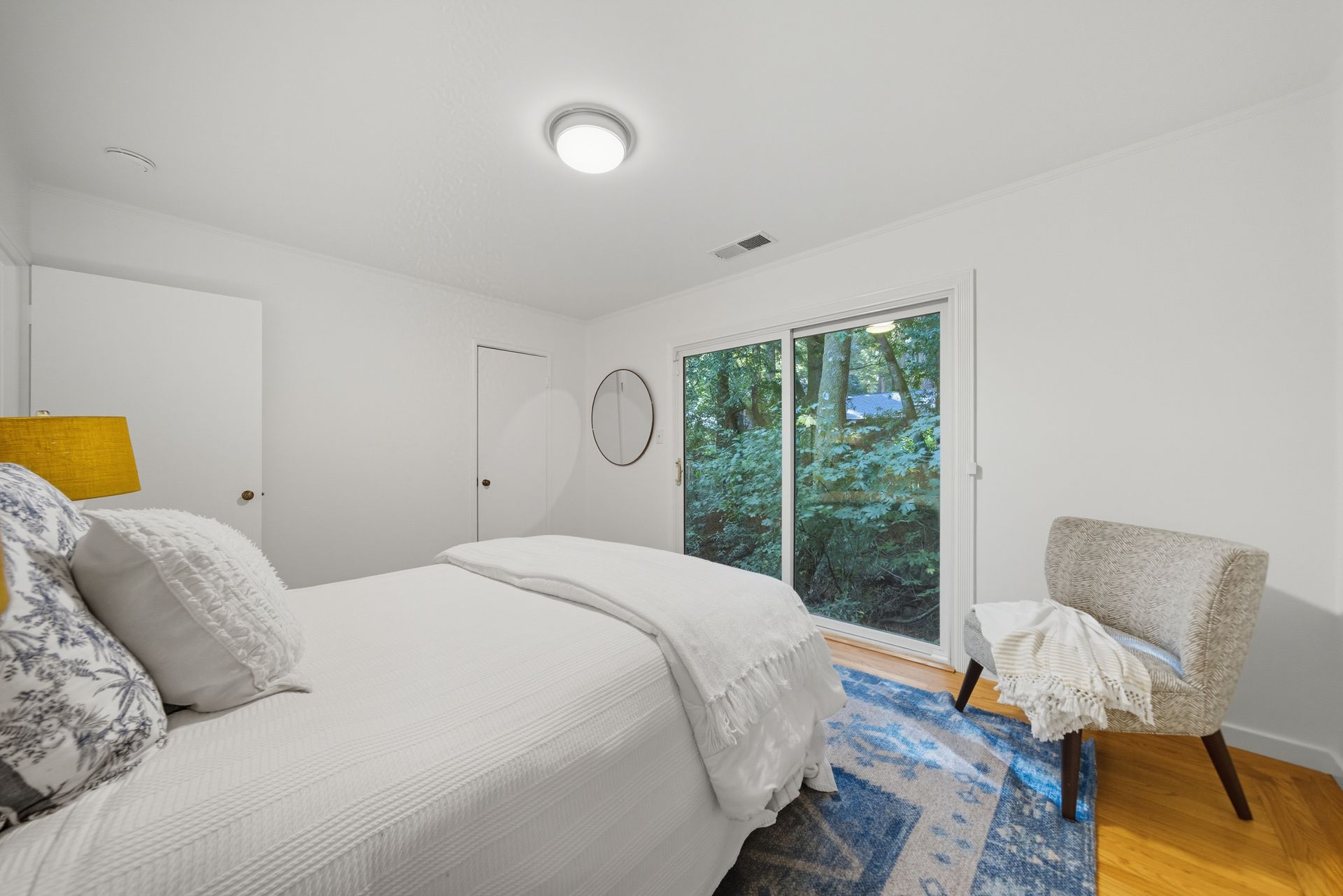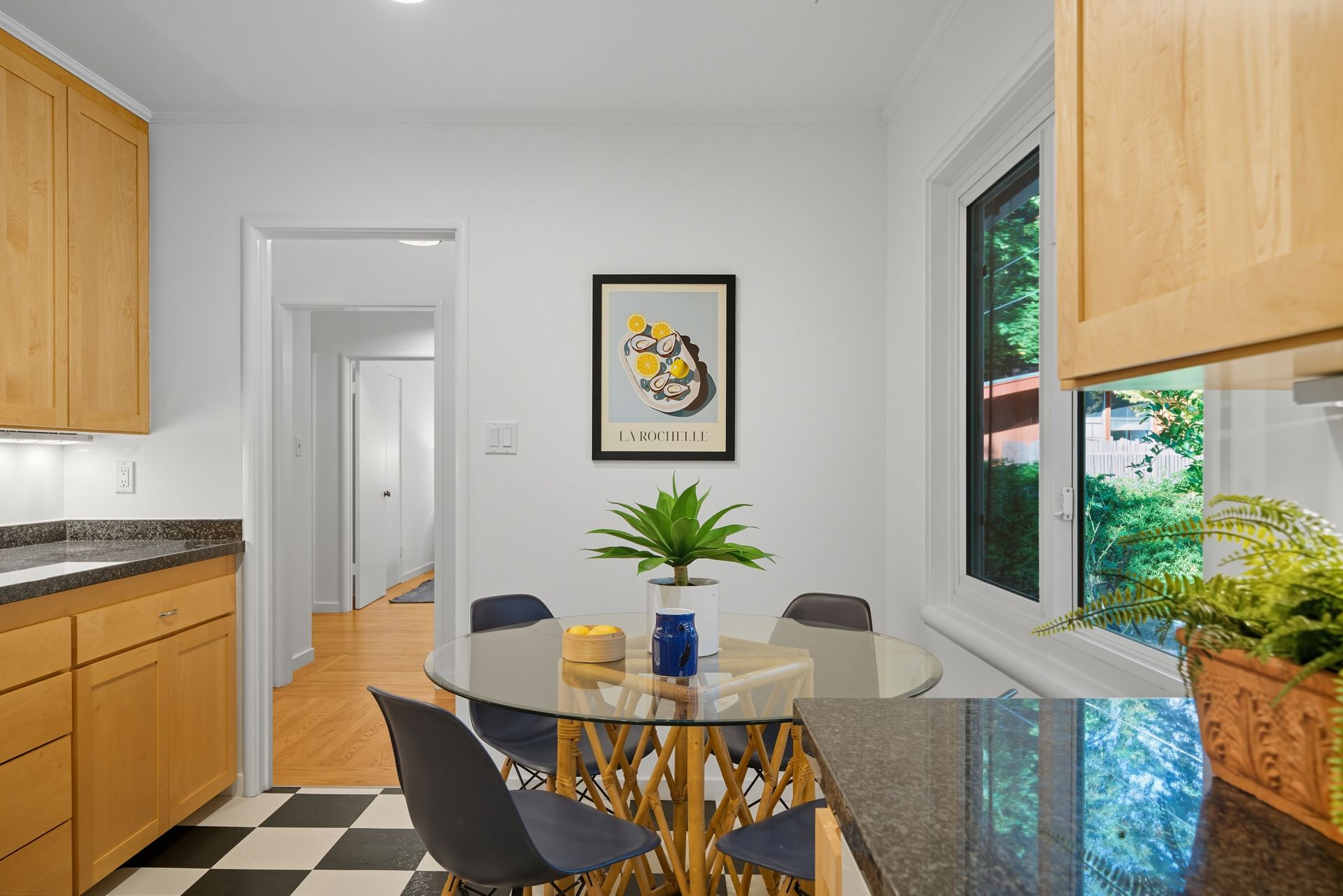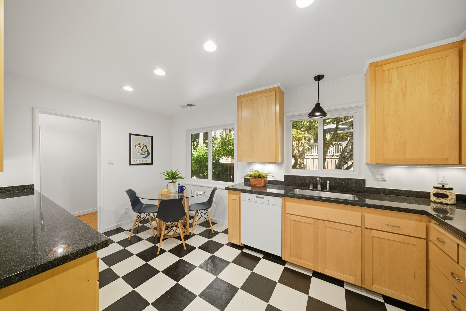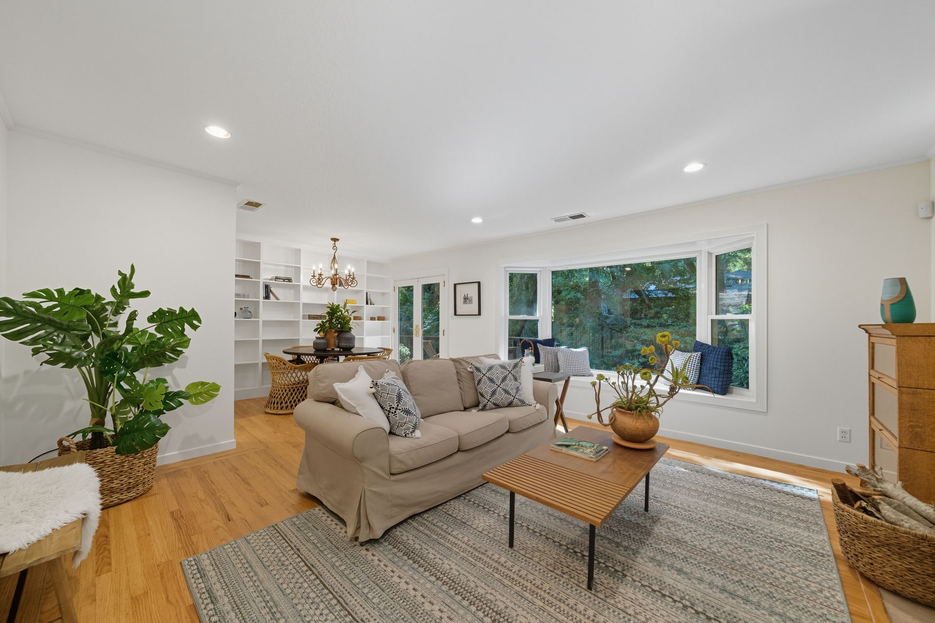 If you've ever wondered how it would feel to live in a gorgeous state park, come see 39 Bridge Road in Larkspur, California. Here inspiring birdsong and gosun break through the towering redwoods throughout the day. This incredibly peaceful single-level home is near the entrance to Baltimore Canyon. A charming front patio and gorgeous citrus trees welcome you home to a front entry and gracious living/dining room with a wood burning fireplace, built-in bookshelves, a large bay window with a cozy window seat, and French doors opening to a deck perched over the beautiful seasonal creek. There's a super attractive and updated eat-in kitchen, two lovely bedrooms, one and one-half baths, and a custom crafted sunroom/office tucked away off the primary bedroom, with its own entrance. There's a one-car garage and space ideal for expansion (check with city.) Larkspur offers residents excellent public schools, world class hiking, great shops and restaurants and a close knit community that gets together for cultural events and celebration. Best of all, you'll awaken every day inspired by the tranquil majesty of redwoods all around you. They are the true kings among us, and living among them is a healthy and beautiful thing. Perry's is also right down the road.