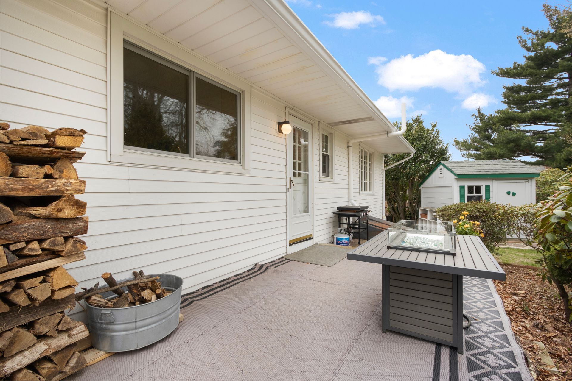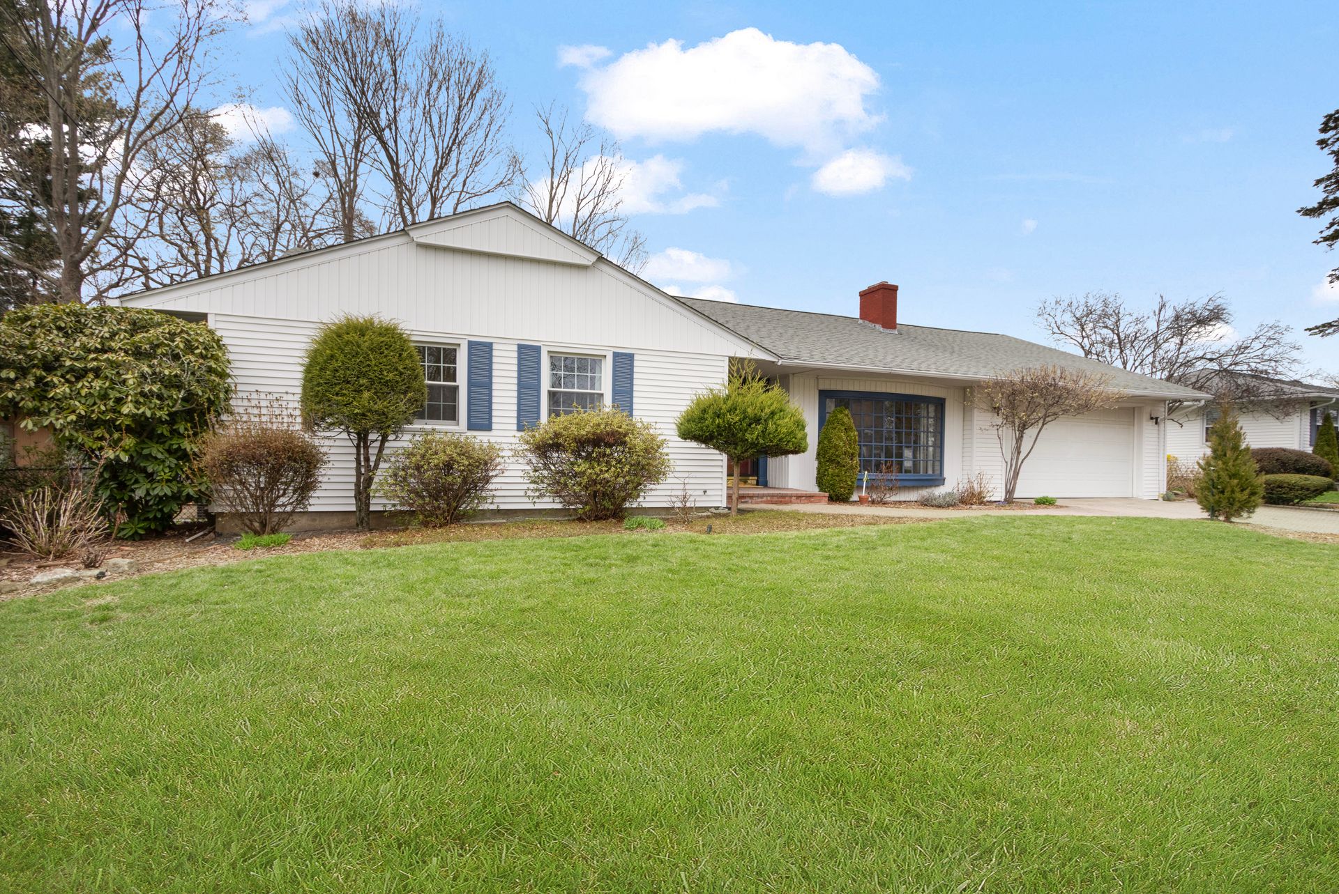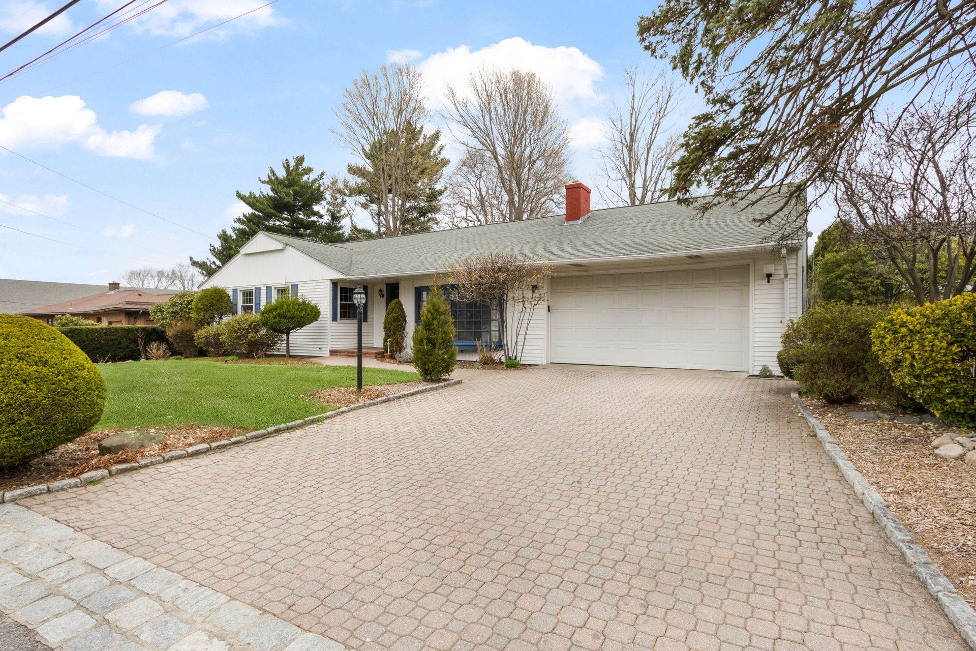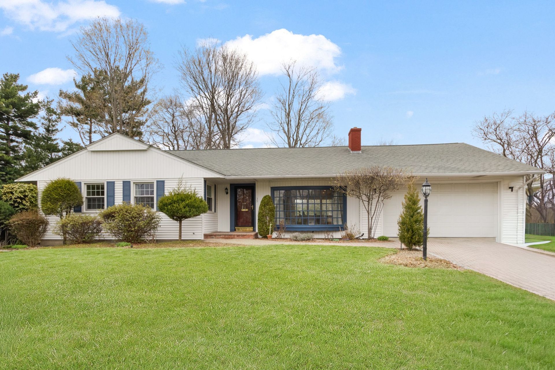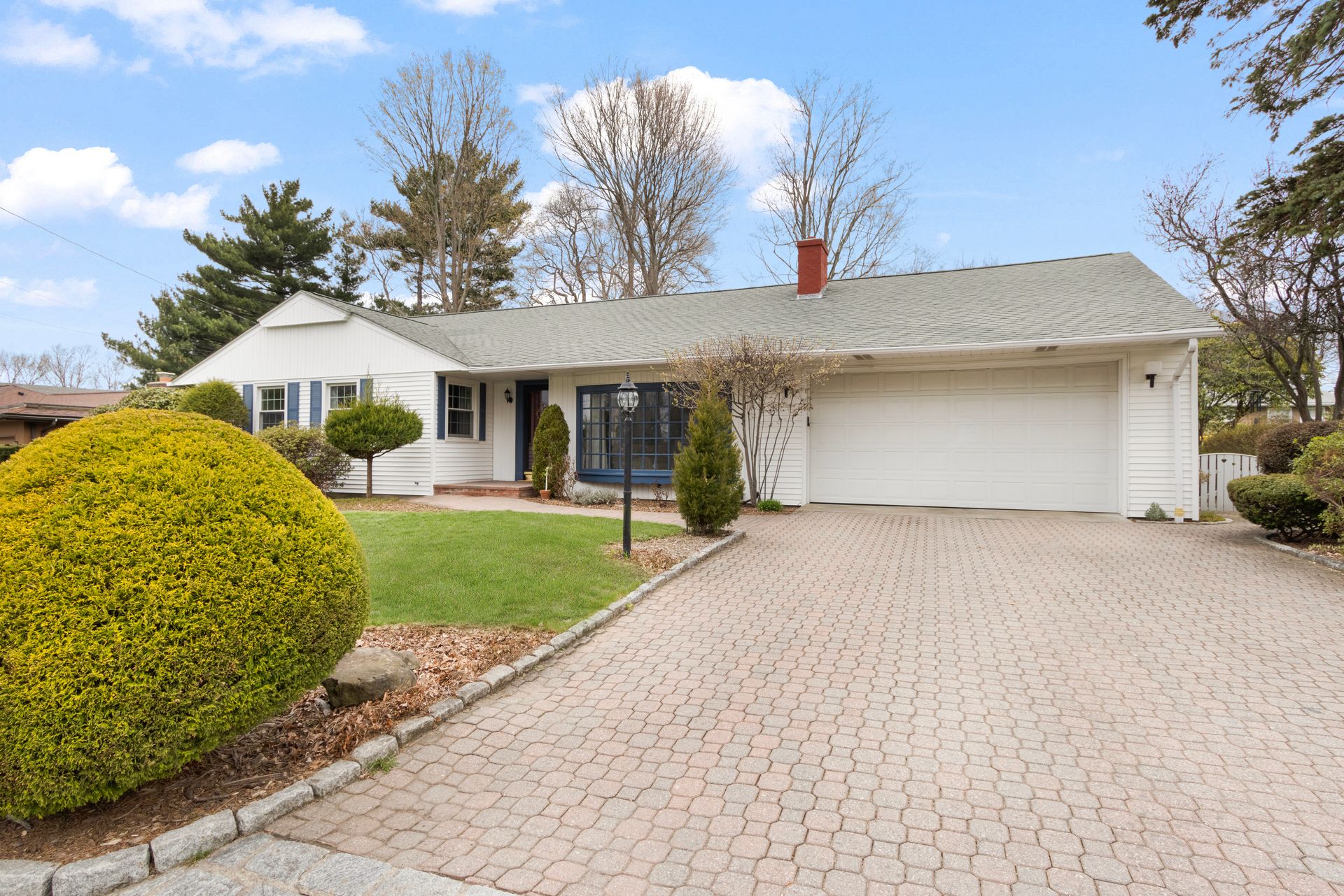 Experience true one-level living, complemented by a fully finished lower level ready to adapt to your needs. Natural light pours into the sunken living room, where a wood-burning fireplace anchors the space and invites you to settle in. The retro-style kitchen flows seamlessly into the dining area and den, creating a layout that works just as well for everyday living as it does for entertaining. The primary bedroom features an ensuite bath with a large soaking tub and separate shower, while two additional full bathrooms offer flexibility for family or guests. The finished lower level expands your living options with a second kitchen, built-in office, and ample storage, ideal for guests, working from home, or finally claiming a dedicated space for your hobbies. Outside, a paved driveway and walkway lead to a thoughtfully landscaped yard with mature plantings, perennials, underground sprinklers, and a storage shed. Additional highlights include central A/C, main-level laundry, and oil heat with gas available on the street for future conversion. Inquire for details on a potential assumable loan opportunity. A rare opportunity in sought-after Dean Estates, don’t miss it!